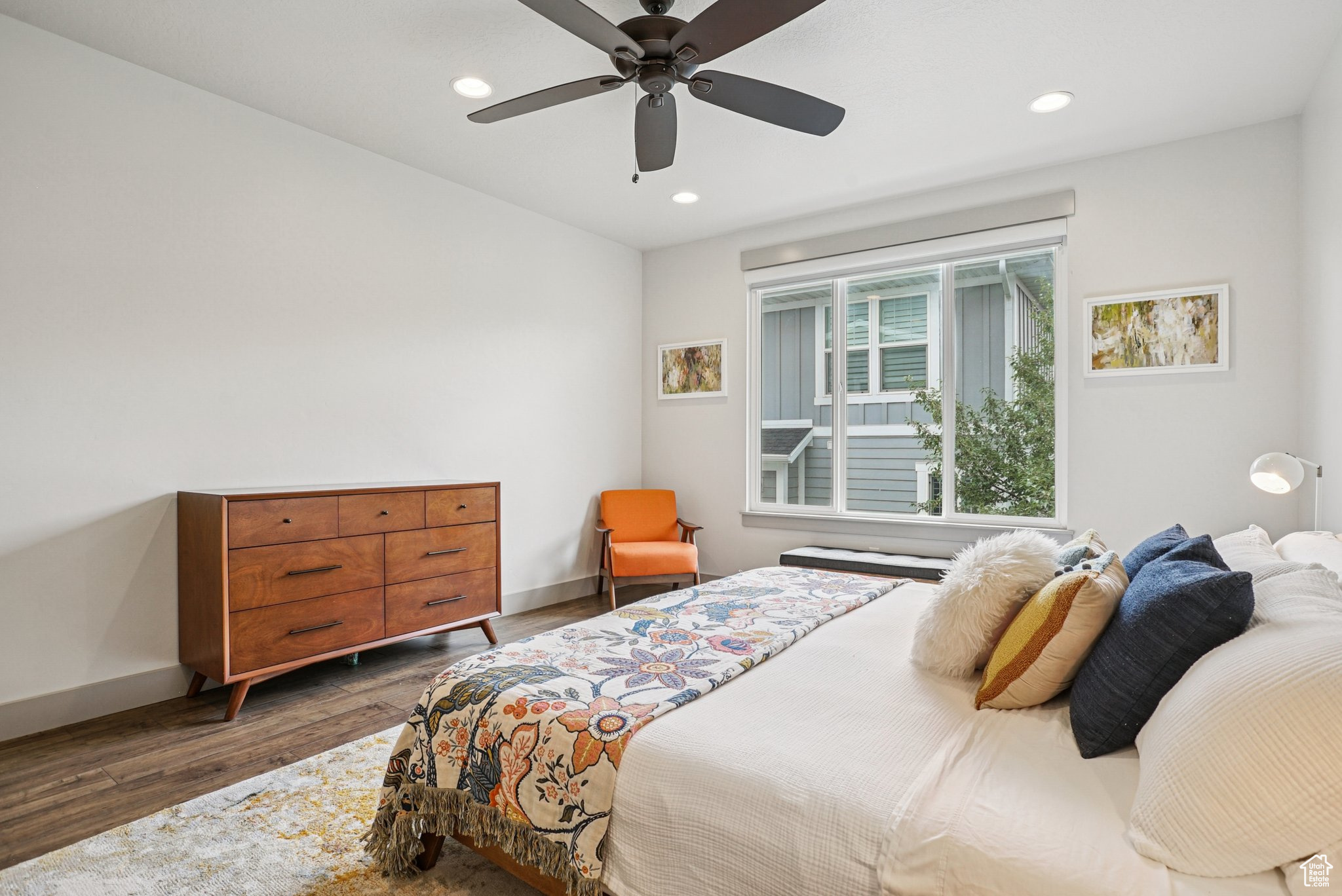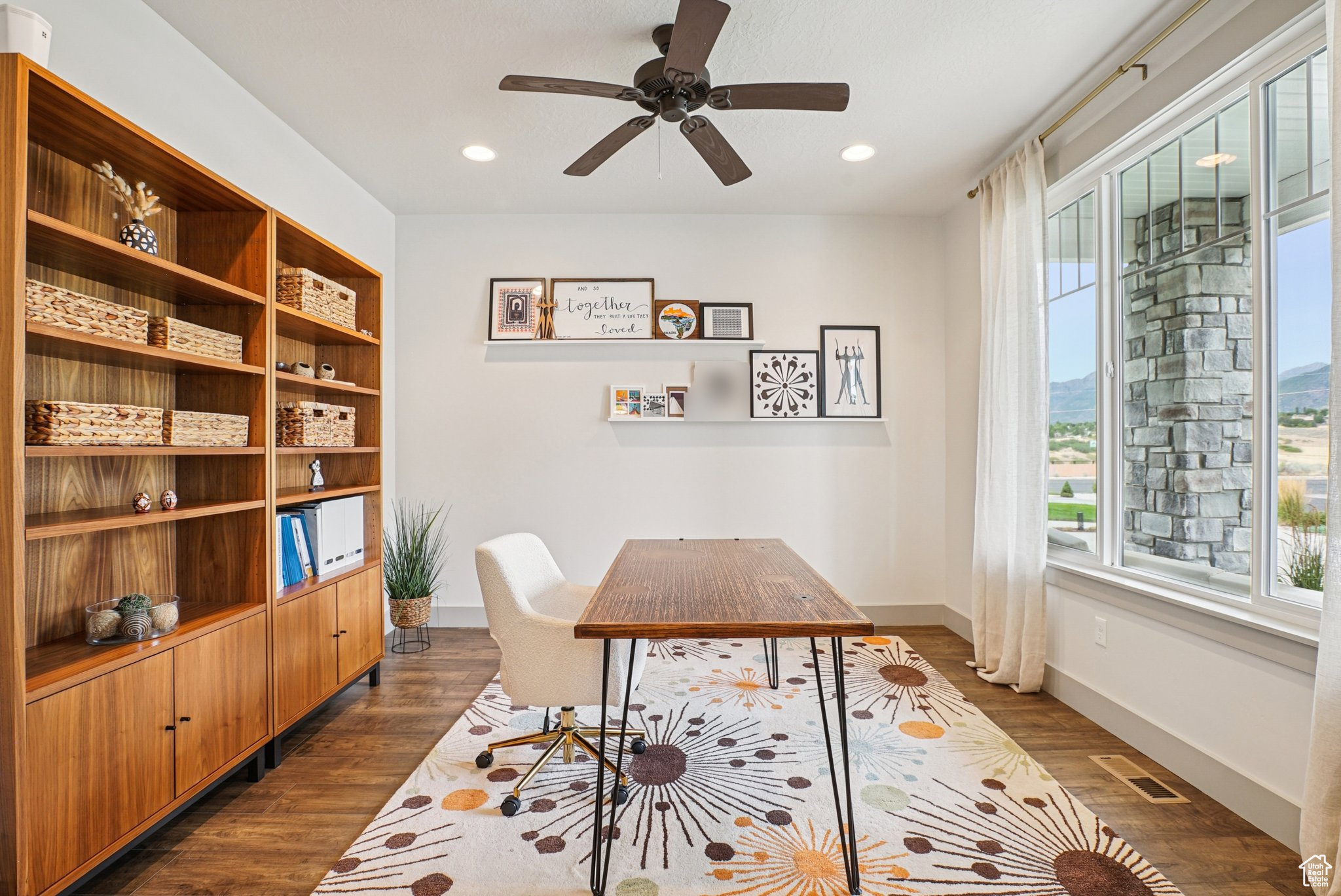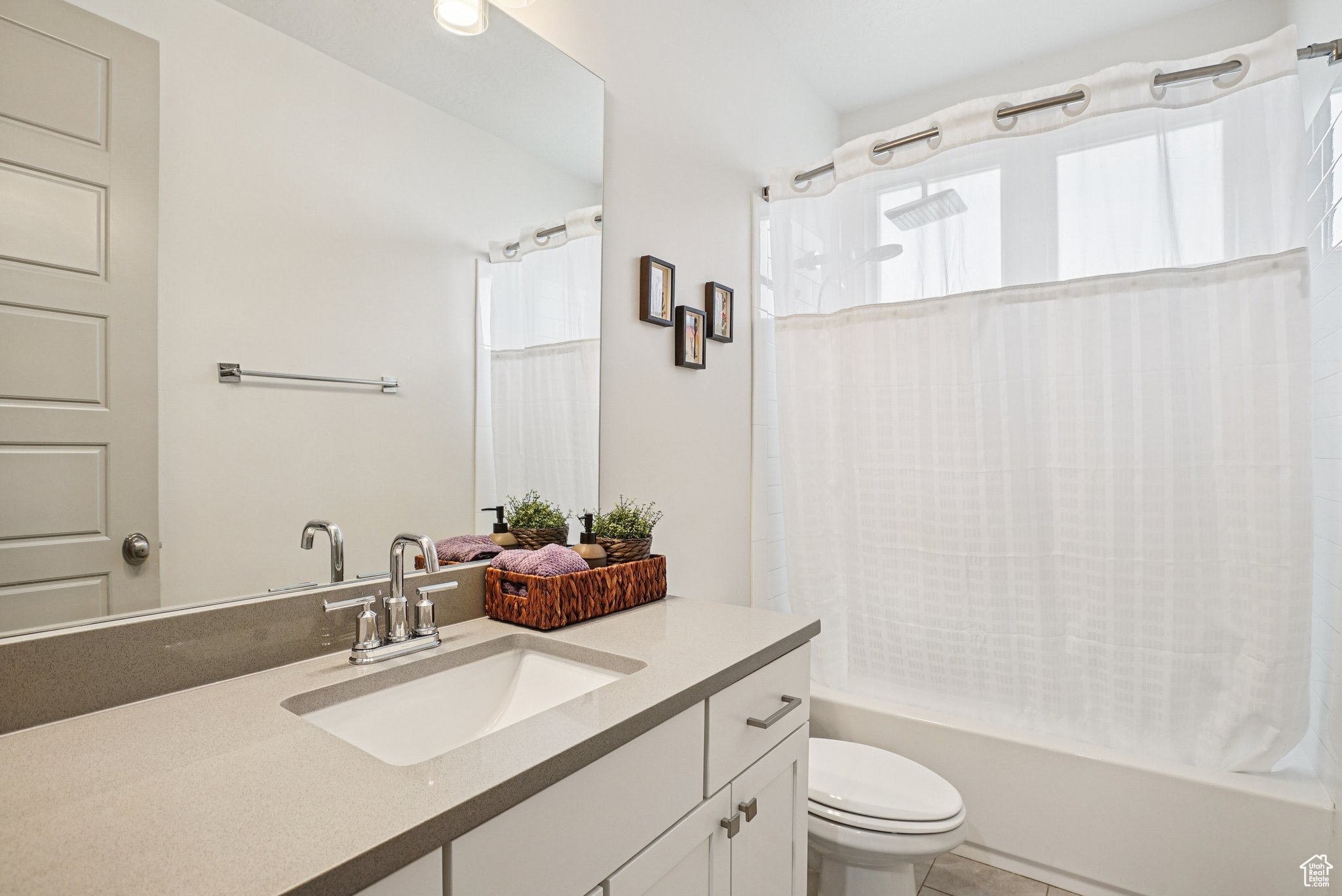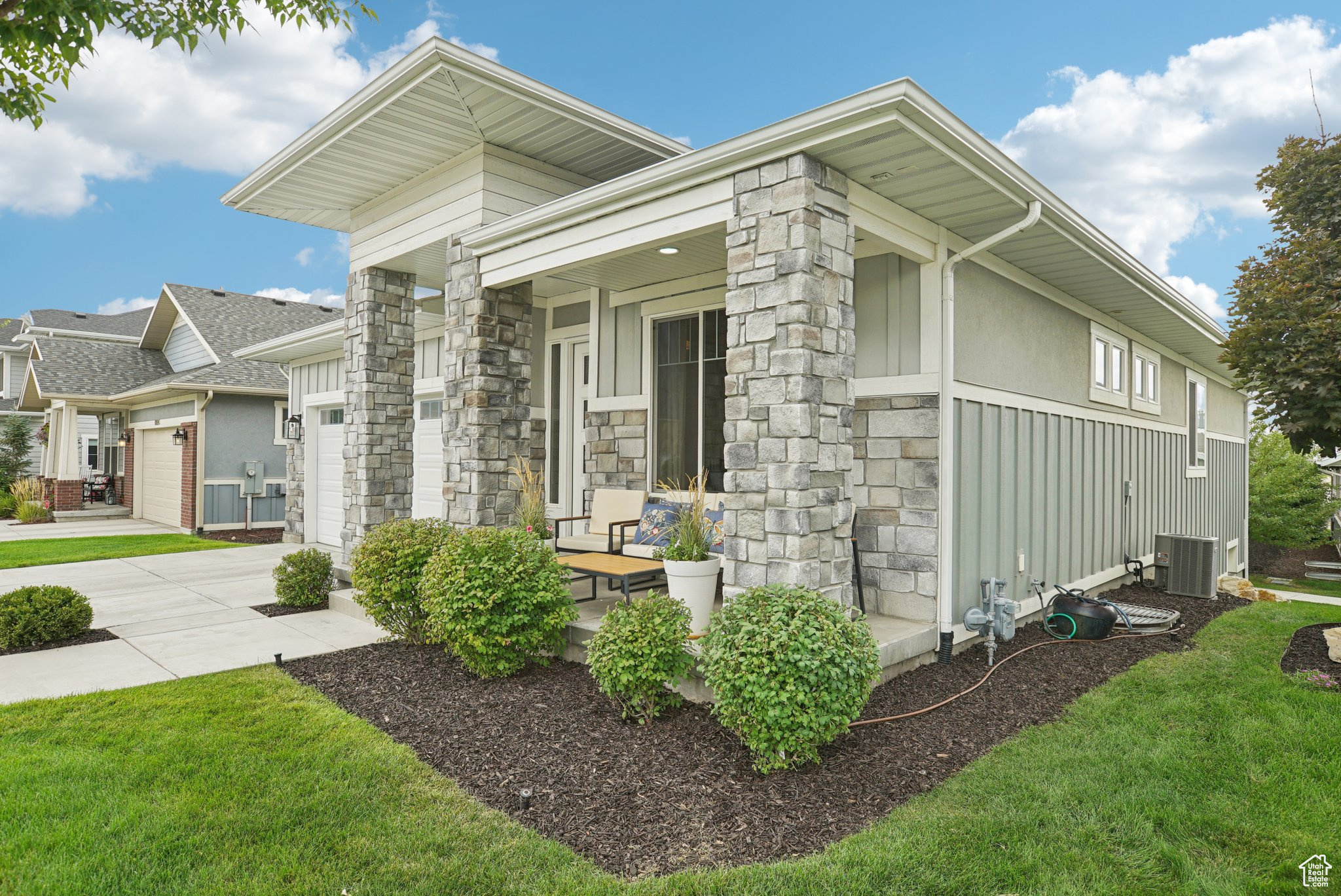 Beautifully built and well-kept home featuring 4 spacious bedrooms and 3 bathrooms. This property has been well maintained, it has full landscaping with stunning curb appeal and a modern exterior design and main level living. Enjoy wonderful evenings on the front porch looking at the mountains. The garage includes sleek epoxy flooring and built-in shelving for convenient storage. Inside, enjoy a versatile bonus room and a dedicated gym room in the basement, perfect for your fitness needs. Just a 1-minute walk to Dimple Dell Regional Park, offering endless outdoor recreation and scenic trails right at your doorstep. Pickleball and basketball courts are right around the corner, and the home is connected to an HOA, adding extra amenities and convenience. square footage figures, are provided as a courtesy only, buyer and buyer agent to verify all. Please note that all yard areas are maintained by the HOA, and fencing in any common space is not permitted.