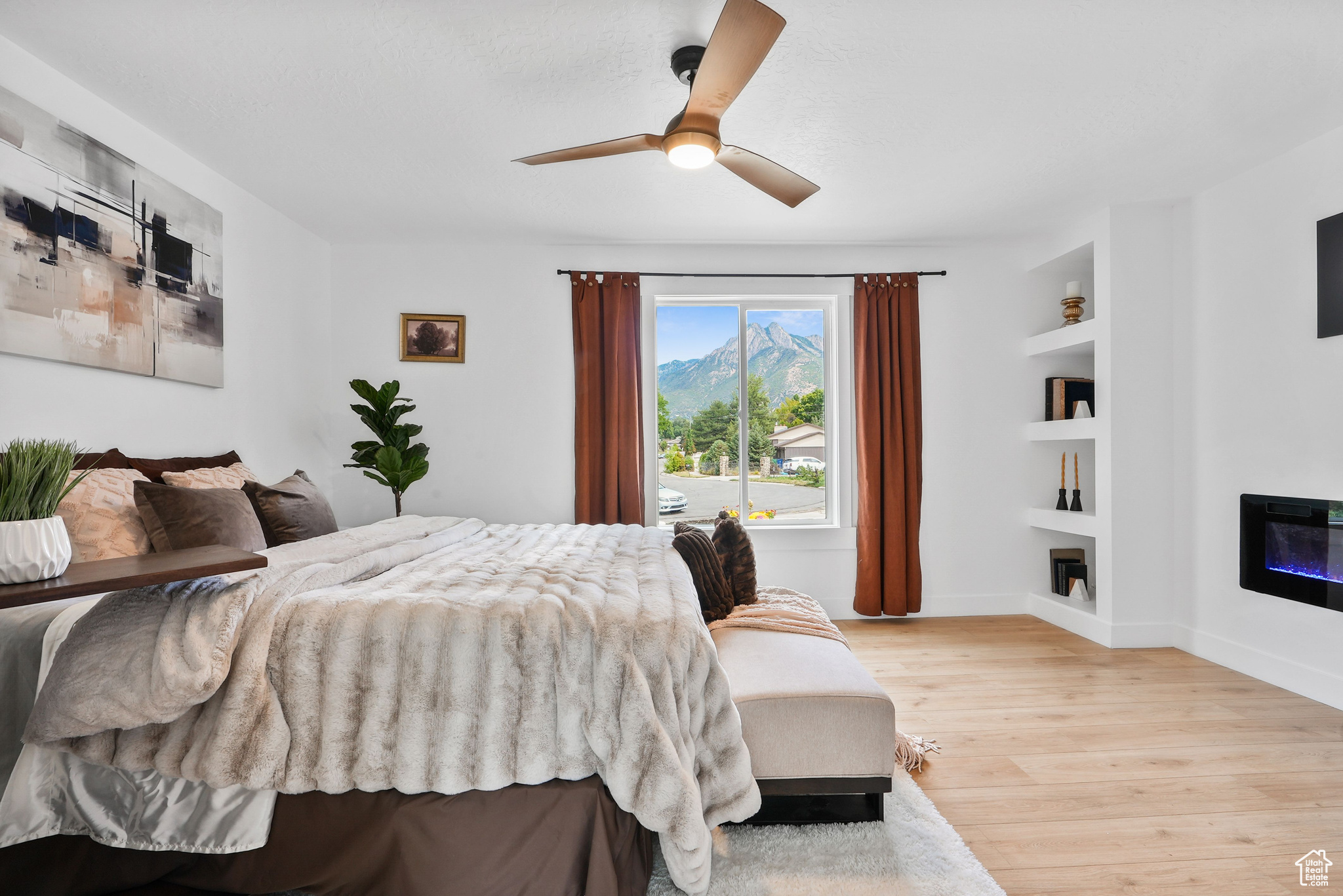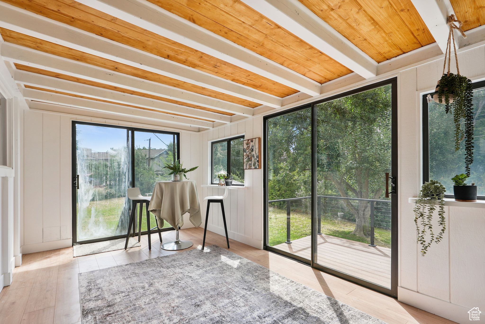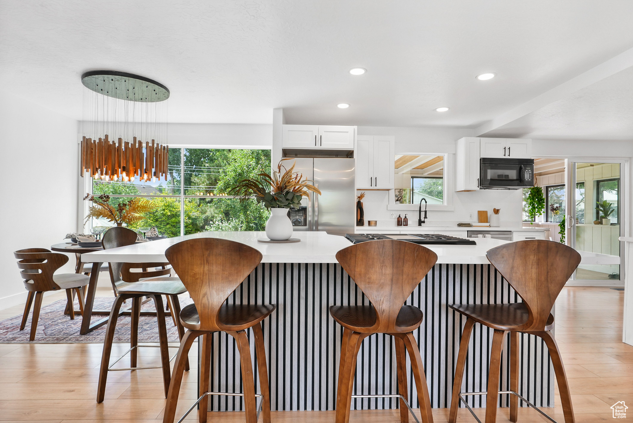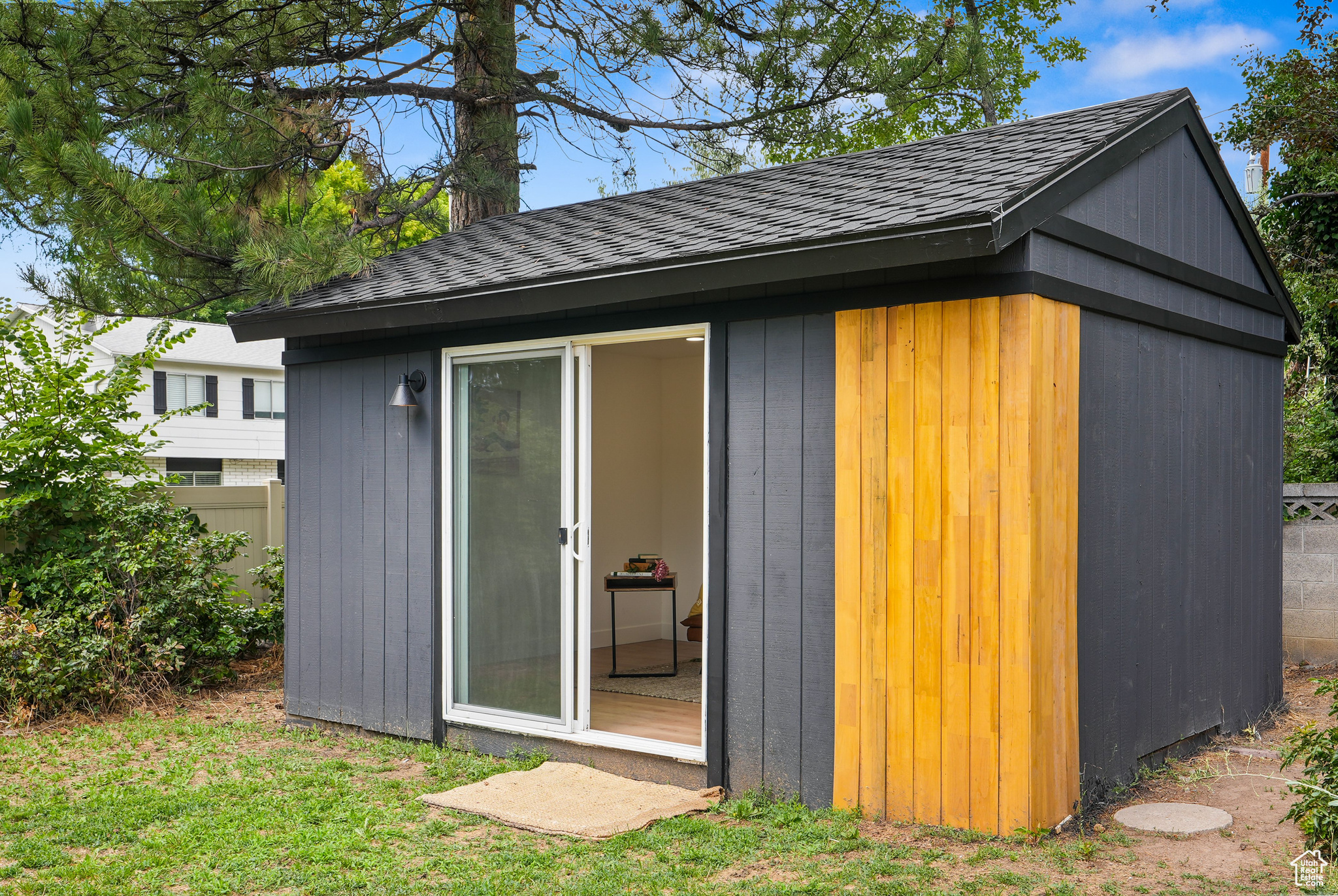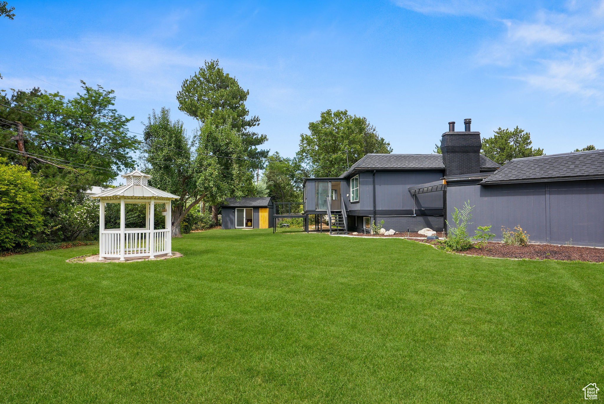 Modern Elegance Meets Comfort in Coveted Cul-de-Sac Location. Welcome to this beautifully updated home where warm wood tones contrast perfectly with sleek grey and black finishes, giving it a sharp, modern aesthetic that still feels like home. Tucked away in a peaceful cul-de-sac, this property offers stunning views of Mount Olympus and a secluded retreat with a fully fenced, oversized yard featuring mature trees, fruit trees, and a freshly hydro-seeded lawn both front and back. Step inside to find all-new windows and doors, brand new carpet and flooring, and a stylish living and dining area accented by a bohemian-style chandelier. The kitchen is a chef's dream, boasting brand new stainless steel appliances, a built-in beverage cooler, and modern finishes throughout. The luxurious primary suite includes a spa-like bathroom with an expansive infinity drain shower, floating vanity, smart toilet, and a walk-in closet. Outside, a garden area and sprinkler system make outdoor living easy and enjoyable. A detached, climate-controlled dwelling in the backyard offers the perfect flex space for a home office, art studio, or yoga retreat. Located in a desirable area within the Granite School District, and just down the road from a community baseball field, this home combines comfort, style, and convenience in one incredible package.