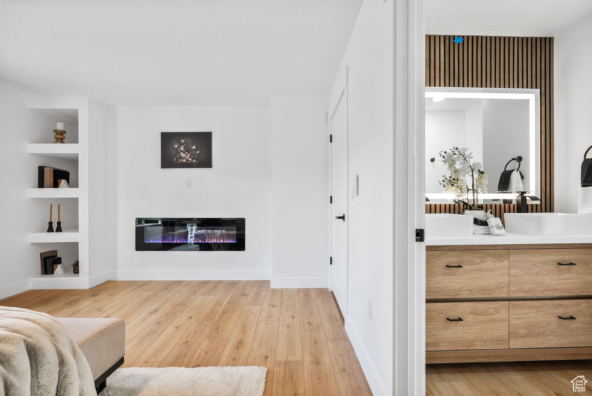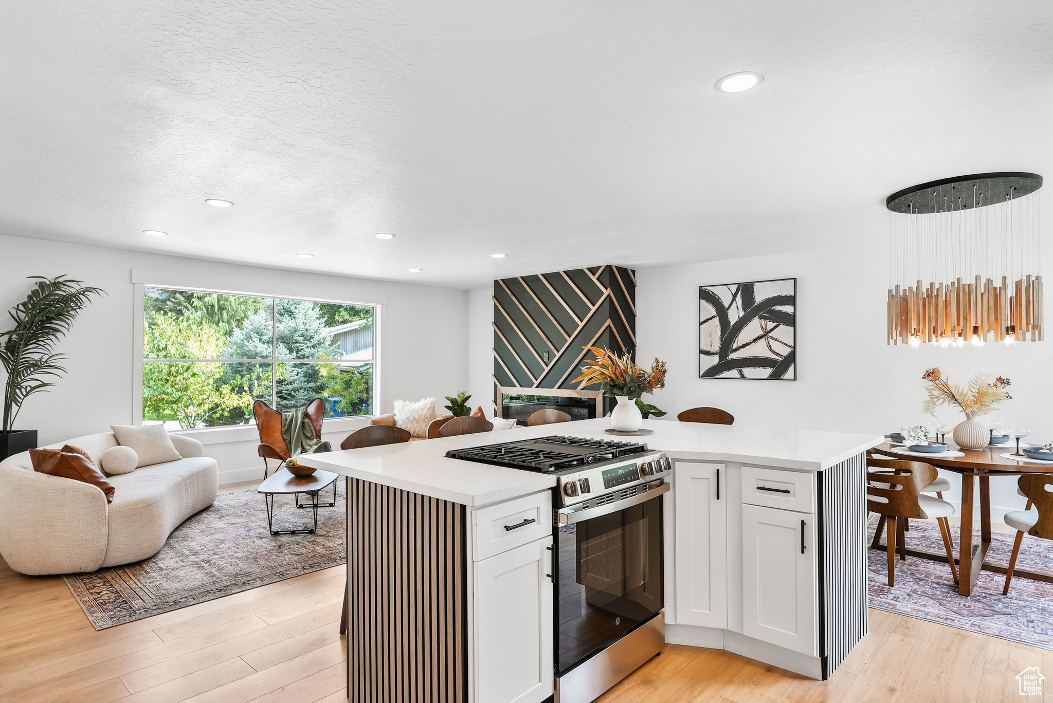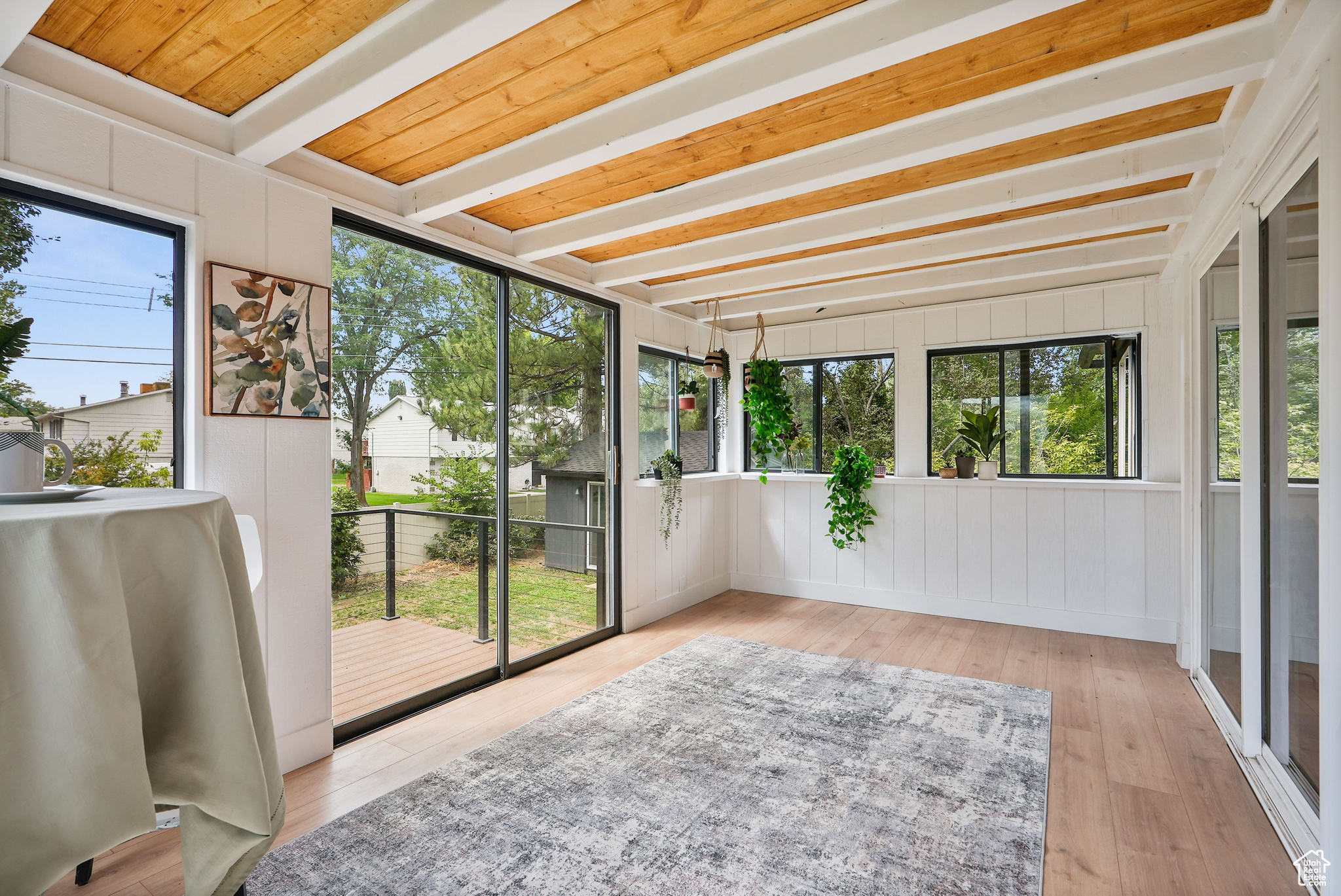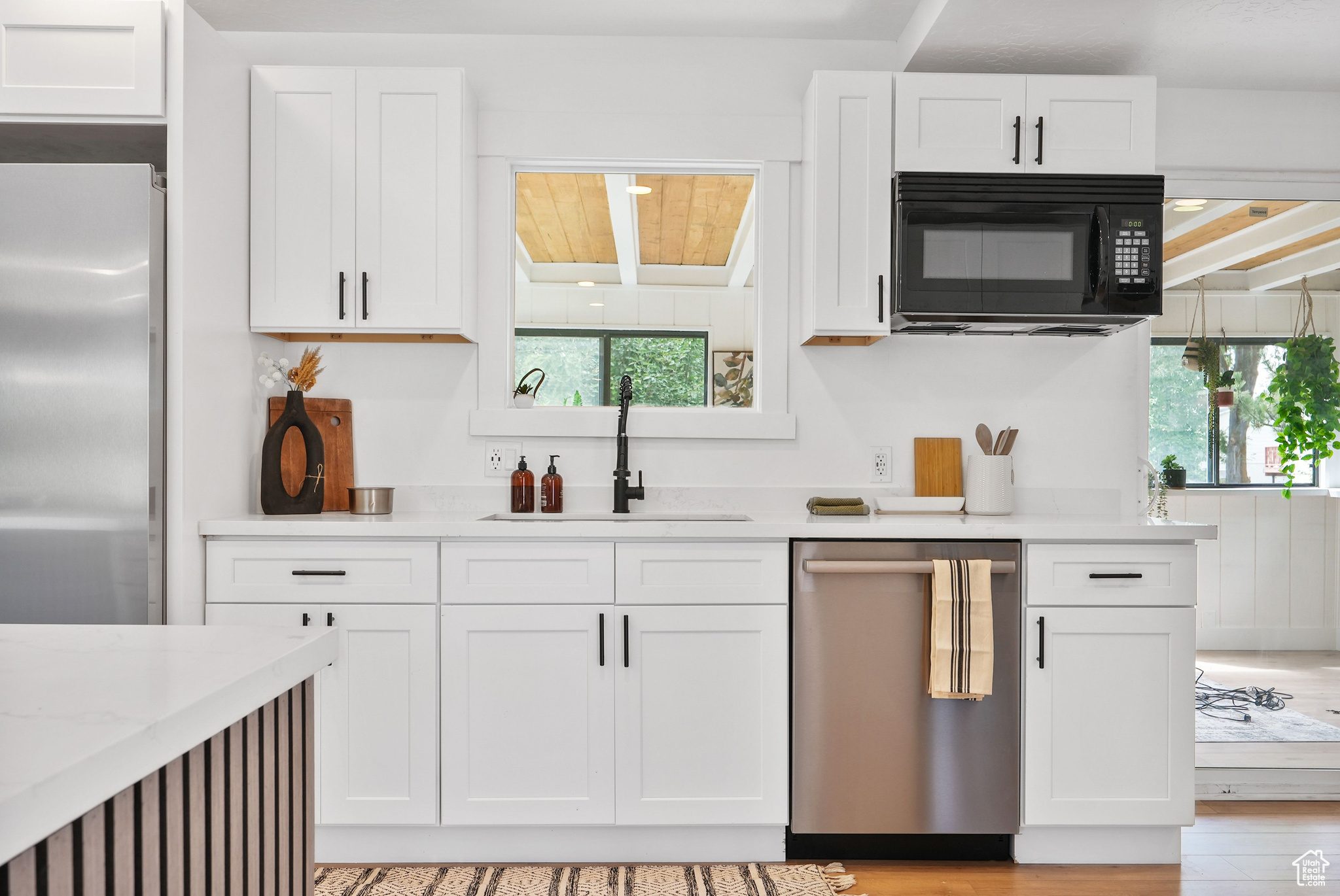 Modern Elegance Meets Comfort in Coveted Cul-de-Sac Location. Welcome to this beautifully updated home where warm wood tones contrast perfectly with sleek grey and black finishes, giving it a sharp, modern aesthetic that still feels like home. Tucked away in a peaceful cul-de-sac, this property offers stunning views of Mount Olympus and a secluded retreat with a fully fenced, oversized yard featuring mature trees, fruit trees, and a freshly hydro-seeded lawn both front and back. Step inside to find all-new windows and doors, brand new carpet and flooring, and a stylish living and dining area accented by a bohemian-style chandelier. The kitchen is a chef's dream, boasting brand new stainless steel appliances, a built-in beverage cooler, and modern finishes throughout. The luxurious primary suite includes a spa-like bathroom with an expansive infinity drain shower, floating vanity, smart toilet, and a walk-in closet. Outside, a garden area and sprinkler system make outdoor living easy and enjoyable. A detached, climate-controlled dwelling in the backyard offers the perfect flex space for a home office, art studio, or yoga retreat. Located in a desirable area within the Granite School District, and just down the road from a community baseball field, this home combines comfort, style, and convenience in one incredible package.