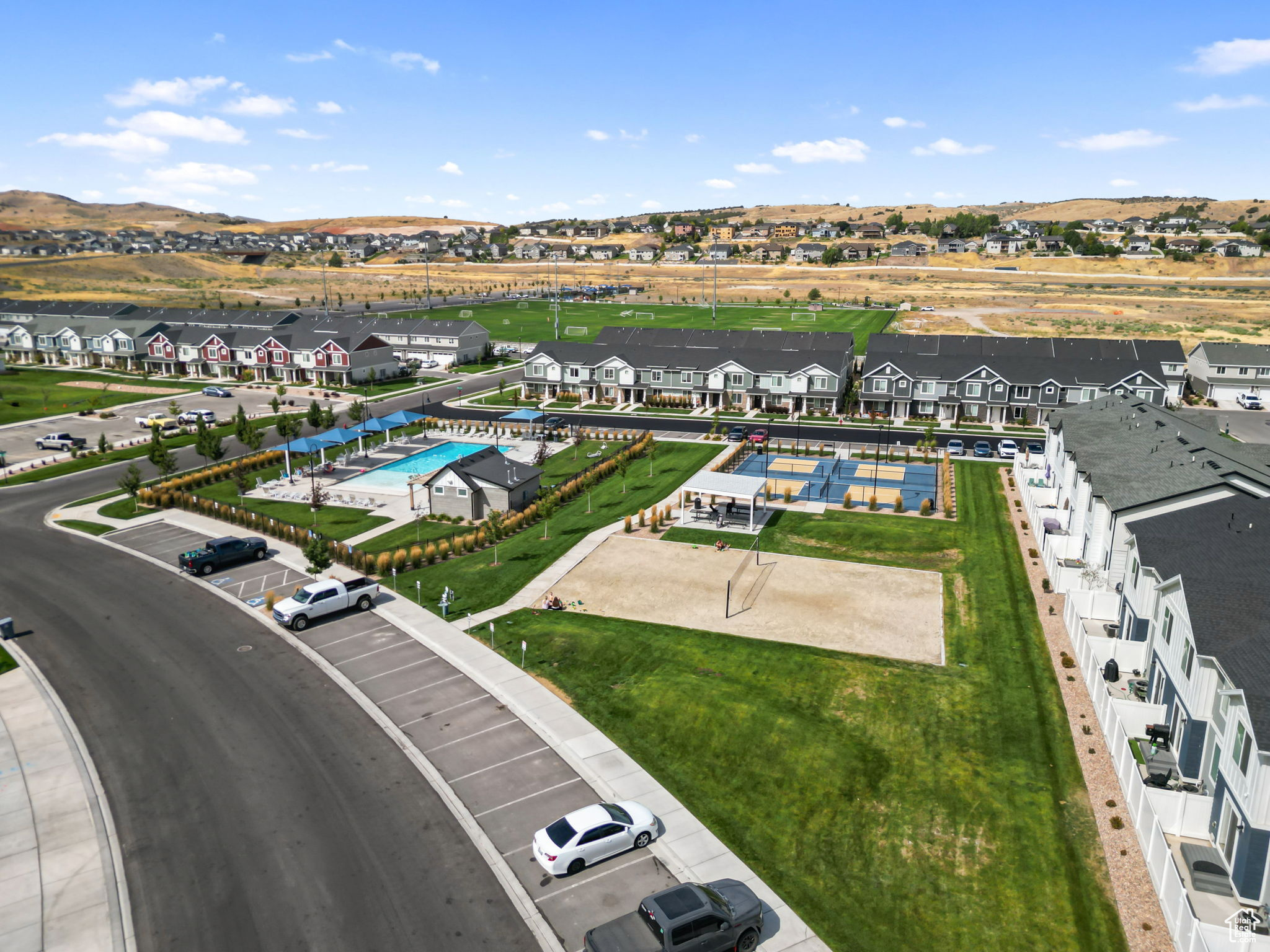 Stunning turn-key end-unit townhome! Spacious master w/ dual closets, ample parking, & scenic mountain views. Partially finished basement and private backyard! Enjoy community pool, all-terrain park, pickleball, & dog park. Zero down financing available in this area! Call today for a private tour!