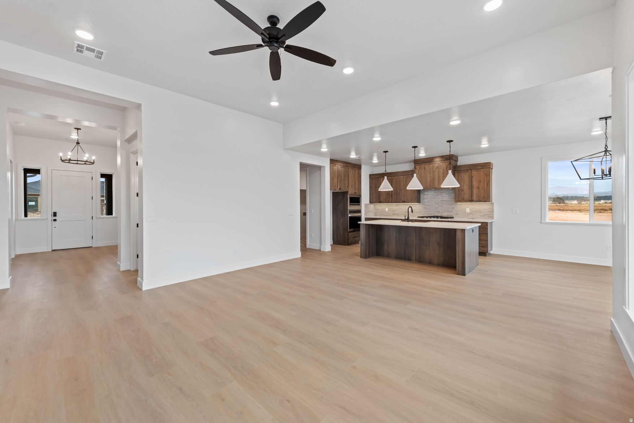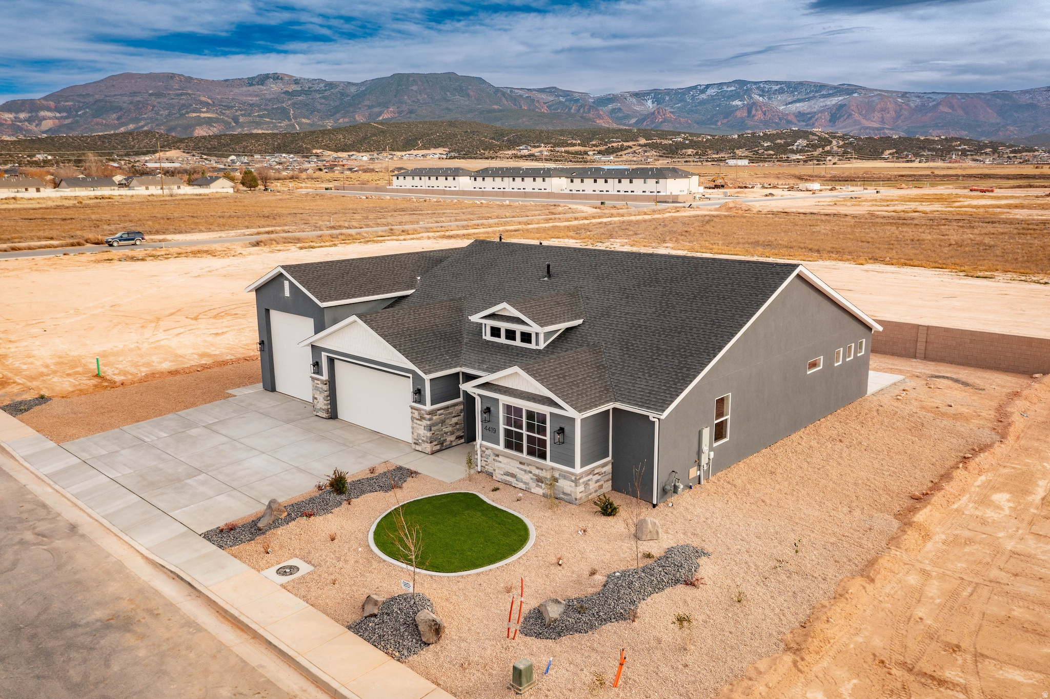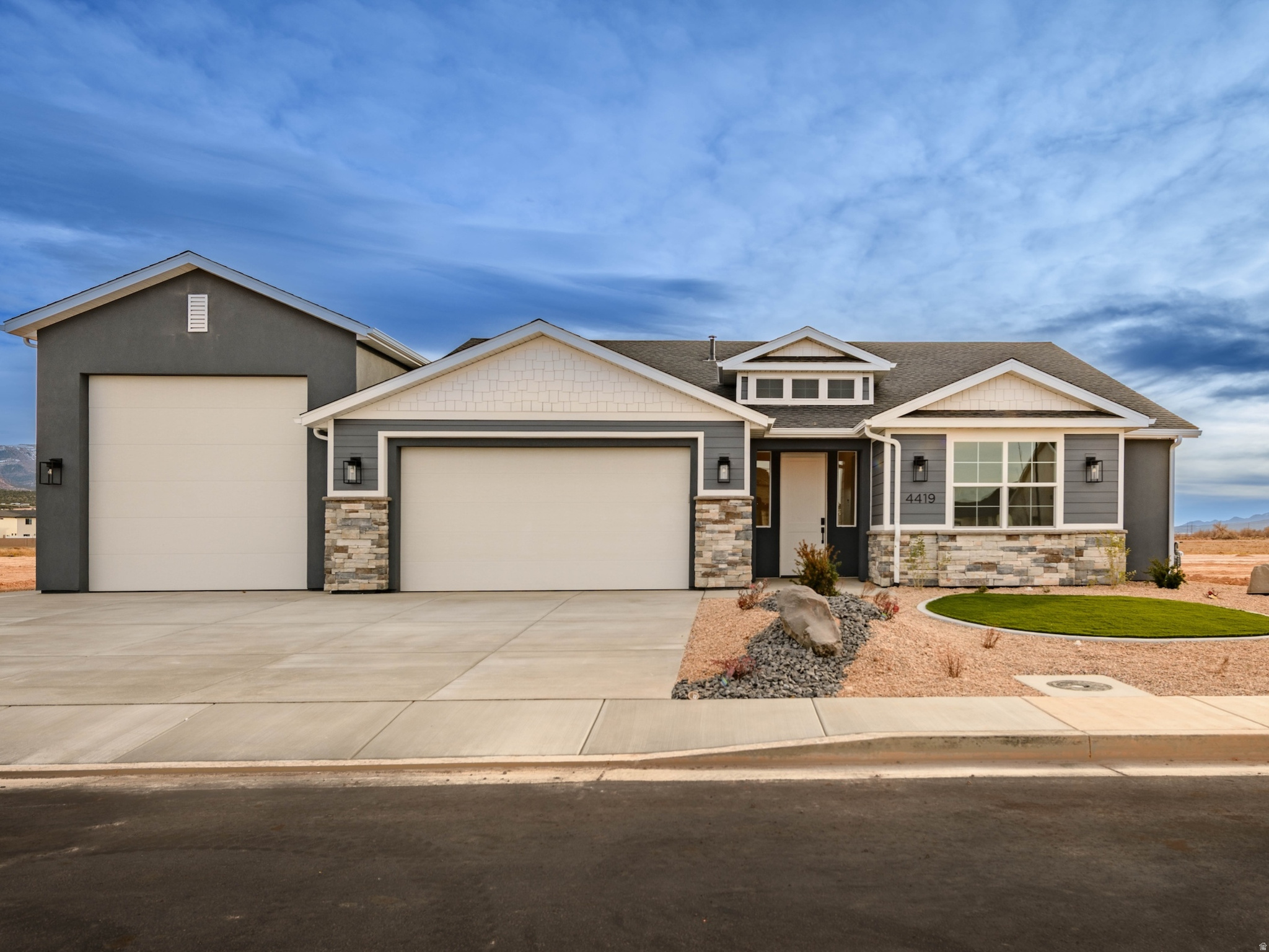 Enjoy modern design and everyday convenience in this new 3-bedroom, 2.5-bath home with an attached RV garage. Offering 1,940 sq. ft. of single-level living, it features a gourmet kitchen with a wall oven, countertop range, quartz countertops, and upgraded cabinetry. The open layout connects the kitchen, dining, and living areas, creating a bright and functional space. The primary suite includes a private bath and generous closet, while two additional bedrooms offer flexibility for guests or a home office. The 1,106 sq. ft. garage-with dedicated RV parking-provides abundant space for vehicles, storage, and recreational gear. Built with quality craftsmanship and energy efficiency in mind, this home is designed for both comfort and practicality.