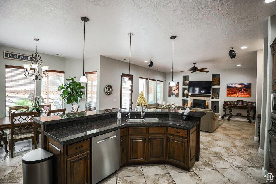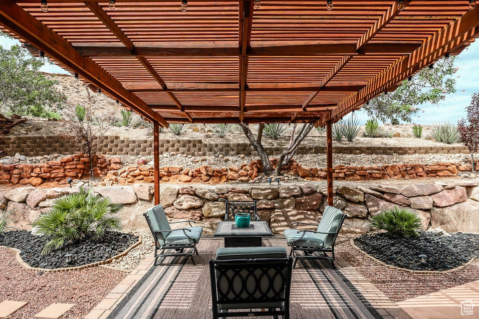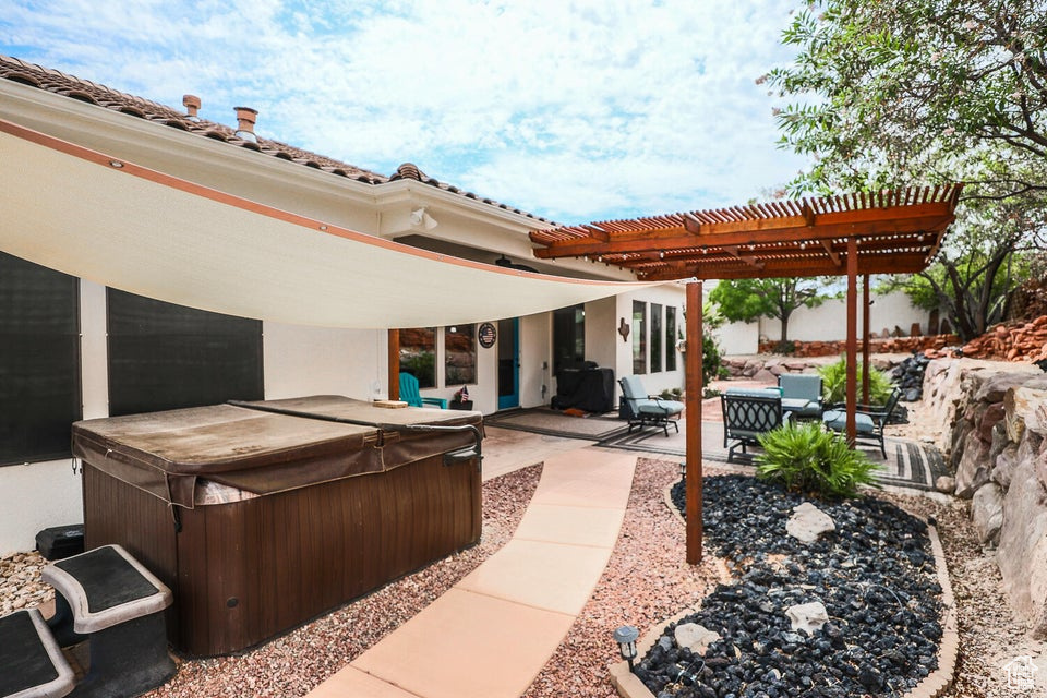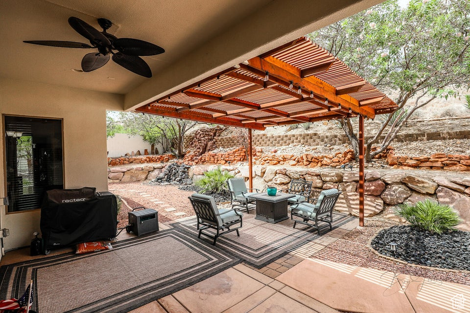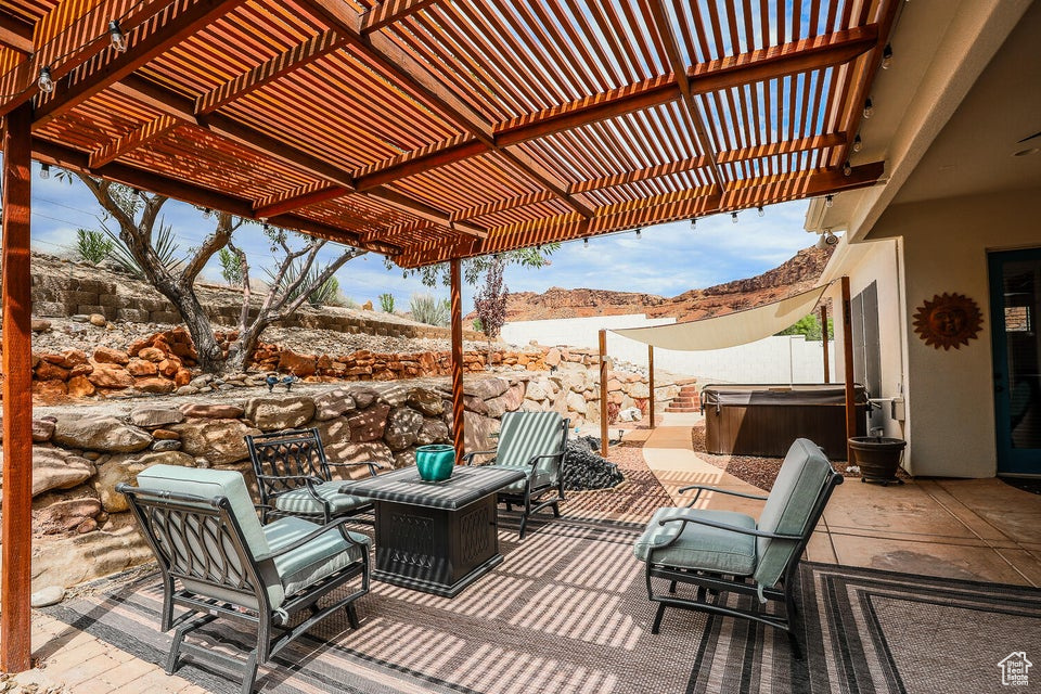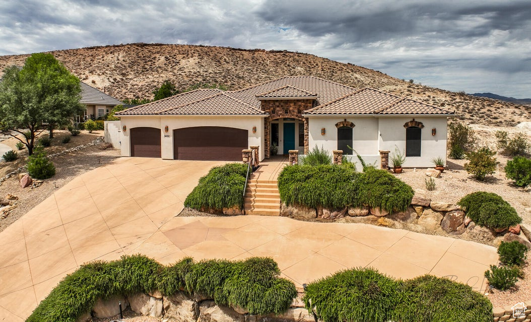 Discover a rare retreat in the desert-this 3-bedroom, 3.5-bath home with a den offers both comfort and privacy. The spacious primary suite features a cozy fireplace, a sitting area, and direct access to a secluded patio, creating the perfect spot to unwind. The property backs onto BLM land, ensuring peace, quiet, and wide-open views. Nature lovers will appreciate the occasional desert tortoise wandering through the backyard, while outdoor enthusiasts will love the unbeatable location-just steps away from the world-famous Bearclaw Poppy mountain biking trails and surrounded by stunning petroglyphs. Endless miles of hiking, biking, and walking trails begin right outside your door. Inside, warm earth-tone finishes bring the natural beauty of the desert indoors, creating a calming and inviting atmosphere. After a day of adventure, relax in your private hot tub and soak in the serenity of this unique setting. This home blends modern comfort with unmatched access to Southern Utah's outdoor lifestyle making it a true one-of-a-kind opportunity.