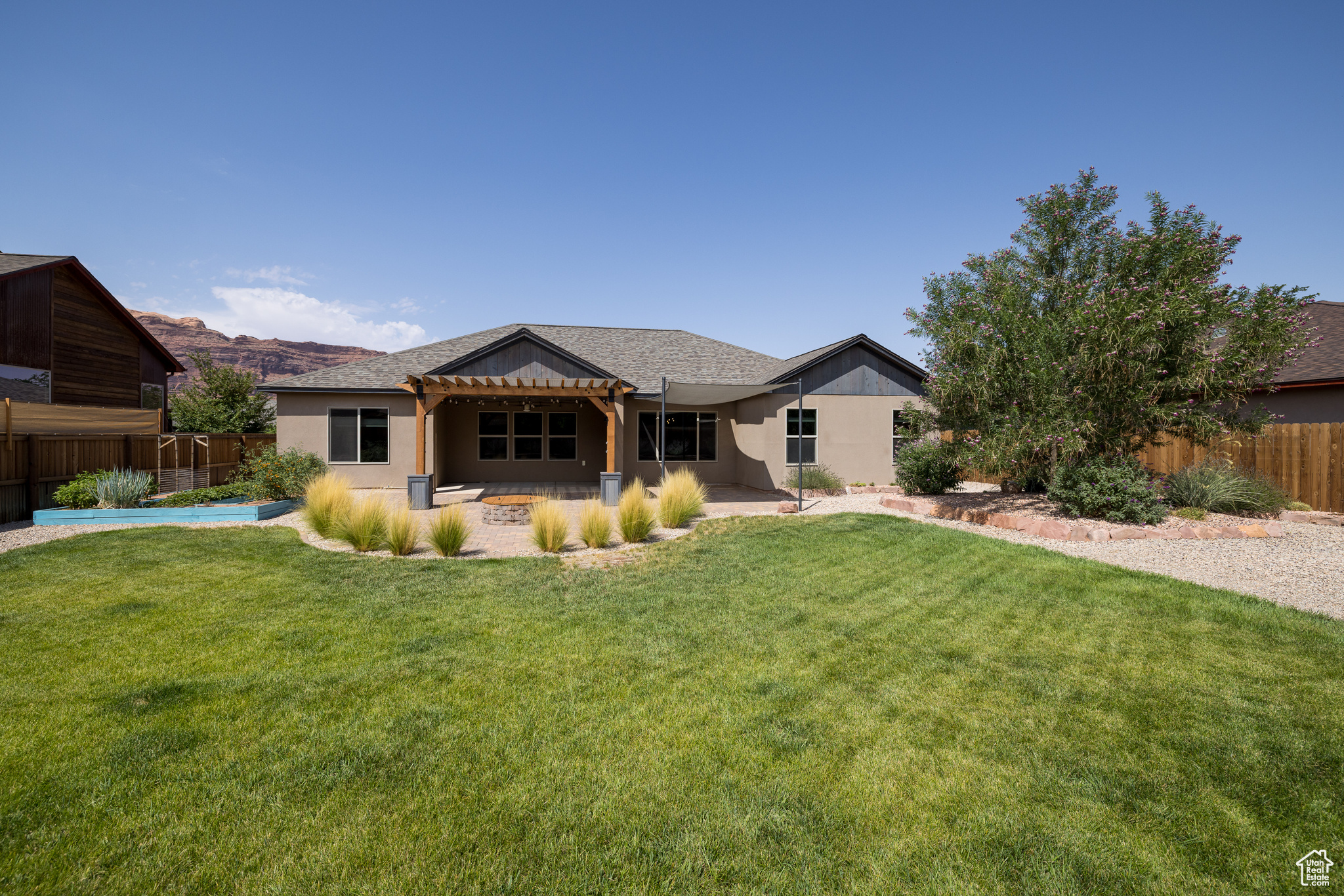 PICTURE PERFECT IN THE PRESERVE- Where the Moab Portal views take your breath away on a daily basis. This quiet neighborhood houses this meticulously maintained modern-rustic home with stained cedar, stacked rock and stucco exterior - enhanced with a soft and earthy interior. A quaint front patio with an herb garden welcomes you into the formal entry. This home features a remote main bedroom suite, with a dual head walk-in shower, adjacent to the bright, open and airy kitchen featuring quartz countertops, custom cabinets and trim, as well as chic appliances. The kitchen, formal dining, and living areas enjoy gorgeous stained concrete floors. This lovely floor plan with two additional bedrooms and full bathroom offers exceptional storage with a pantry, laundry/mud room and an oversized 3-car garage with work benches and attic storage. Fiber optic internet, TV connections in all bedrooms, hard-wired surround sound, up/down window shades, hot & cold exterior water spigot, new roof, and new A/C condenser are a few of the wonderful upgrades this home has to offer. Relax under the Swiss Cheese Ridge view on the covered patio with shade sails, gas BBQ connection, and a gas fire pit perfect for gatherings. The expertly designed backyard is fully fenced with charming garden beds, superb flower beds, and a playful lawn. Located in Moab's northwest corridor, you will enjoy stepping out your front door and having phenomenal access to the paved bike and pedestrian path directly to Arches National Park and the mighty Colorado River. Moab's city center, Swanny City Park, the Moab Recreation & Aquatic Center, as well as civic services are all a few minutes away. You haven't seen move-in ready unless you've stepped into this gem! Welcome home. Square footage figures are provided as a courtesy estimate only and were obtained from images. Buyer is advised to obtain an independent measurement.