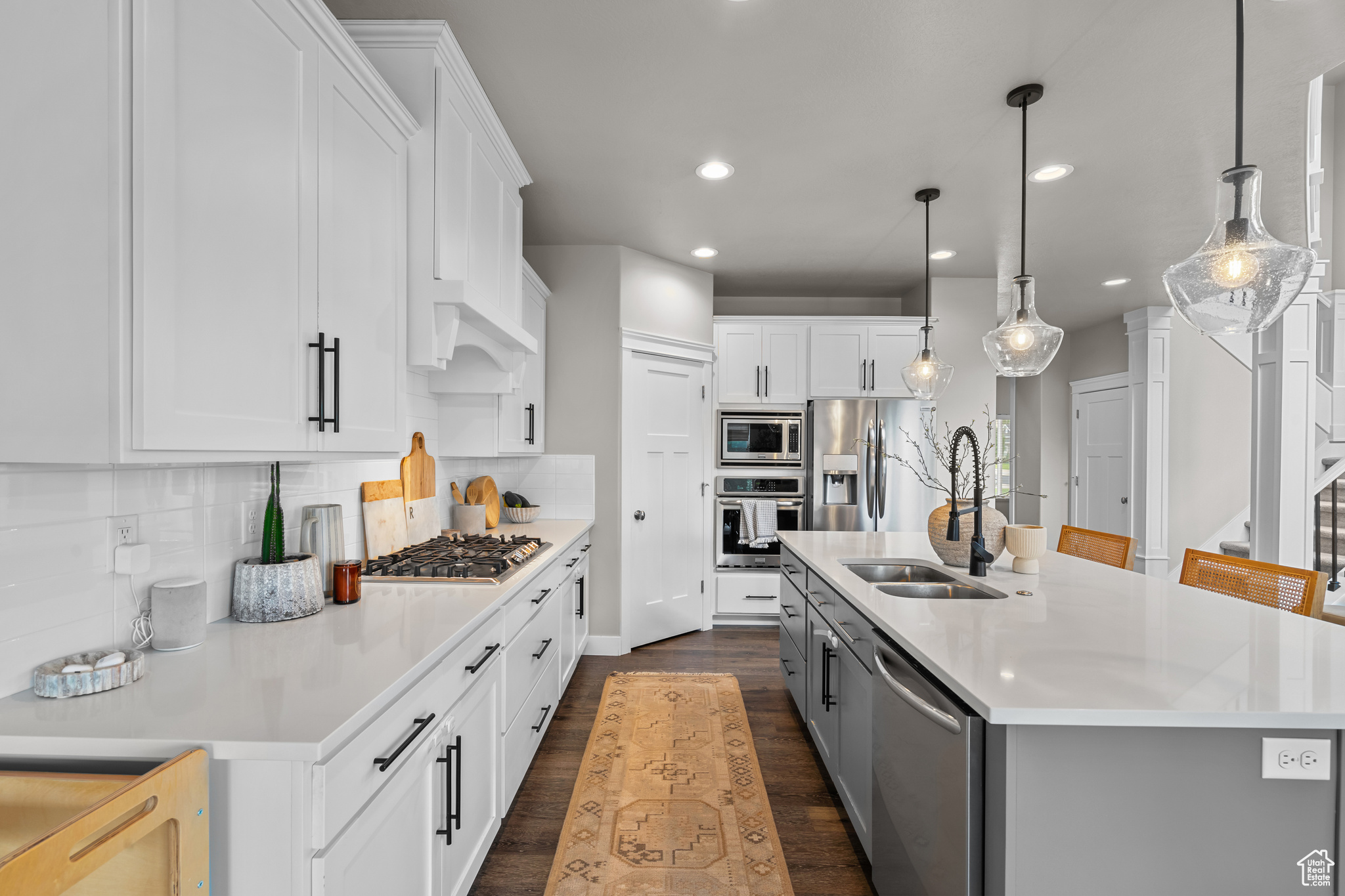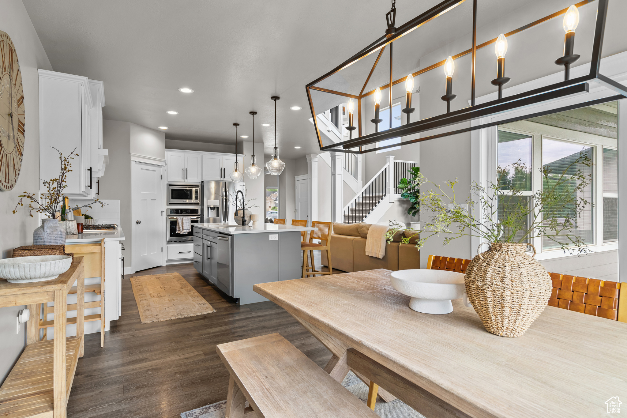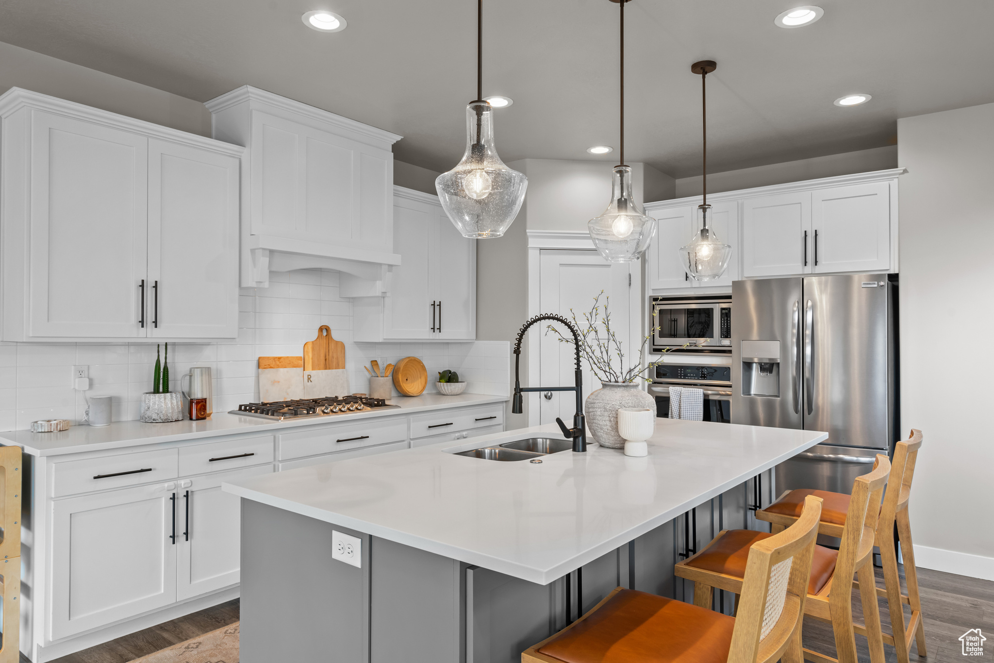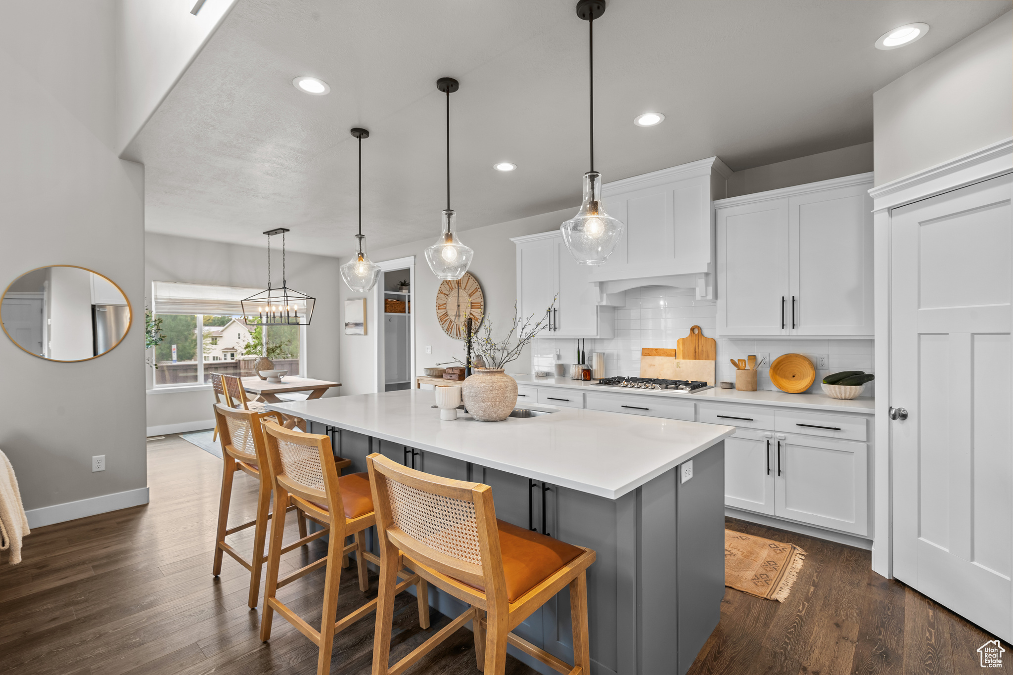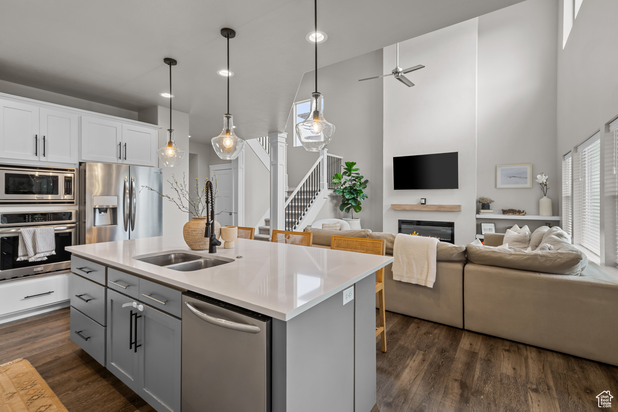 PRICE IMPROVEMENT!! Welcome to this like-new, beautifully maintained two-story home located on the desirable Kaysville-Layton border! No expense was spared in this previous model home for the subdivision. Enjoy the perfect blend of convenience and comfort with top-rated schools, great shopping, and quick freeway and highway access just minutes away. Nestled in a friendly community that features open green space and a basketball court, this home is ideal for active lifestyles. The spacious 3-car garage offers plenty of room for all your vehicles and toys. Step inside to a bright, open-concept floorplan with soaring ceilings and a cozy fireplace in the family room-perfect for gatherings or quiet evenings at home. The stunning kitchen boasts a gas cooktop, vented range hood, large island, quartz countertops, and a pop-out dining area. The main level also includes a dedicated office or formal living room, offering flexible space for work or relaxation. Upstairs, the spacious principal suite includes an en-suite bathroom with double sinks, a separate tub, and a walk-in shower. The recently finished basement is built for entertaining, featuring a large second family room and a dry bar. Outside, enjoy the covered patio and fully fenced yard-beautifully maintained and ready for relaxation, with no upkeep required on your part! Don't miss this move-in ready gem in a fantastic location-schedule your private showing today!