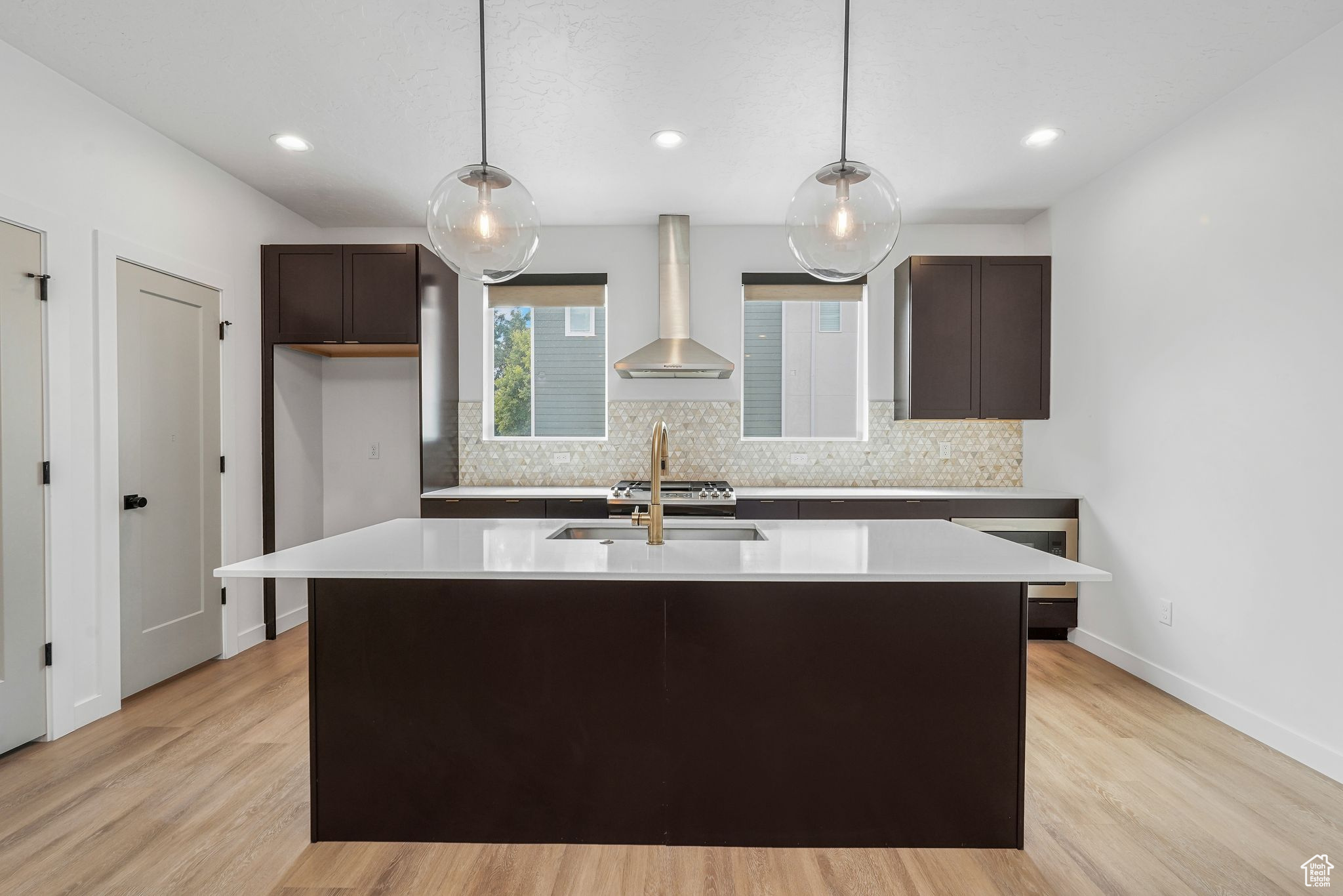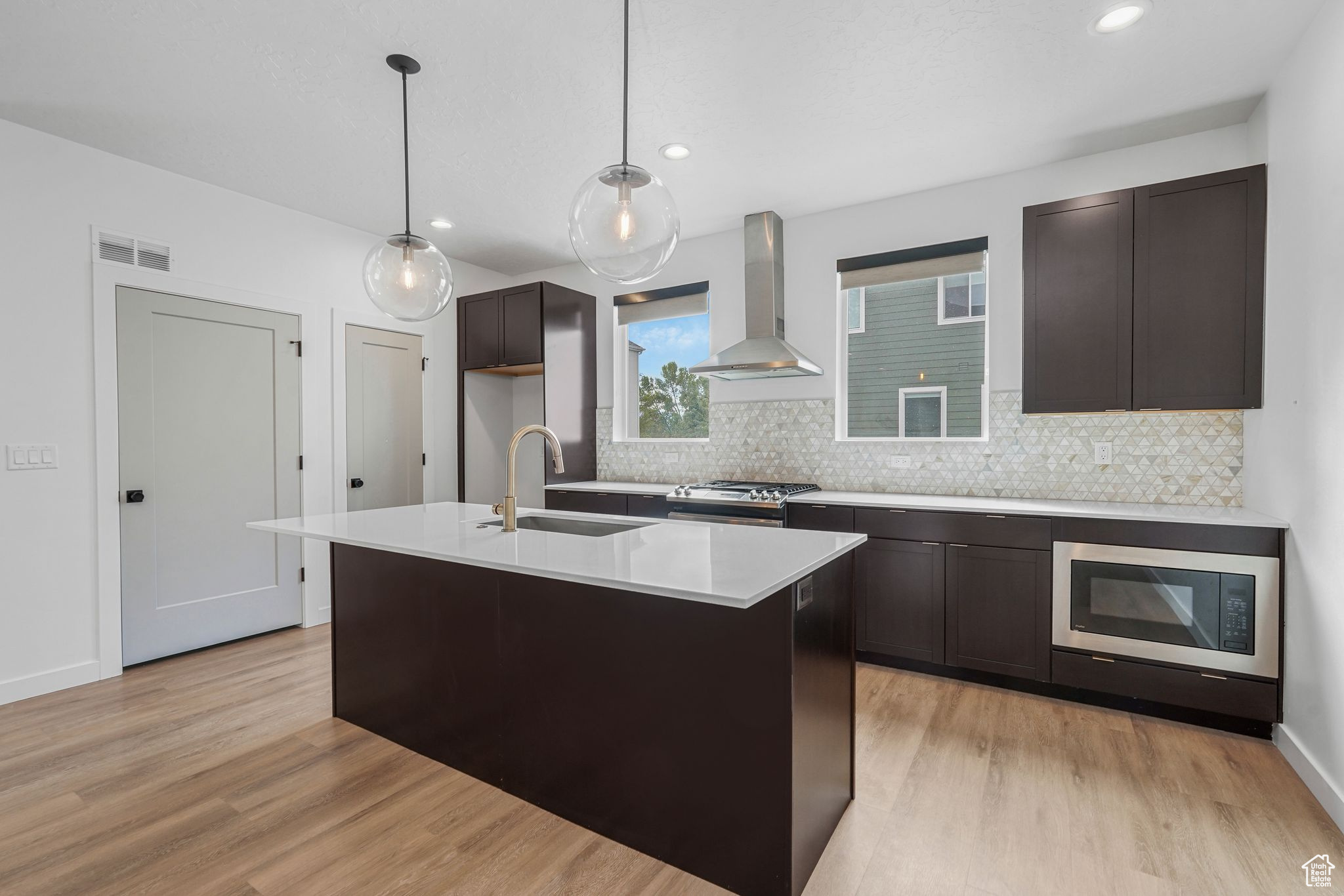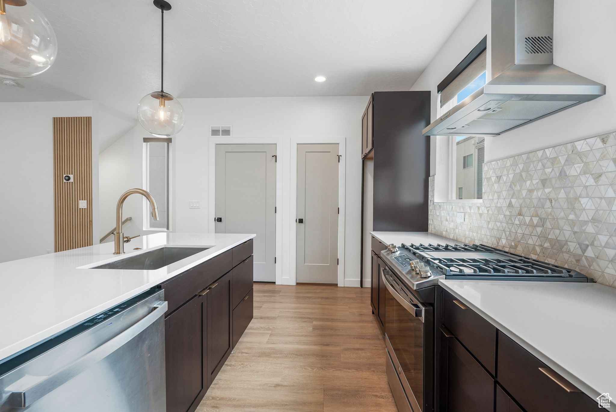 Agent is related to sellers. NIGHTLY RENTAL APPROVED- Like-new, end unit townhome located on the border of Layton and Kaysville with quick and easy access to shopping, restaurants, schools, North and Southbound 1-15, and the Layton Frontrunner station. Large trees and green space at the front of the house offer privacy in the home and space to enjoy the deck with its peaceful and majestic mountain landscape. Beautifully upgraded with quartz countertops, backsplash, and open kitchen/living room floor plan. The three bedrooms are separated from the main living area for maximum privacy when hosting. Each bedroom has its own spacious bathroom, expansive closet space, and abundant natural light. In addition to the attached 2-car garage, quality soundproofing, and gorgeous finishings, this unit offers additional square footage and natural light as an end unit and will quickly feel like home. Don't miss this chance at an amazing home or investment property. Make it your own or rent this unit long-term or nightly on Airbnb to those visiting nearby Hill Air Force Base. All included information and square footage figures are provided as a courtesy estimate only. Buyer is advised to verify all to their own satisfaction.