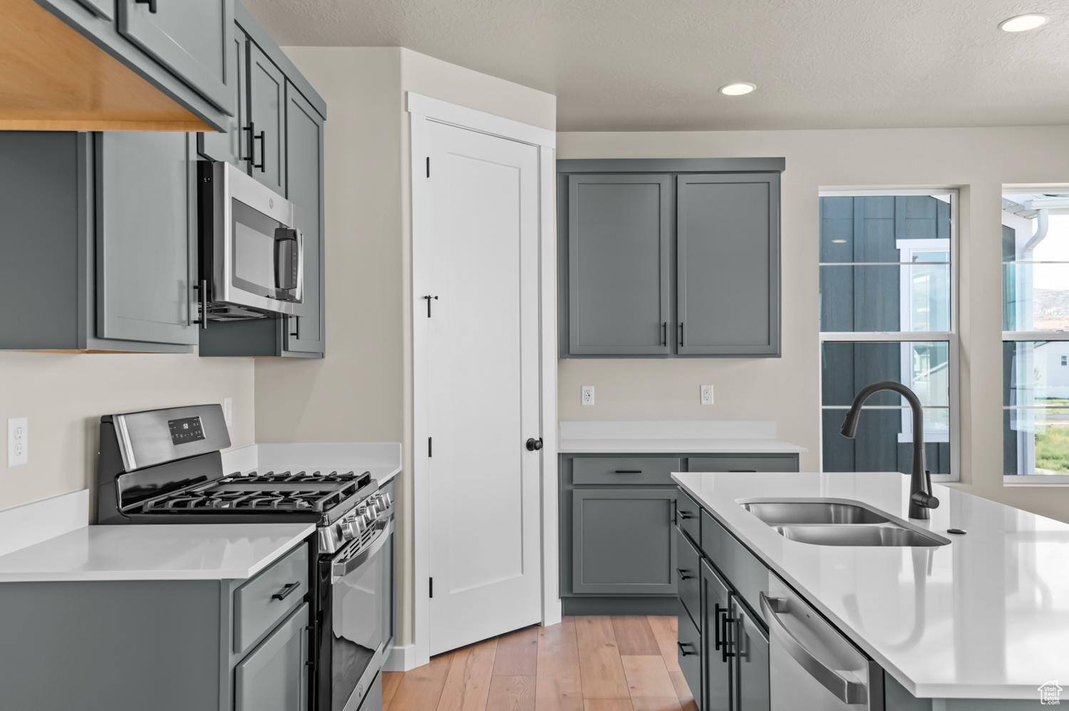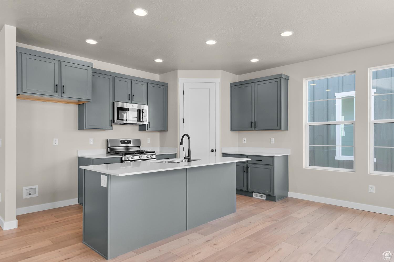 Beautiful brand new Kirkwood Ballpark in a great Lehi community! Featured you will find a modern kitchen with graphite maple cabinets, quartz countertops, tile backsplash and stainless steel gas appliances for all your culinary needs. Durable flooring includes laminate hardwood, tile, and carpet flooring. Elegant finishes include quartz shower surrounds in the owner's bathroom, and black matte hardware. Designed with comfort and efficiency in mind, this home offers can lighting, Christmas light outlets, a tankless water heater, and energy-efficient options. Architectural touches include a metal stair railing, Craftsman base & casing, and 2-tone paint, blending modern design with timeless craftsmanship. Comes fully landscaped that is maintained by the HOA for easy care, hassle free living!