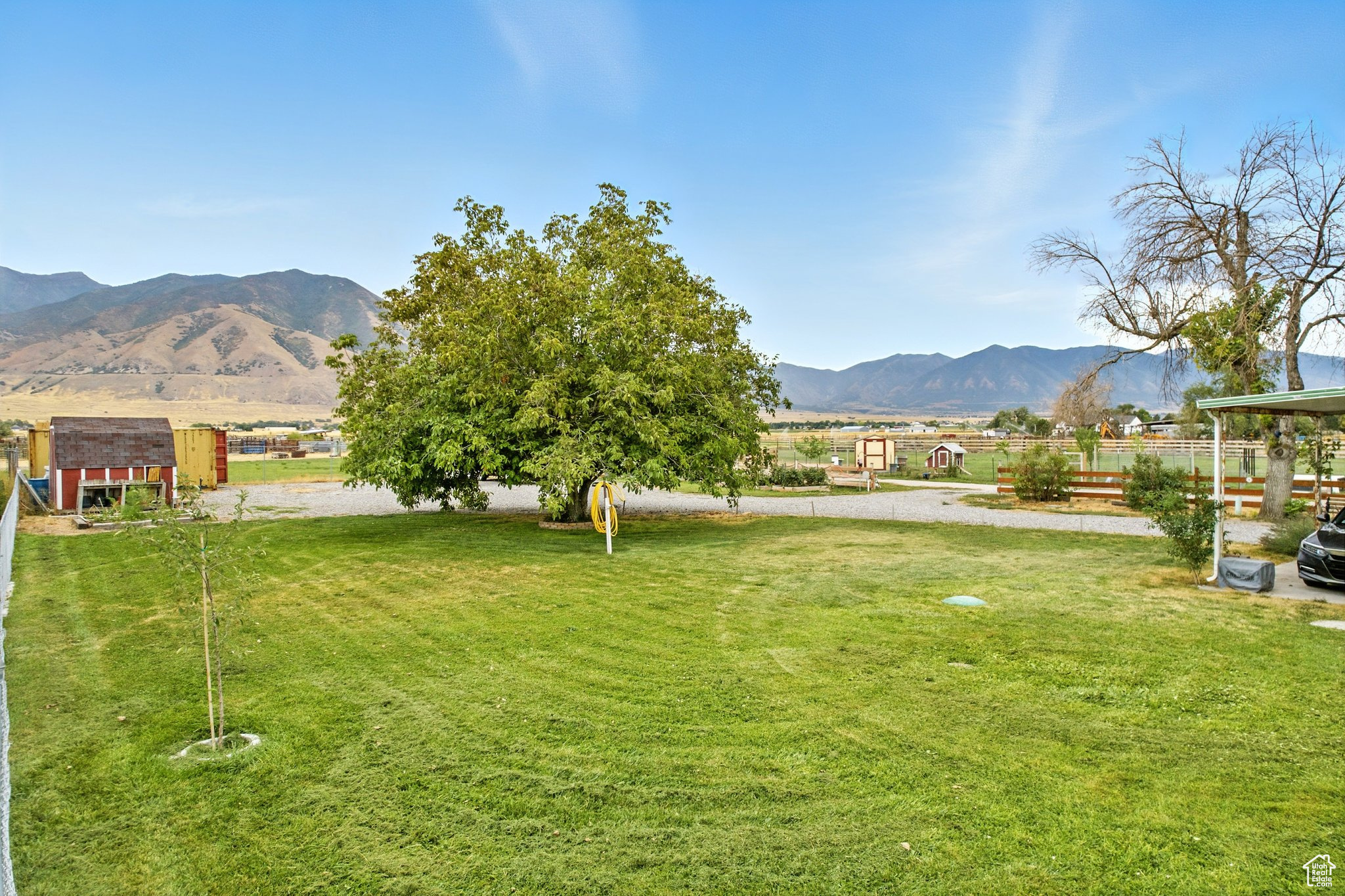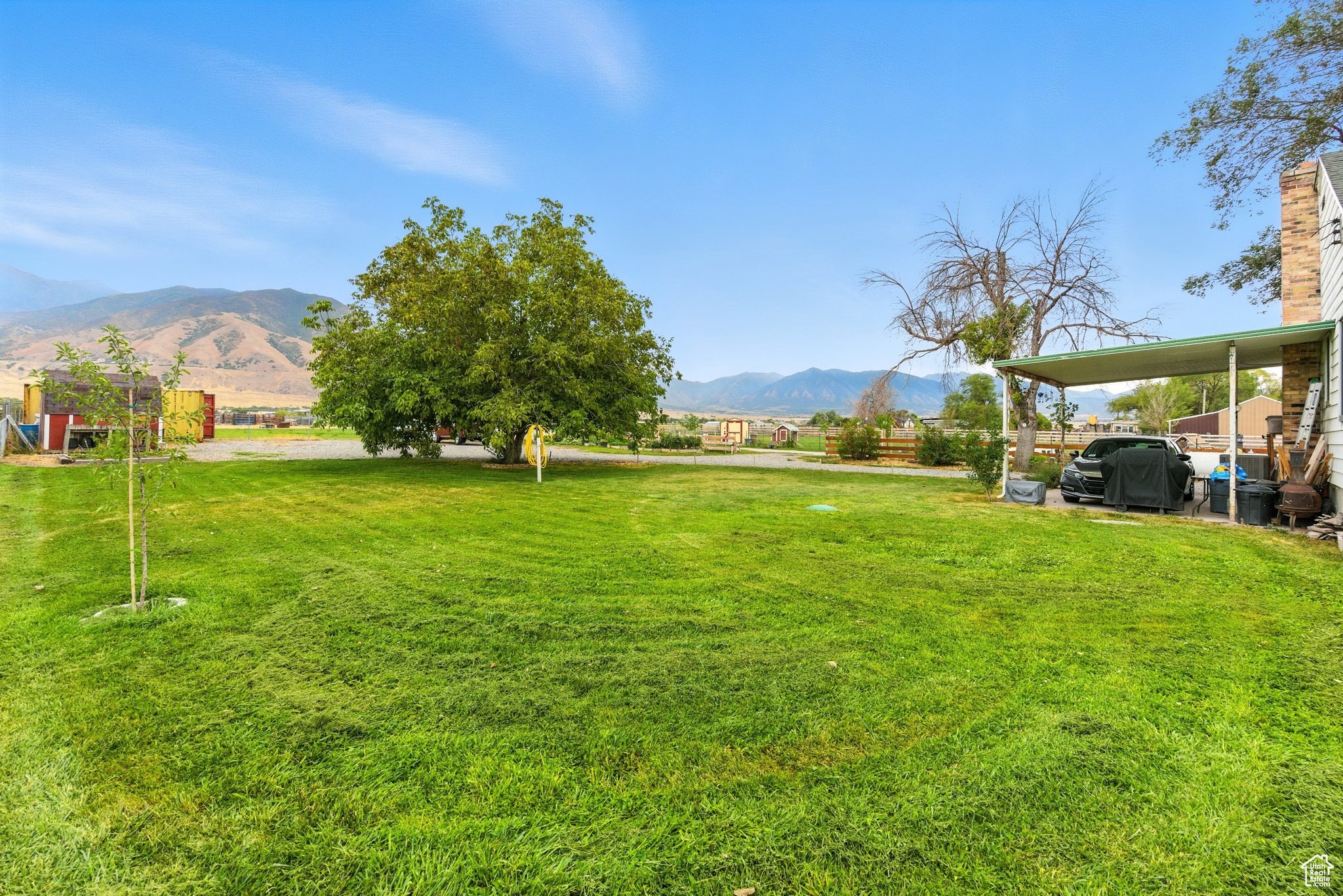 MOTIVATED SELLER. Don't miss this while it's still available! A fully updated 2,568 sq ft, 4-bedroom, 2-bath home on 1 acre in the heart of the Tooele Valley. New windows throughout, HVAC System, custom kitchen cabinets. Upstairs you'll find a remodeled bathroom, basement is newly remodeled to include a beautiful Mother-in-law suite or rentable apartment for extra income. It has a full kitchen and bathroom downstairs with a private entrance. Outside you'll enjoy your 2 goats and 10 chickens in a fully enclosed split pasture with a 12x12 barn, chicken coop and water hydrants and power. The shed and shipping container are great for storing hay and all your farm tools and equipment. A newer septic system, 1.69 acre-feet of water shares included as well as shared well water for culinary use. Huge Walnut tree for shade so you can enjoy the unobstructed view of Pine Canyon and Oquirrh Mountains. Peach, Plum, Apple, Fig, Elderberry, Cherry and Almond tress will provide delicious fresh fruit for your family. You'll enjoy endless Raspberries and the 7 raised beds wil give you ample space to grow all the veggies you need. Easy access off and on the main road and only minutes to Tooele Shopping, Stansbury Park Golf Course and Salt Lake City Airport. Use our Preferred Lender to receive a free 1-0 buy down. Welcome to your modern farmhouse oasis. Come start your dream today.