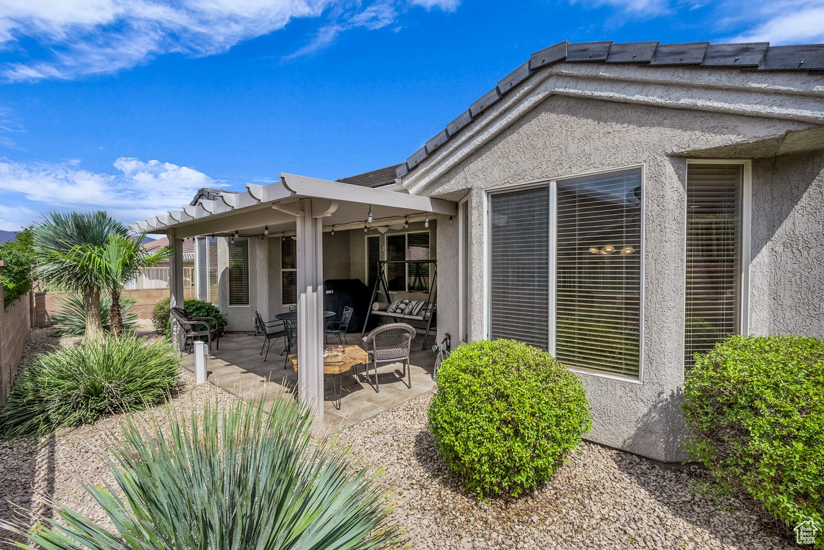 This beautiful home is well-maintained offering an open layout with 10 ft ceilings throughout, creating a bright and spacious feel. The home features a large primary suite along with generously sized guest bedroom. The backyard is designed for both entertaining and low-maintenance living with a large covered patio with a beautiful pergola, stainless steel high-end gas grill, multiple natural gas connections, and xeriscape landscaping. Located in the premier active adult community Sun River, you'll have access to incredible amenities including one of southern Utah's greatest championship golf courses, multiple pools, pickleball, a clubhouse with activities like pottery and woodworking, and more! Furnishings are negotiable. Buyer to verify all information, deemed reliable, however buyer to verify all info including utilities, rental restrictions, and HOA information if applicable.