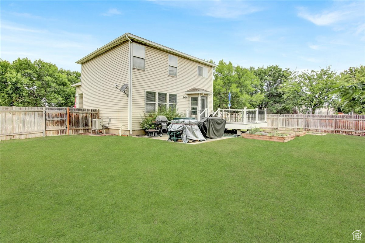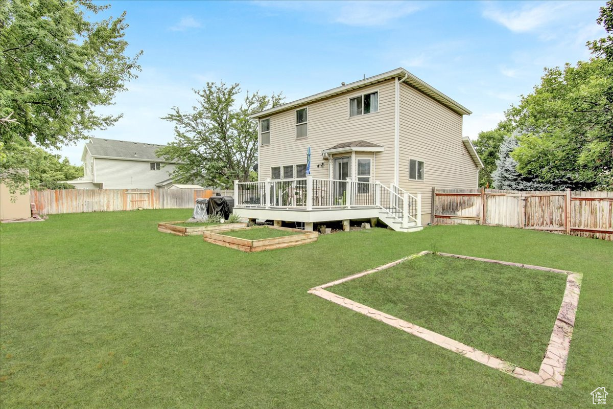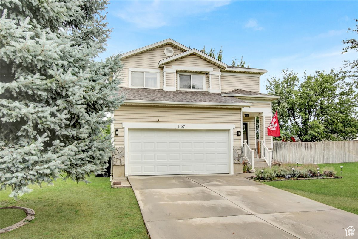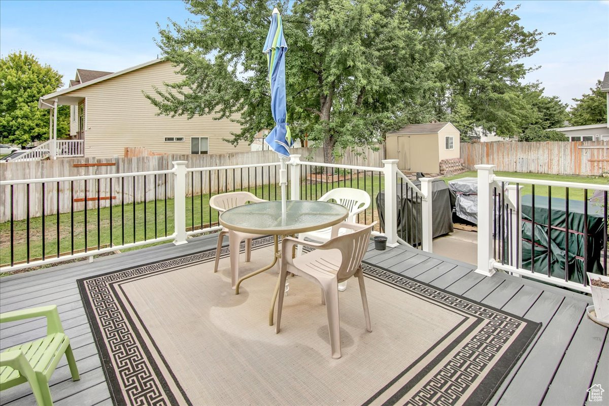 AWESOME PRICE REDUCTION! This adorable two-story home in the heart of Woods Cross, offering both comfort and convenience. Step inside to an open great room filled with natural light, with a built-in island, white cabinetry, granite countertops, and a new refrigerator create a kitchen designed for both style and functionality. The spacious living and dining area provides plenty of room, while a half bath adds ease to the main level. Upper level has three bedrooms and two full baths. The primary suite is a true retreat and has double walk in closets and dual sinks in primary bathroom and a separate laundry room for convenience. Off the kitchen area is the outside deck that is spacious with steps on each side to yard. This home has a huge beautiful, fenced backyard-ideal for BBQ's, play, and peaceful evenings. With auto sprinklers, the yard is easy to maintain and a bonus storage shed! Home is updated with a heating system, water heater, and central air in 2024, giving peace of mind for years to come. Located minutes from Salt Lake City, quick access to shopping, dining, and commuter routes.