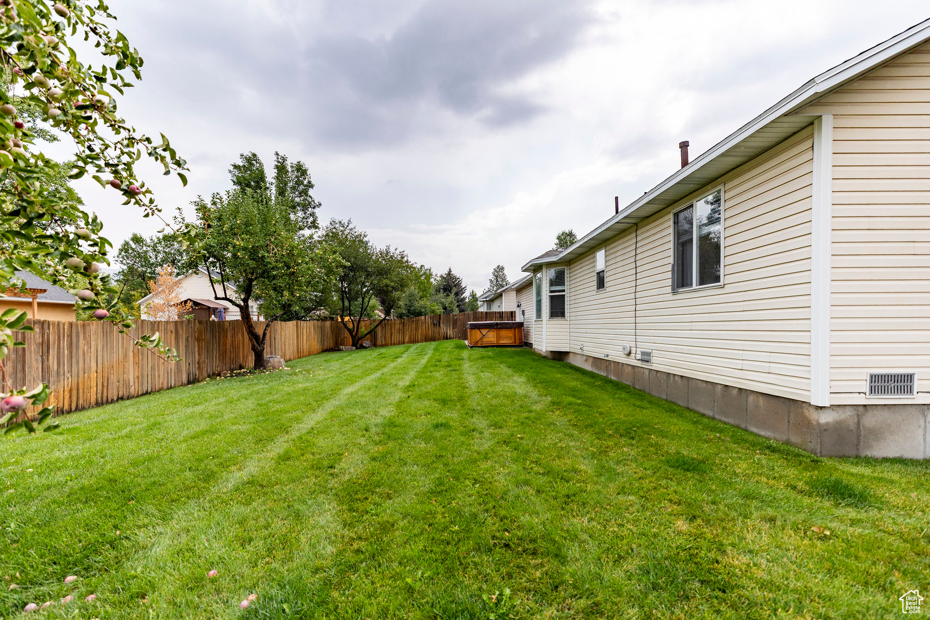 Step onto the covered front porch, coffee in hand, as the morning sun rises over the Wasatch Mountain Range. Here you'll notice thequiet feel of the town gearing up to start another beautiful day in the WasatchBack. Inside, natural light fills a main-level layout that feels effortlessly livable - from the spacious primary suite with walk-in closet to the updated kitchen that hums with brand-new appliances. Whip up breakfast with views of your fully fenced backyard, then head out; everything in Heber is minutes away. Weekends bring crisp mountain air and gatherings under the apple trees. There's space for play, pets, gardening, or simply soaking in the hot tub while snow caps the peaks in the distance. Come evening, settle into the family room for a movie night or take a stroll through thiscentralneighborhood where neighbors still wave and kids ride bikes till dusk. Whether you're building rental income or planting long-term roots, this home balances comfort, convenience, and charm - with a rare yard, updated interiors, and the unbeatable location to match.