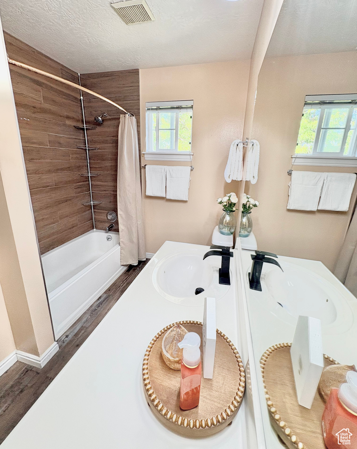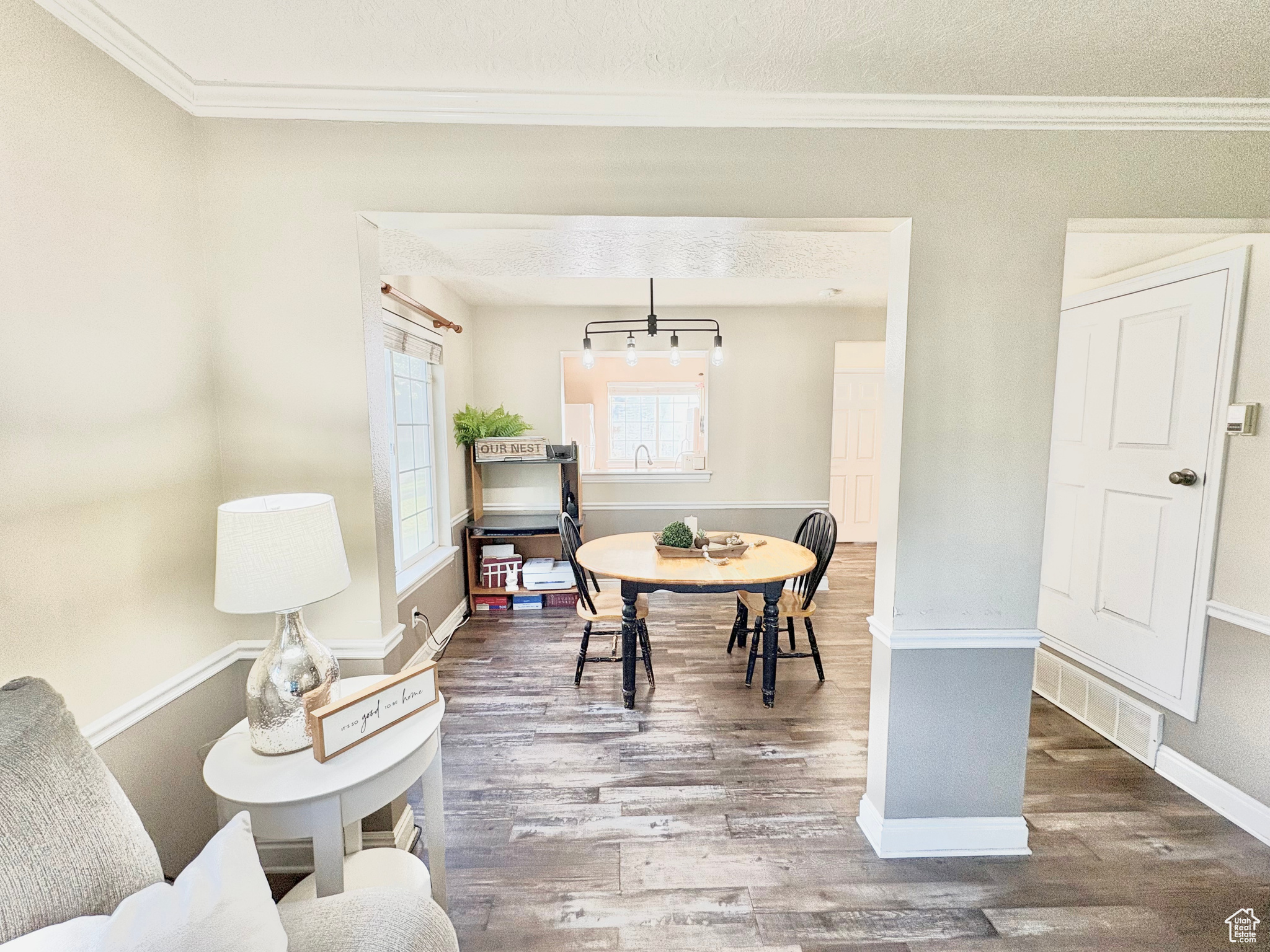 Adorable two-story end unit with a blend of privacy, convenience, and style in this beautiful townhome, just moments from top-rated schools, shopping, dining, grocery stores, and everyday essentials- new beautiful LVP flooring throughout the main level. Step outside to enjoy access to a spacious backyard. Residents also have access to a well-maintained playground and a charming community picnic area. With quick and easy access to I-15, this home makes commuting effortless.