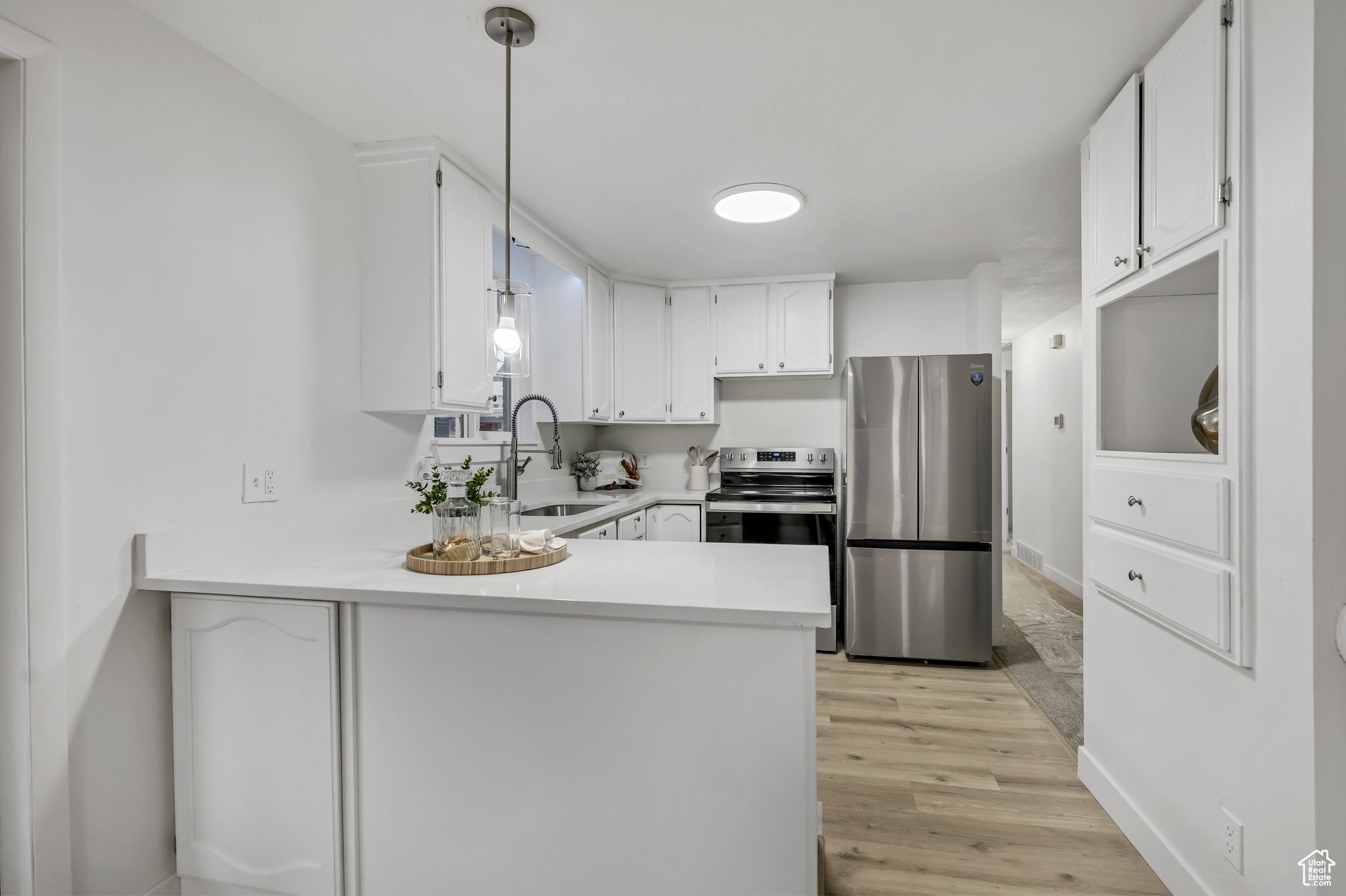 Welcome to your updated Midvale retreat, completely reimagined from top to bottom! This 5 bedroom, 2.5 bath beauty has undergone a transformation featuring a new roof, windows, doors, trim, paint, and drywall, and partially updated electrical and plumbing for peace of mind and years of worry free living. Furnace and central air are less than 5 years old and water heater one year old. Step inside to an open, modern layout with designer finishes, quartz countertops, stainless steel appliances, and luxury vinyl plank flooring that flows seamlessly throughout. Plush new carpet and stylish lighting make each room feel fresh and inviting. Enjoy three spacious bedrooms on the main level plus two additional bedrooms and a large family room downstairs perfect for guests, a home office, or game space. Outside, you'll love the oversized detached two-car garage, ideal for a workshop, home gym, or storage, along with ample RV parking and a private yard for entertaining. Centrally located near I-15, schools, shopping, and dining, this move-in-ready home offers modern upgrades, a flexible floor plan, and unbeatable value in one of the most convenient neighborhoods in the valley.