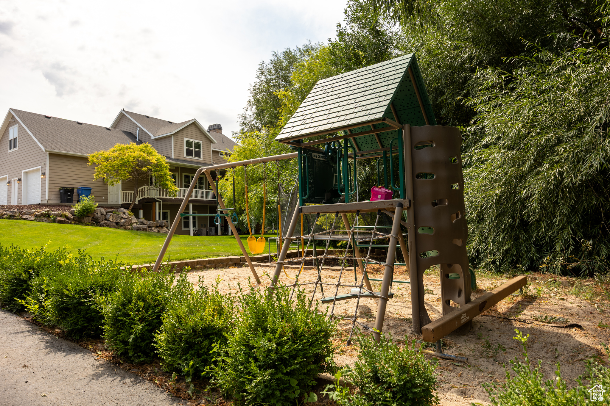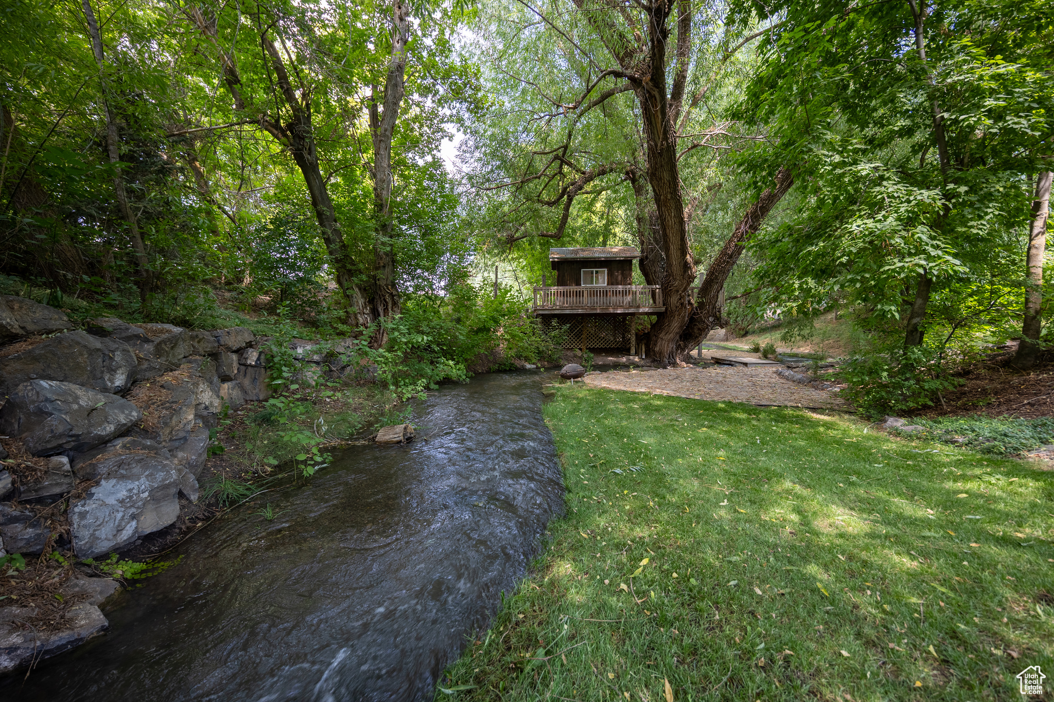 Built in 2004, 1,800 sf main floor, 5,266 finished square feet. Concrete half circle drive, large playground sandbox area, finished basement with full kitchen, large cold storage room under porch, 3 car garage, 6 bedrooms. Large mature trees, garden area, small irrigation creek in backyard. Also includes additional buildable grandfathered lot, two county parcels total acreage 1.28 acres(Garden lot - 01-097-0094).
