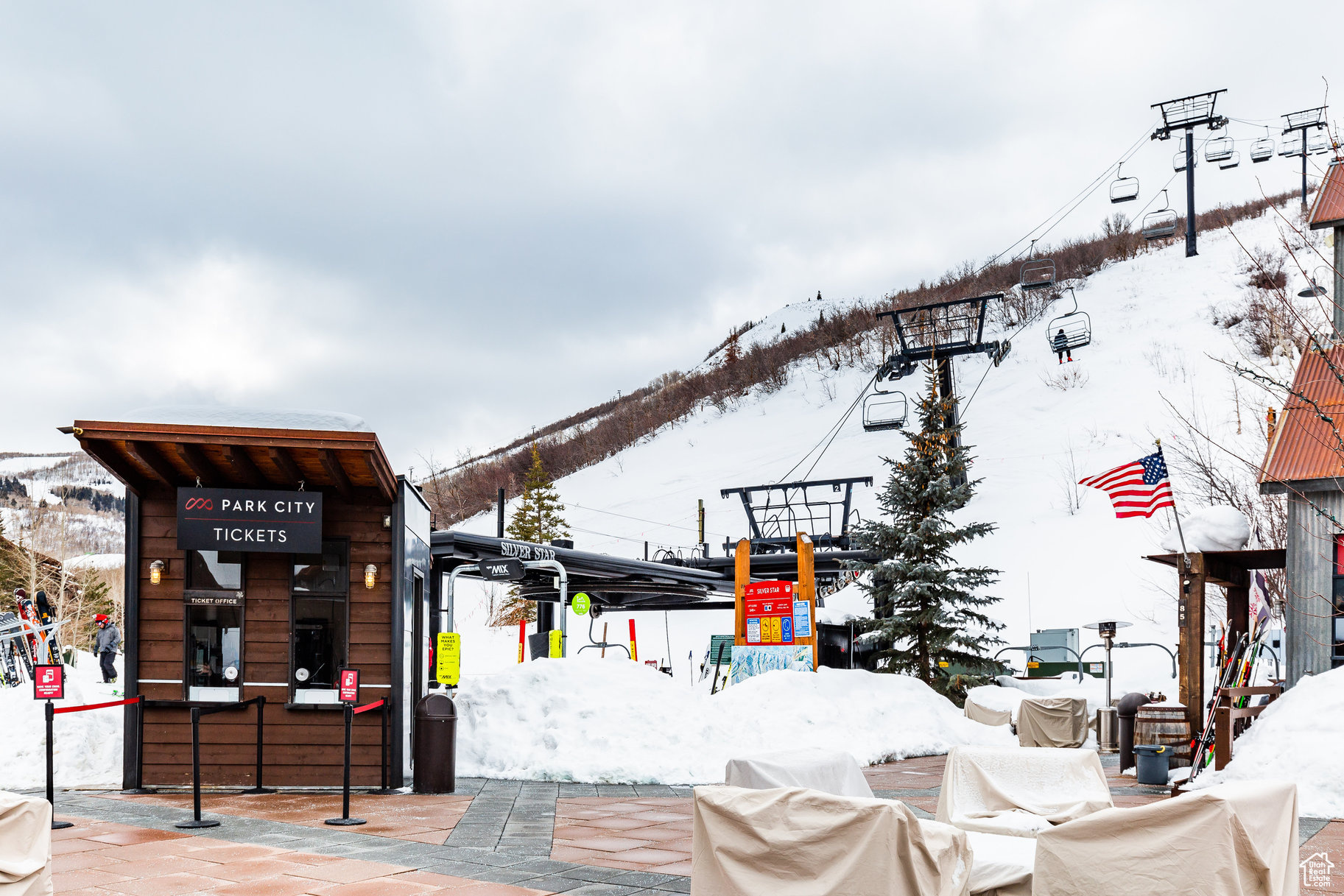 Just steps from the Silver Star Chairlift, this top-floor end unit offers direct ski access and unmatched convenience year-round. Inside, you'll find vaulted ceilings, hardwood floors throughout, ensuite bedrooms, a private hot tub, stainless Viking appliances, generous storage, multiple decks, a spacious laundry room, and two fireplaces. The open-concept great room and kitchen are true standouts-with dramatic vaulted ceilings, a striking fireplace, oversized windows, and stunning mountain views. Tiled bathrooms and granite countertops add to the refined feel, while Silver Star's top-tier amenities-year-round heated pool, hot tub, fitness center, fire pits, ski locker, and winter shuttle-complete the experience. In the summer, step out your door to world-class hiking and mountain biking on the Armstrong and Spiro trails. A rare opportunity to own a turnkey, top-floor end unit in one of Park City's most sought-after ski-in/ski-out communities.