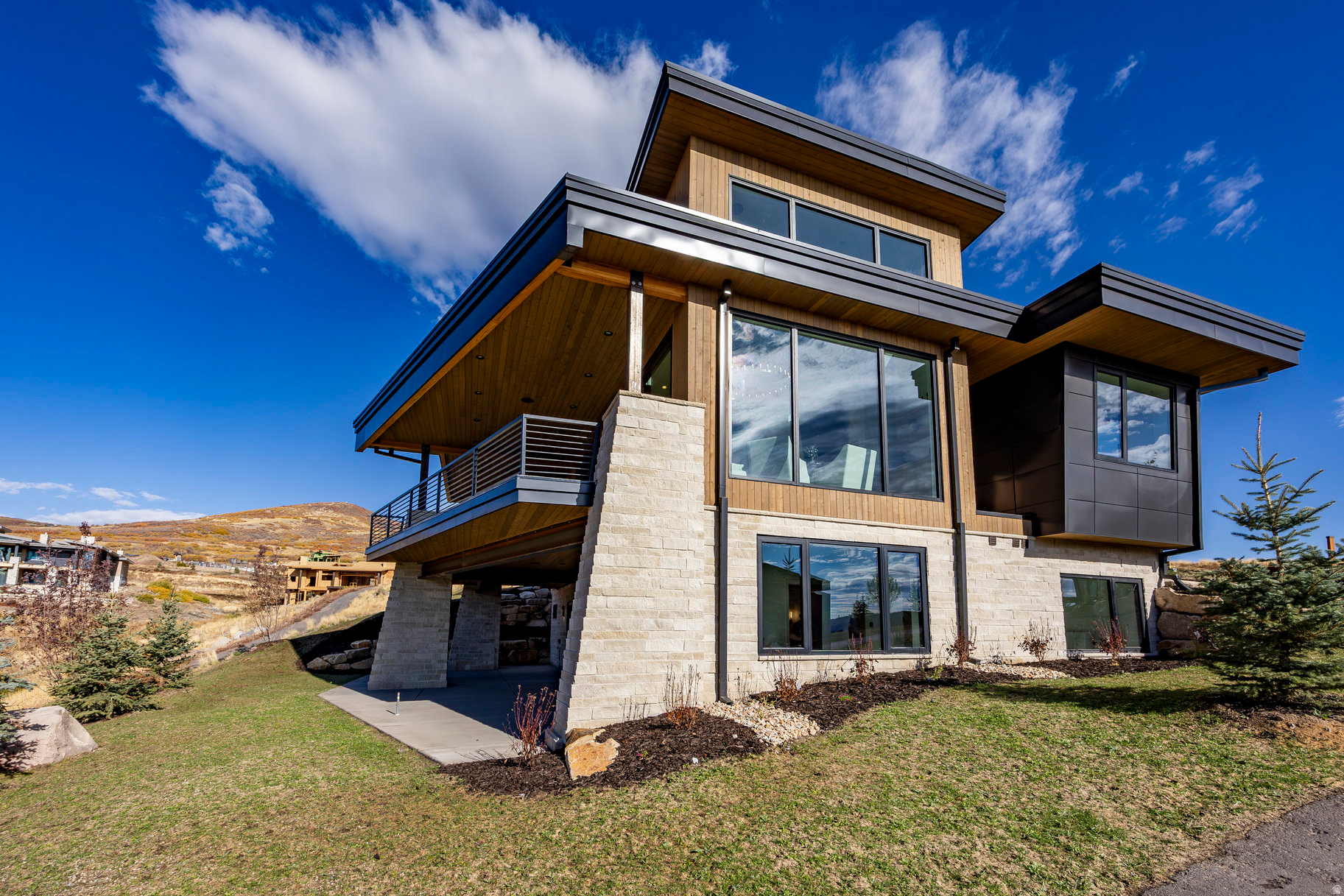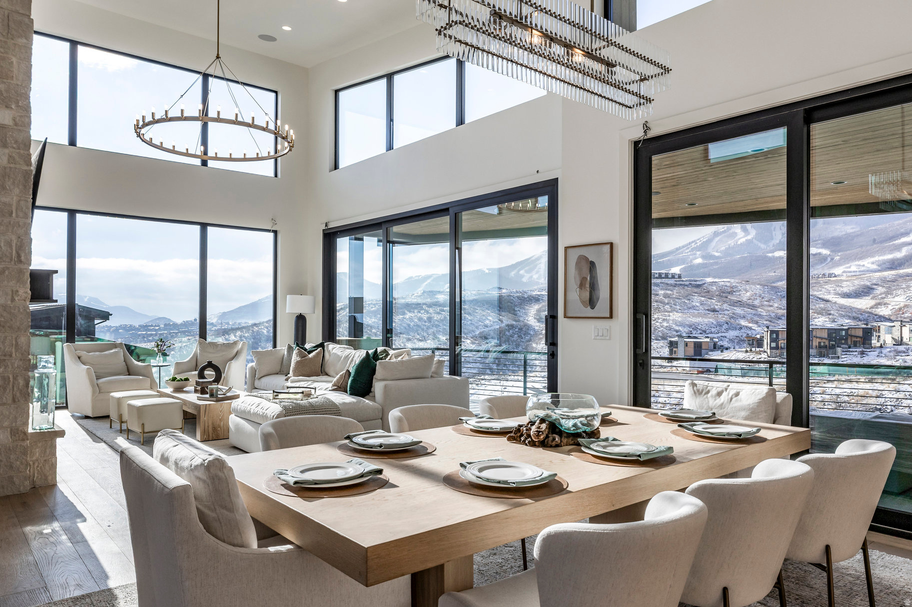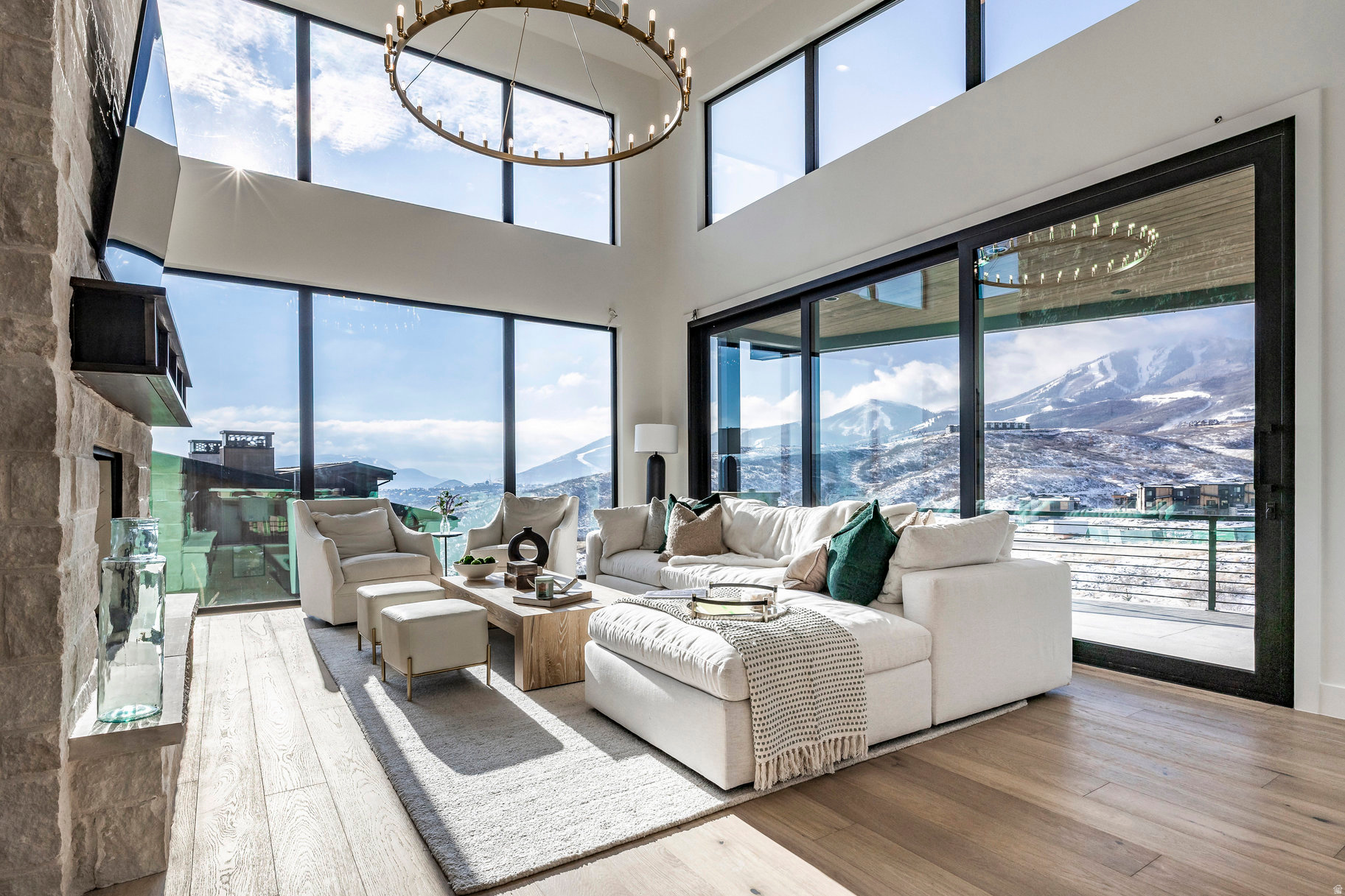 Step into elevated mountain living at 1717 Centaur Court in SkyRidge, a newly built 5,361 sq ft modern mountain retreat designed by Moxie Design and crafted by Aecum Development. This 6-bedroom, 8-bathroom sanctuary was thoughtfully designed to embrace expansive views of Mayflower, Jordanelle Reservoir, and Deer Valley East ski runs through walls of glass in every room. Created for year-round living and entertaining, the home features a chef's kitchen with cabinet-paneled appliances, a kitchen island with custom milled waterfall edge, dual dishwashers, and custom cabinetry, all flooded with natural light. Expansive gathering spaces flow seamlessly to view-filled terraces, while the private primary suite crowns the upper level with its own rooftop patio facing hundreds of acres of ski terrain. The floor plan offers ultimate flexibility: two bedroom suites on the main level (one perfect as a home office), and three additional suites downstairs alongside a large game room with a wet bar. Details such as a heated driveway, custom lighting, and refined finishes elevate the sophistication of the home. As part of the premier SkyRidge community, residents enjoy direct access to the new Deer Valley East expansion, complete with a planned resort base offering dining, ski shops, and shuttle access. Outdoor adventure awaits just minutes away with boating at Jordanelle, equestrian facilities, golf, and miles of scenic hiking and biking trails-all within easy reach of Park City, Salt Lake City, and the Heber Valley. Purposefully priced below comparable homes in the community, this residence delivers luxury, adventure, and serenity-the ultimate mountain lifestyle.