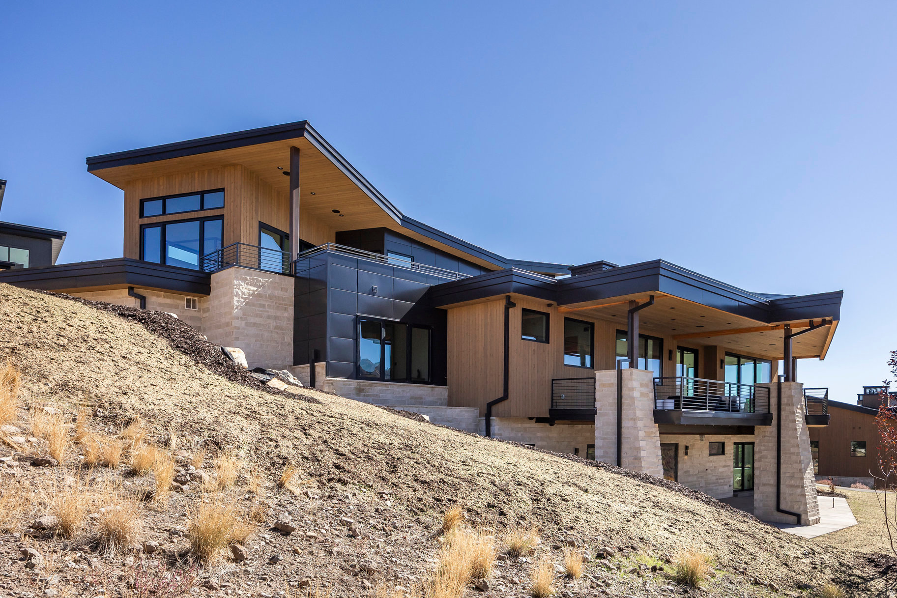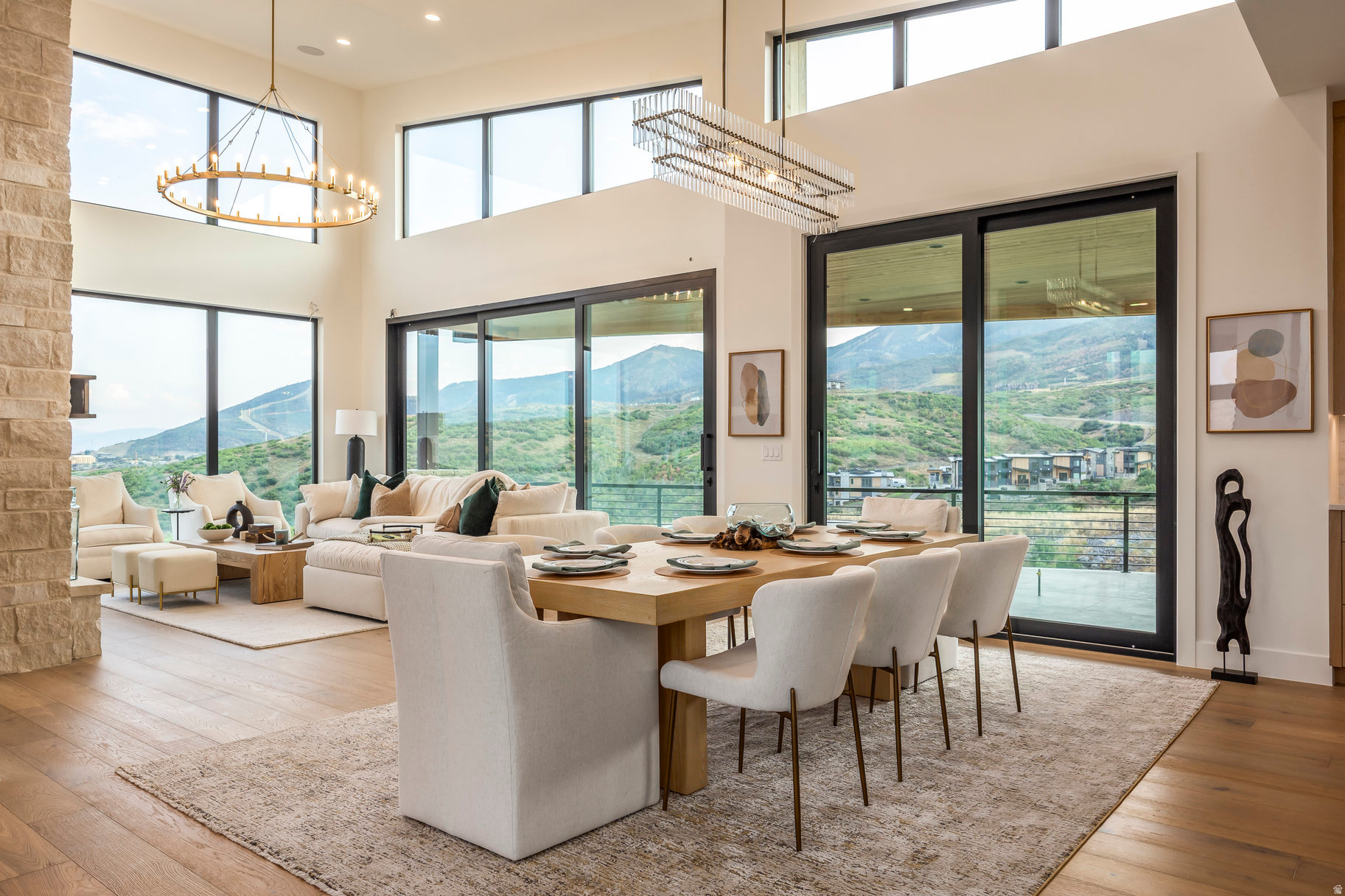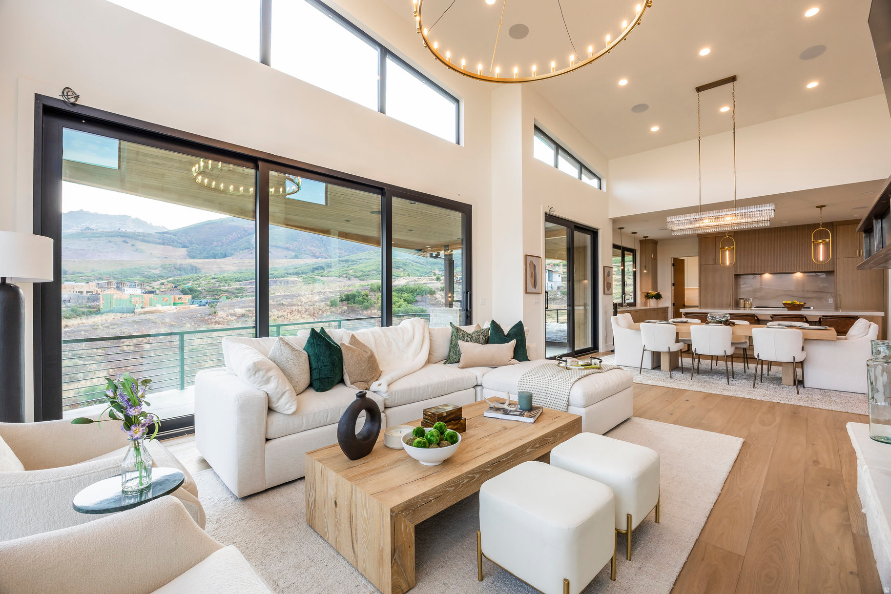 Step into elevated mountain living at 1717 Centaur Court in SkyRidge, a newly built 5,361 sq ft modern mountain retreat designed by Moxie Design and crafted by Aecum Development. This 6-bedroom, 8-bathroom sanctuary was thoughtfully designed to embrace expansive views of Mayflower, Jordanelle Reservoir, and Deer Valley East ski runs through walls of glass in every room. Created for year-round living and entertaining, the home features a chef's kitchen with cabinet-paneled appliances, a kitchen island with custom milled waterfall edge, dual dishwashers, and custom cabinetry, all flooded with natural light. Expansive gathering spaces flow seamlessly to view-filled terraces, while the private primary suite crowns the upper level with its own rooftop patio facing hundreds of acres of ski terrain. The floor plan offers ultimate flexibility: two bedroom suites on the main level (one perfect as a home office), and three additional suites downstairs alongside a large game room with a wet bar. Details such as a heated driveway, custom lighting, and refined finishes elevate the sophistication of the home. As part of the premier SkyRidge community, residents enjoy direct access to the new Deer Valley East expansion, complete with a planned resort base offering dining, ski shops, and shuttle access. Outdoor adventure awaits just minutes away with boating at Jordanelle, equestrian facilities, golf, and miles of scenic hiking and biking trails-all within easy reach of Park City, Salt Lake City, and the Heber Valley. Purposefully priced below comparable homes in the community, this residence delivers luxury, adventure, and serenity-the ultimate mountain lifestyle.