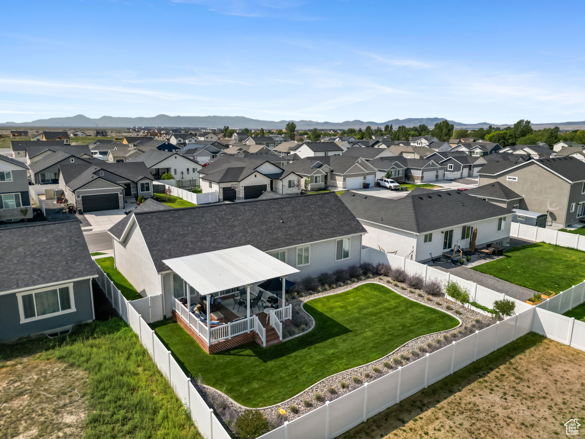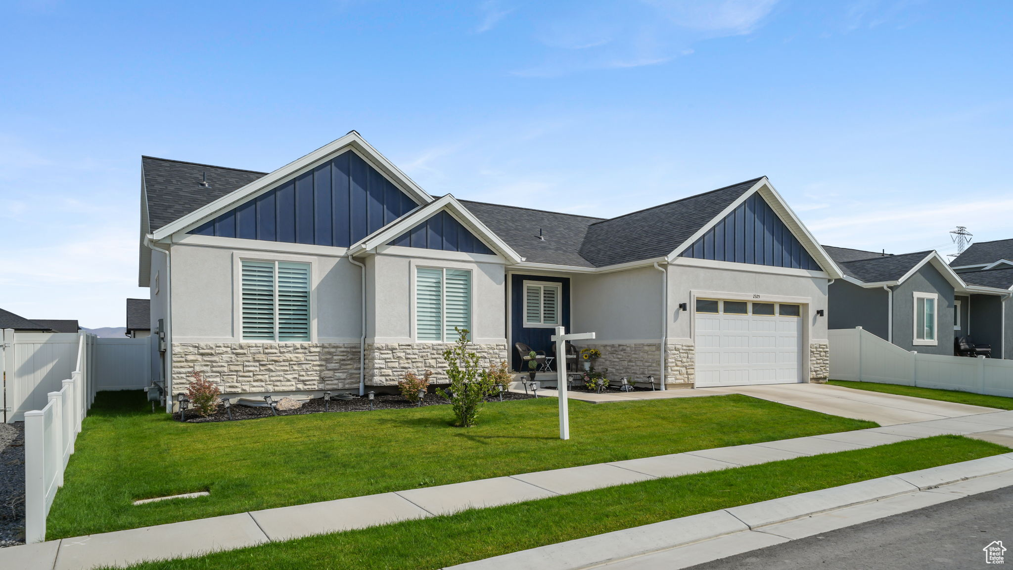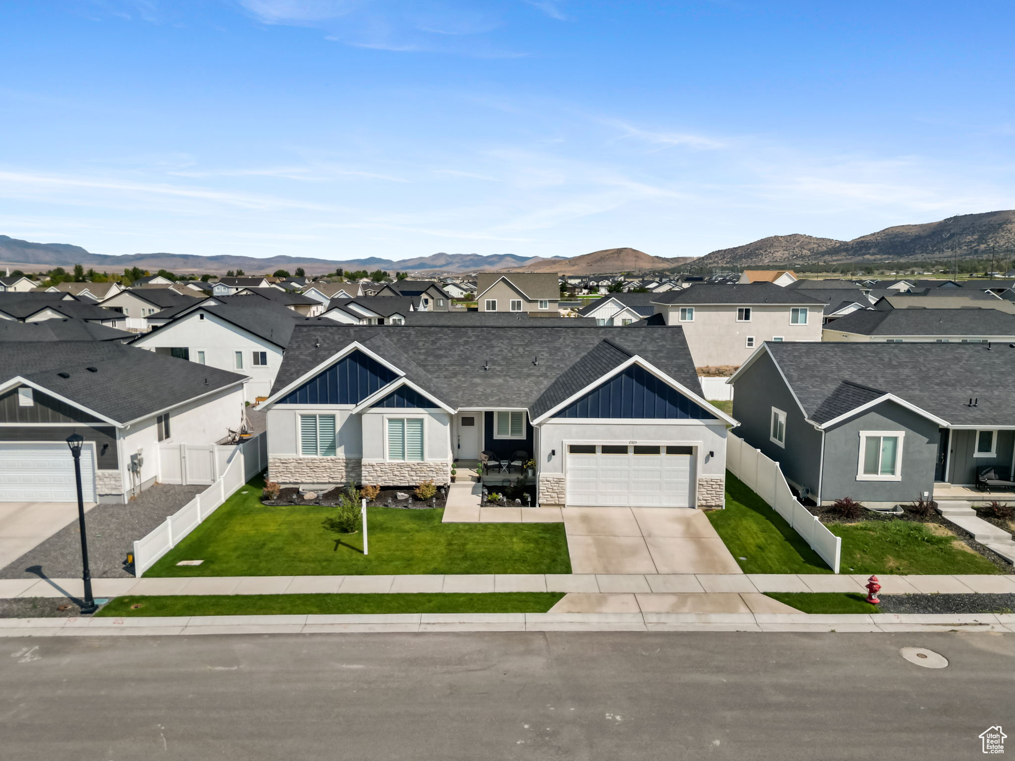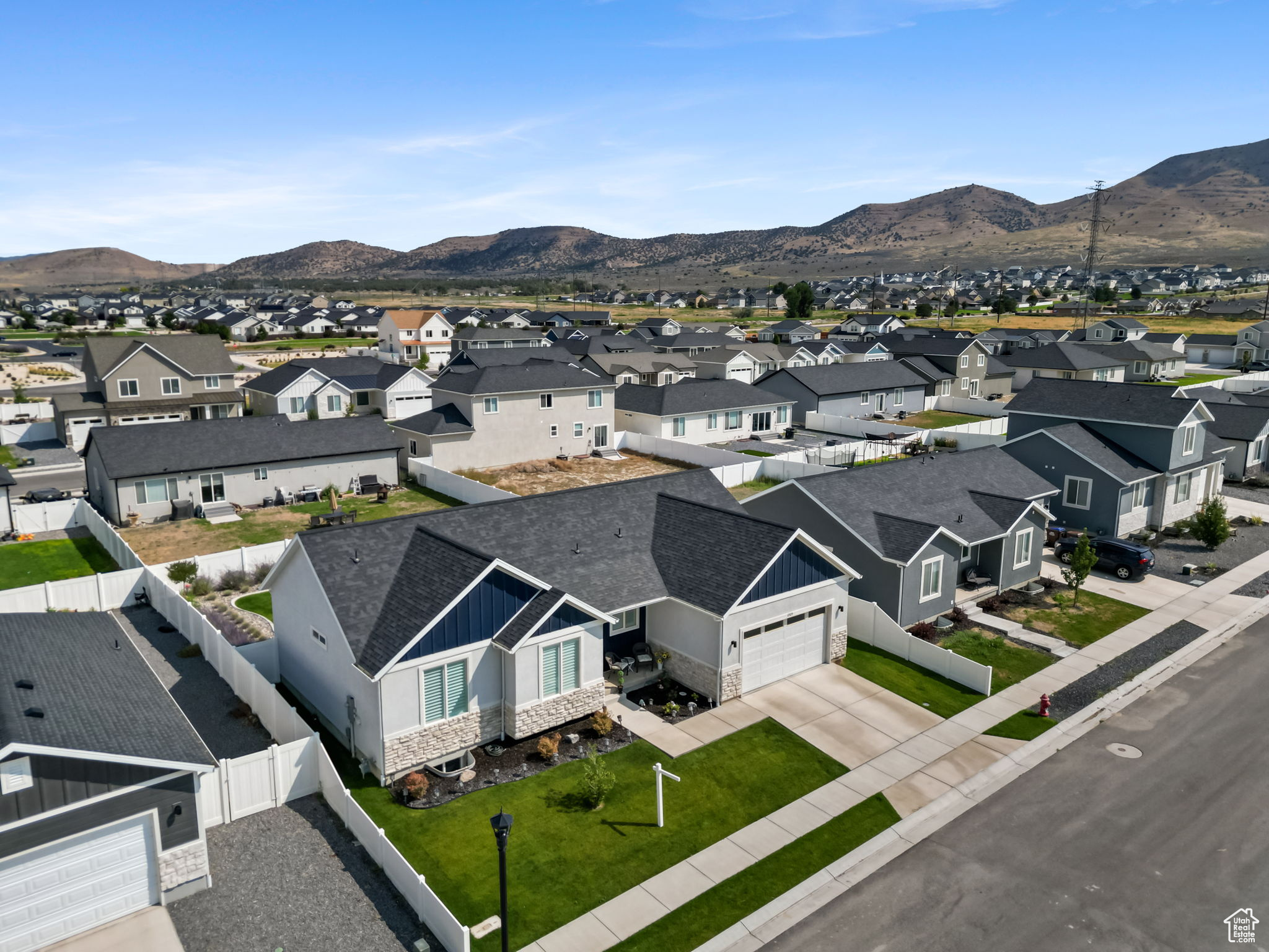 Lowest priced listing in the neighborhood and it is the nicest looking! Seller to pay for a 2/1 buydown. Preferred lender to pay for a 1% buydown the first year. Contact agent for lender details. That means a potential 3% rate reduction the first year and 1% savings the second year, saving thousands for a buyer. Use your savings to get all new furnishings or solar panels or finish the basement. Absolutely stunning single family home with zero damage and it is less than two years old. Located in Eagle Mountain, just minutes from grocery stores, restaurants, and much more! It features 3 bedrooms and 2 bathrooms, with a deep 2-car garage, which is often not the case with these new builds, and room to expand into the basement for your gym to beef up in, or a pool table! You'll find all of the upgrades you would actually want like granite countertops throughout, with comfort-height sinks in the bathrooms. The primary bedroom ensuite includes a vaulted ceiling, double sinks, a walk-in shower, a separate soaker tub, and a walk-in closet. The vaulted ceiling and the open floor plan are perfect for entertaining! Plantation shutters are installed on all the windows and keep the home fresh and clean. The lot is fully landscaped and fenced (often a very unique feature in Eagle Mountain), with a huge covered deck with a pergola for hanging out, and is located in a community with no HOA, hallelujah! Most furniture is negotiable, but the seller is including the refrigerator, washer and dryer. Move-in ready! Check it out now before it flies the coop!