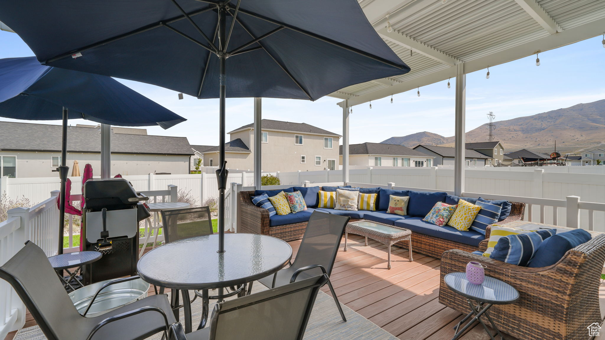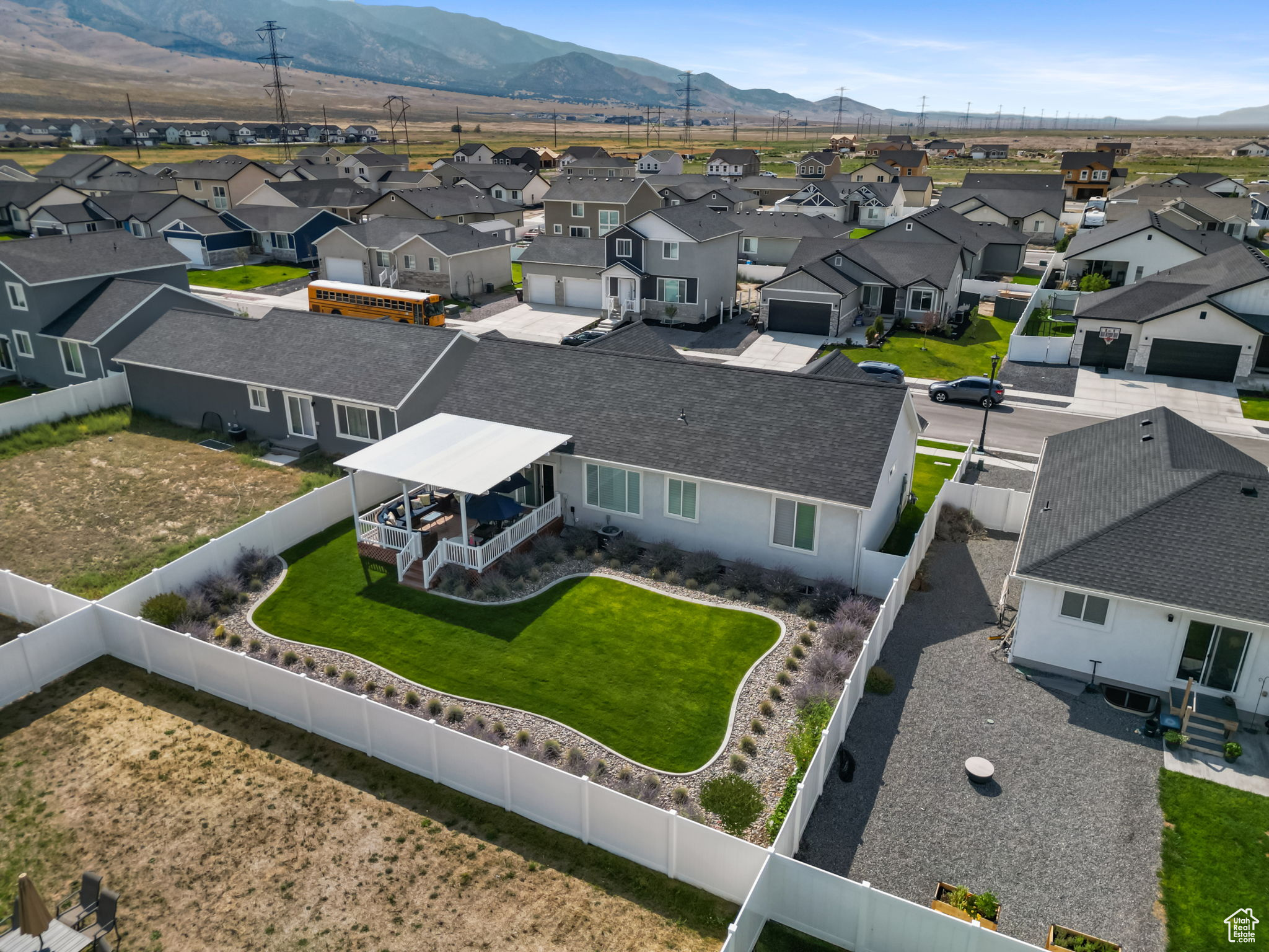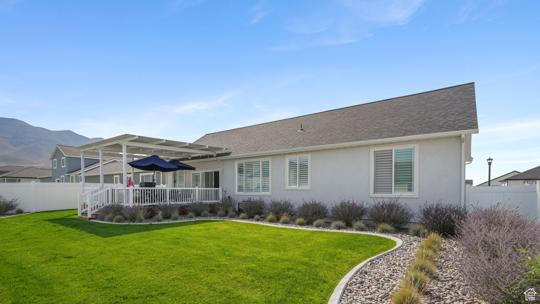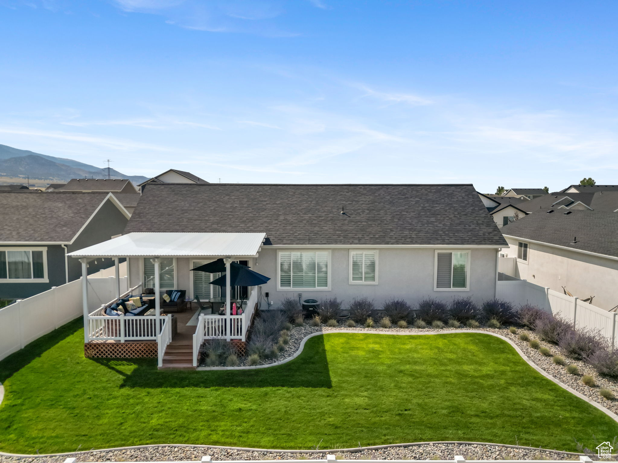 Lowest priced listing in the neighborhood and it is the nicest looking! Seller to pay for a 2/1 buydown. Preferred lender to pay for a 1% buydown the first year. Contact agent for lender details. That means a potential 3% rate reduction the first year and 1% savings the second year, saving thousands for a buyer. Use your savings to get all new furnishings or solar panels or finish the basement. Absolutely stunning single family home with zero damage and it is less than two years old. Located in Eagle Mountain, just minutes from grocery stores, restaurants, and much more! It features 3 bedrooms and 2 bathrooms, with a deep 2-car garage, which is often not the case with these new builds, and room to expand into the basement for your gym to beef up in, or a pool table! You'll find all of the upgrades you would actually want like granite countertops throughout, with comfort-height sinks in the bathrooms. The primary bedroom ensuite includes a vaulted ceiling, double sinks, a walk-in shower, a separate soaker tub, and a walk-in closet. The vaulted ceiling and the open floor plan are perfect for entertaining! Plantation shutters are installed on all the windows and keep the home fresh and clean. The lot is fully landscaped and fenced (often a very unique feature in Eagle Mountain), with a huge covered deck with a pergola for hanging out, and is located in a community with no HOA, hallelujah! Most furniture is negotiable, but the seller is including the refrigerator, washer and dryer. Move-in ready! Check it out now before it flies the coop!