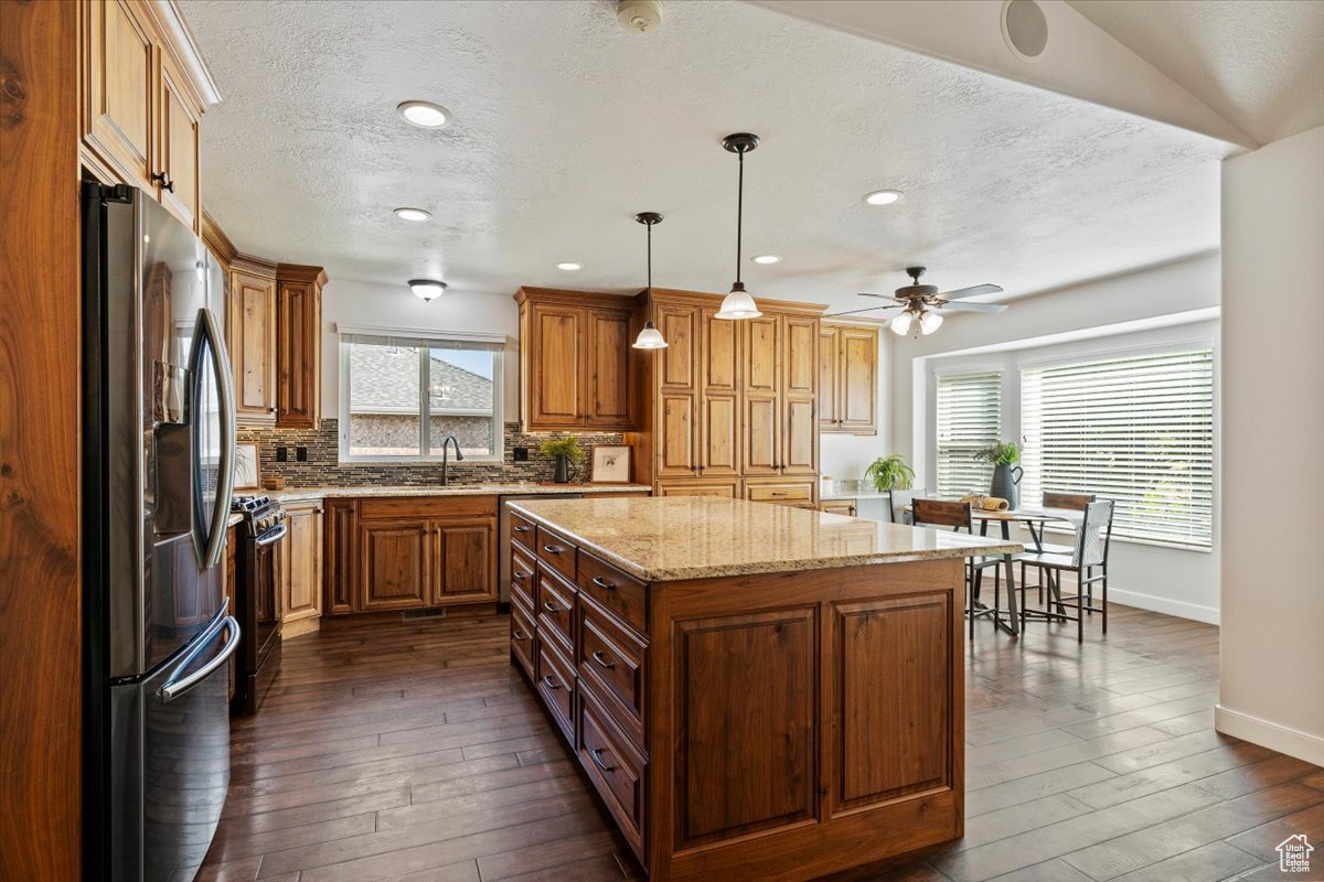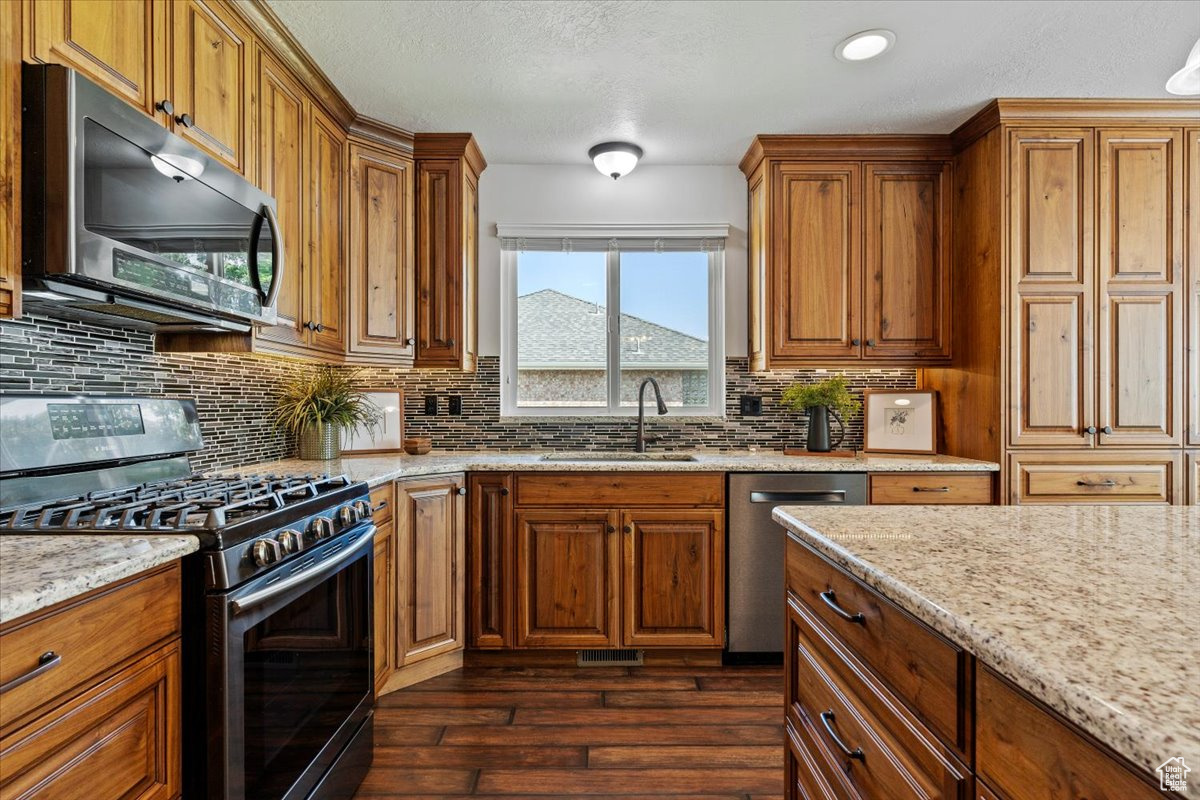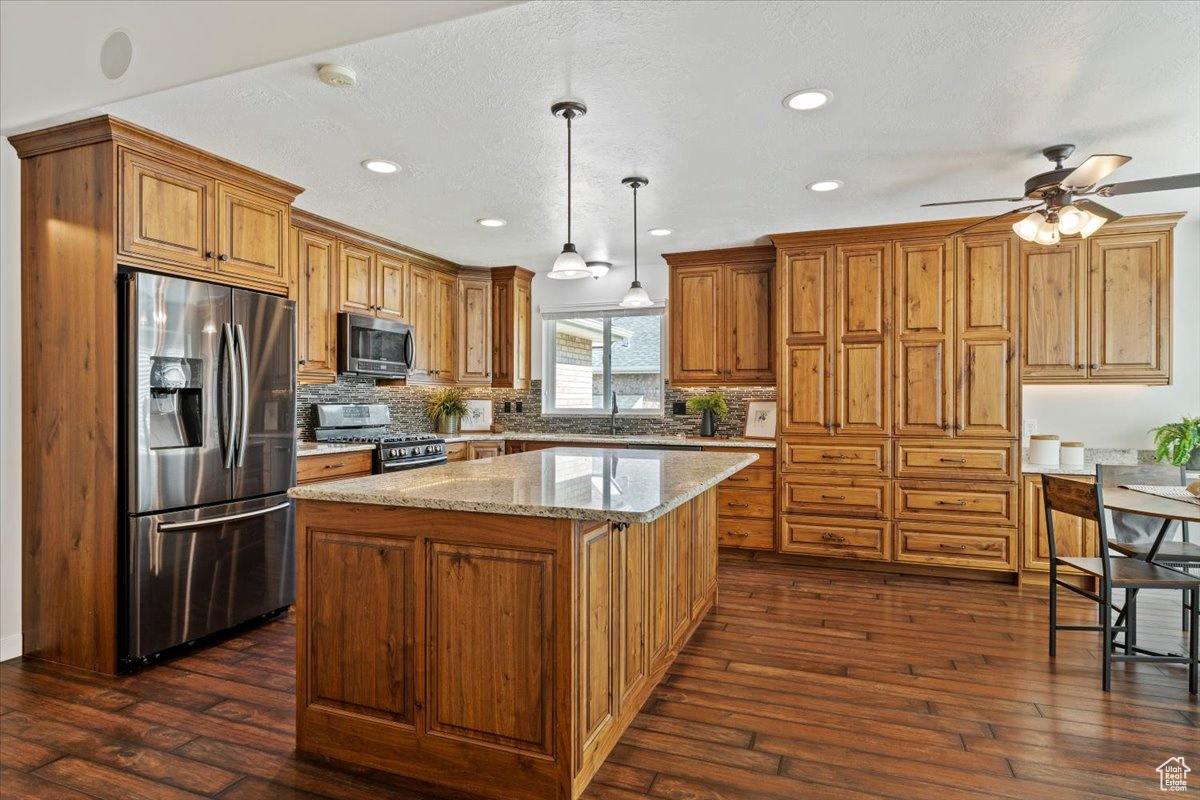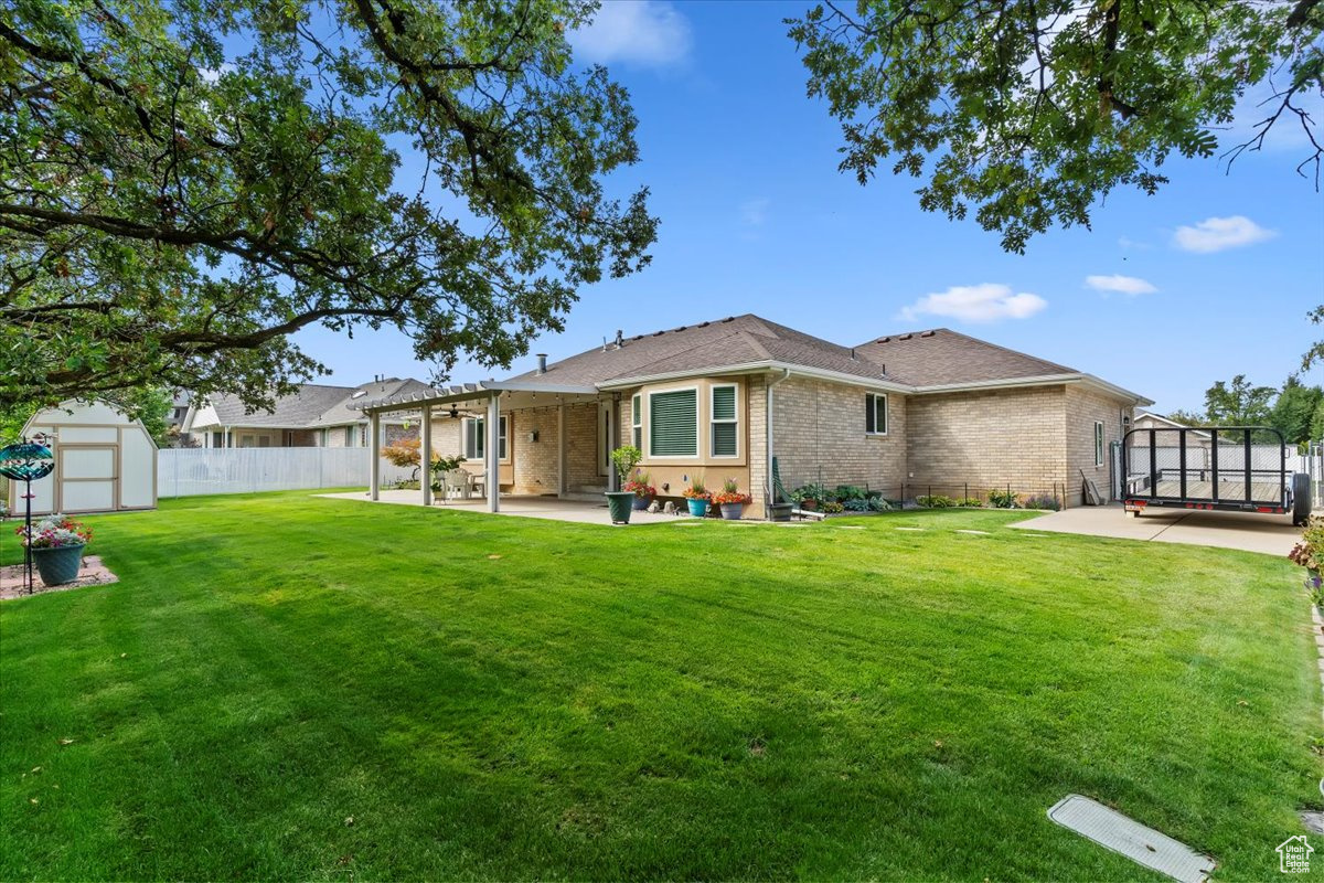 Welcome home to this beautifully maintained 5-bedroom, 4-bath East Layton rambler tucked against the Wasatch mountains. Step inside to an updated kitchen featuring abundant cabinets, under-cabinet lighting, granite countertops, pendant lighting, a large island, and even a built-in desk. The dining nook with a picture window flows into the vaulted family room with a cozy fireplace and access to the large, secluded, covered patio-perfect for relaxing and entertaining. The primary suite offers a spacious retreat with a walk-in closet, double sinks, and a large shower. Two additional bedrooms and a full bath, along with a formal living room and open entry, complete the main floor. The fully finished basement is designed for gatherings and flexibility, boasting a separate TV room, game area, full kitchen, two more bedrooms, and another full bath, plus generous storage and shelving. A half bath off the garage entrance, a large 3-car garage with an extra-long bay, workbench, and overhead storage, plus RV parking, making room for all your toys. Outside, enjoy a fully fenced yard to keep your pets contained, immaculately landscaping that shows true pride of ownership. Water heater, rain gutters, and windows new in last few years. Roof, Furnace, and AC replaced in last 10 years. All this in a prime location-just minutes to HAFB, Hwy 89, shopping, dining, lakes, and world-class ski resorts, and only 20 minutes to SLC Airport. Don't miss your chance to own this East Layton gem! Schedule your private showing today-this one won't last!