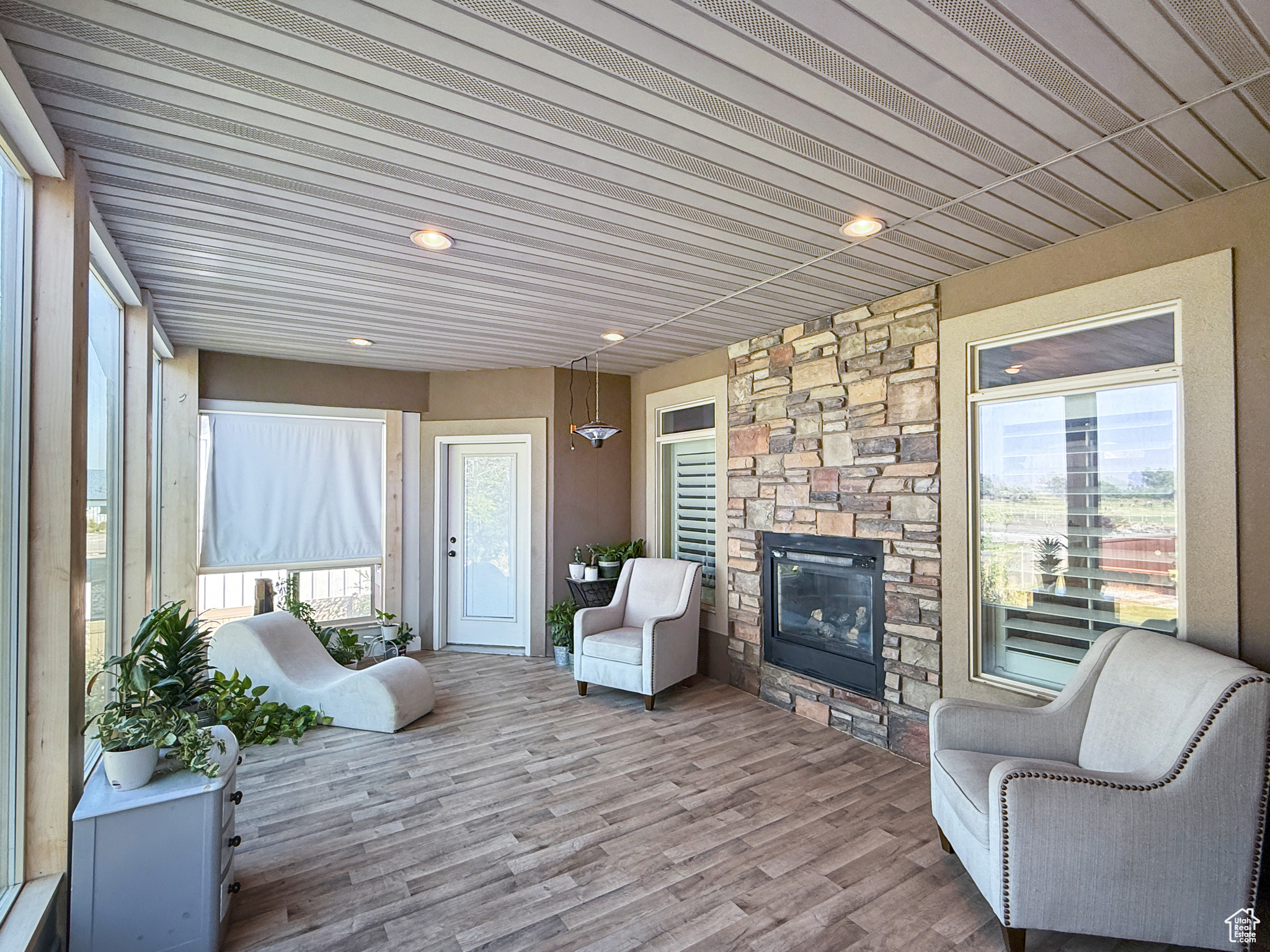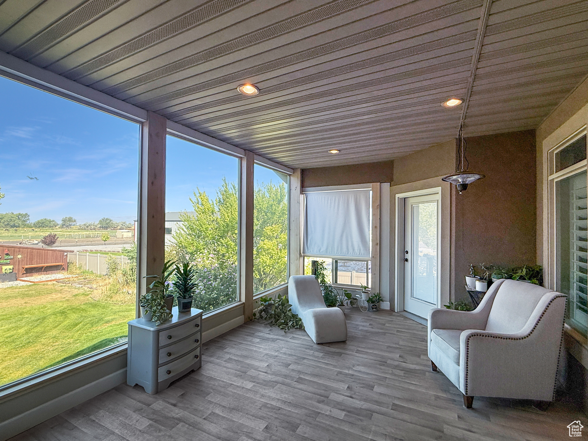 Welcome to this stunning country home in Deweyville, capturing sunset views over the Coldwater Mountain Range. The open-concept layout boasts a sunlit kitchen, great room, and a master suite with a walkout sunroom featuring a see-through gas fireplace, jetted tub, and double walk-in shower. The lower level offers additional living with a kitchenette and beauty salon, along with laundry on both levels. A mudroom with custom cabinets and lockers adds convenience, while landscaped grounds showcase a waterfall, mature trees, and a spacious garage with RV parking plus an outbuilding for ample storage. Available to pre-qualified buyers only. Square footage figures are from county records; buyer to verify.