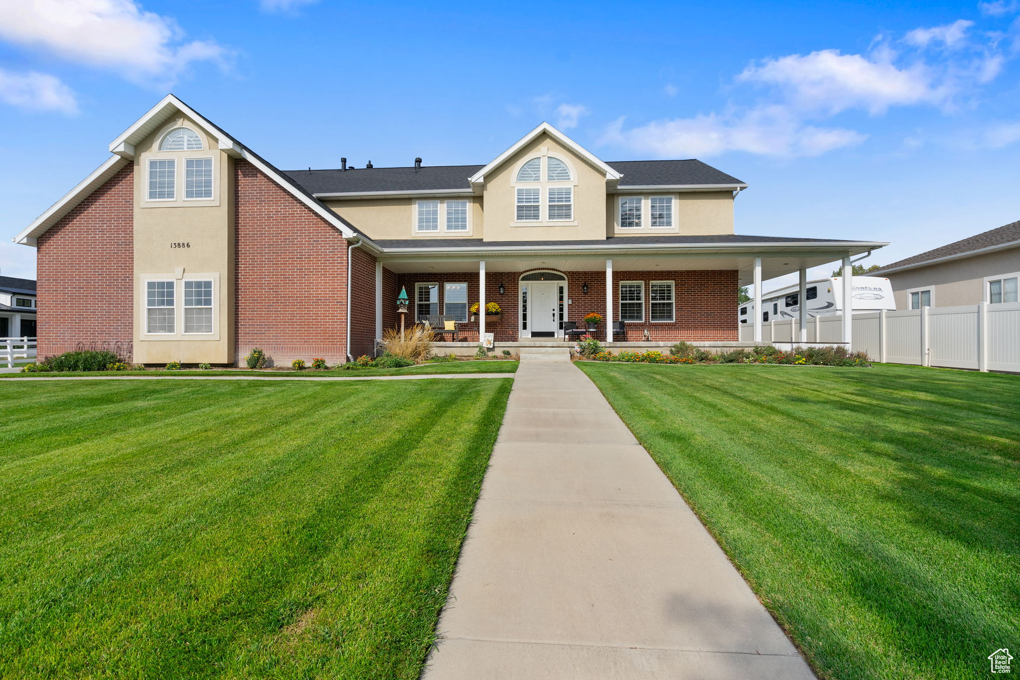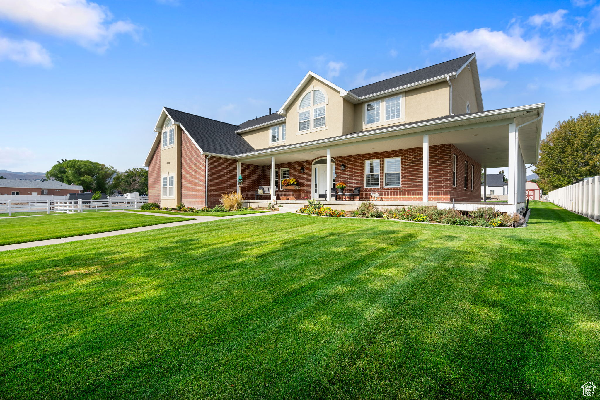 Bluffdale Beauty with Wasatch Views Welcome to your dream home-where wide-open space meets comfort and style. From the wrap-around porch, soak in breathtaking views of the Wasatch Mountains, then step inside to nearly 6,500 sq ft of living space with 6 bedrooms, 6 bathrooms, and endless storage. The heart of the home is the kitchen, packed with cabinets and opening to a covered patio-perfect for BBQ nights. The primary suite is its own retreat, featuring marble countertops, a clawfoot tub, and a separate marble shower. Extras like plantation shutters, central vacuum, intercom, and a basement entry make life easy. Set on 1.31 acres of horse property, you'll find a shed, lean-to, and even a pressurized irrigation water share. A newer roof brings peace of mind, and you're just minutes from shopping and Bangerter for a quick I-15 commute. This Bluffdale gem checks every box-space, views, and room to live the lifestyle you've been dreaming of.