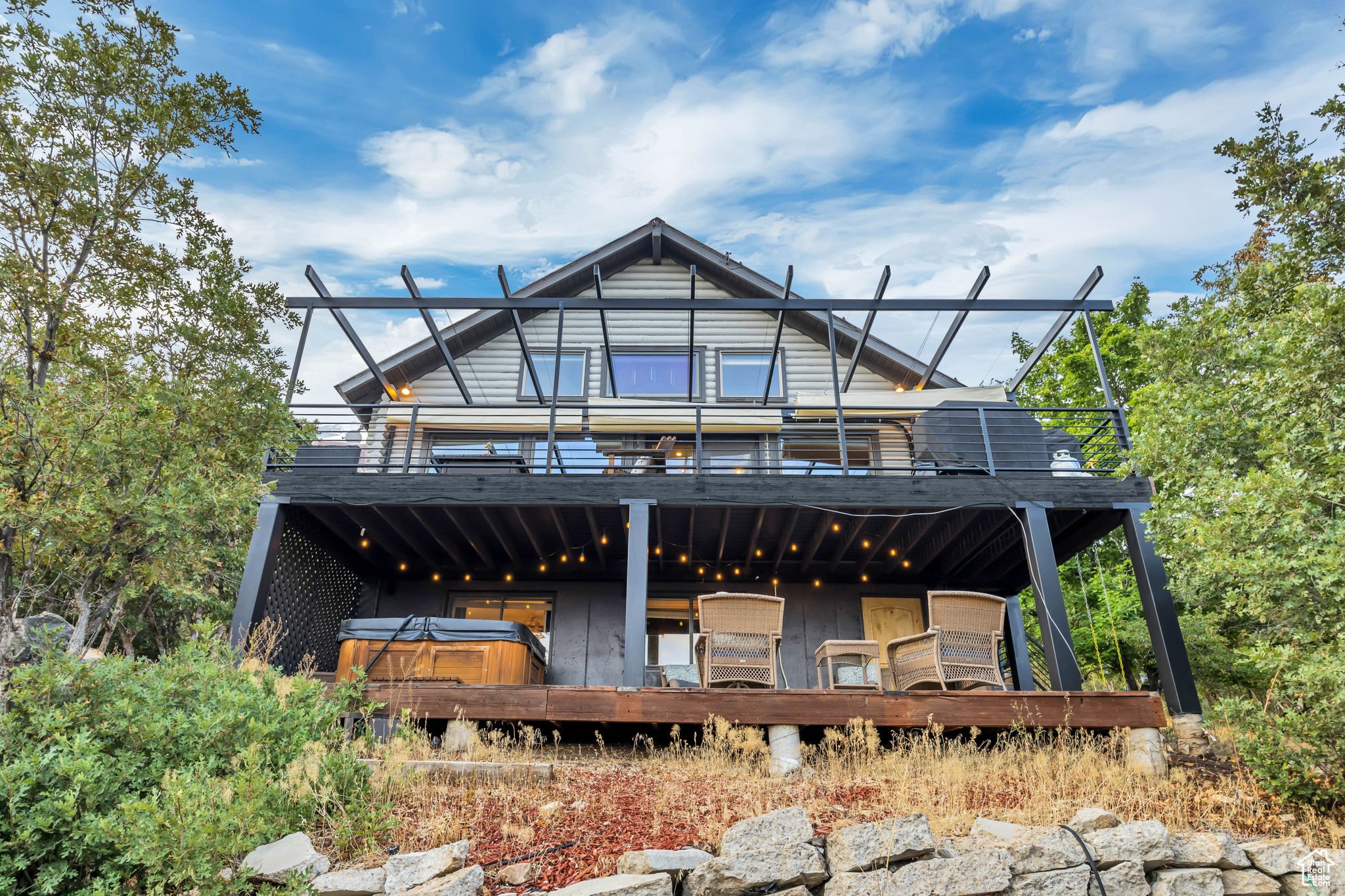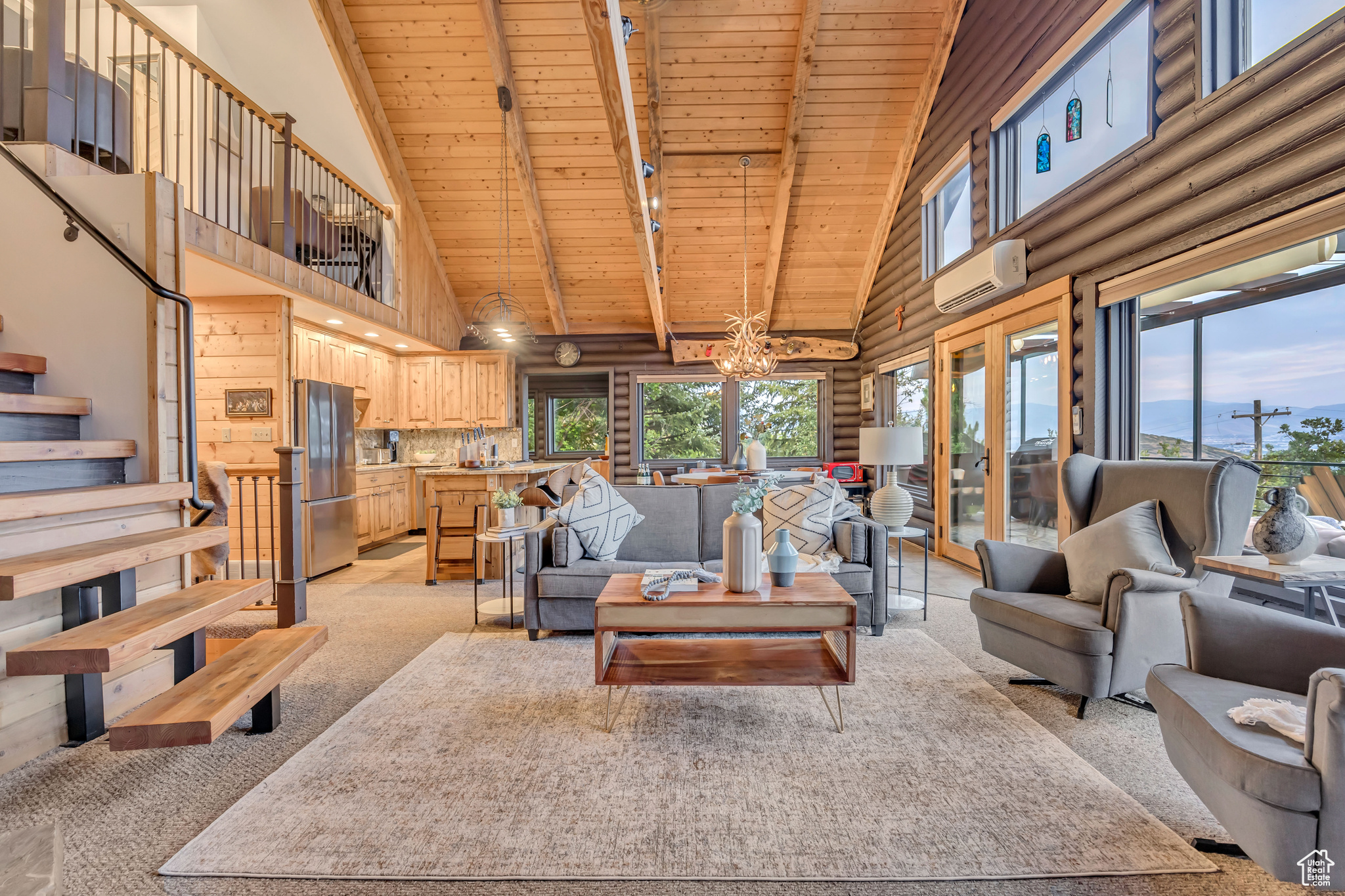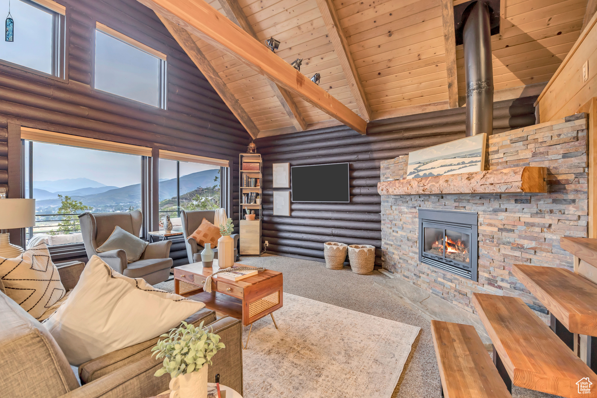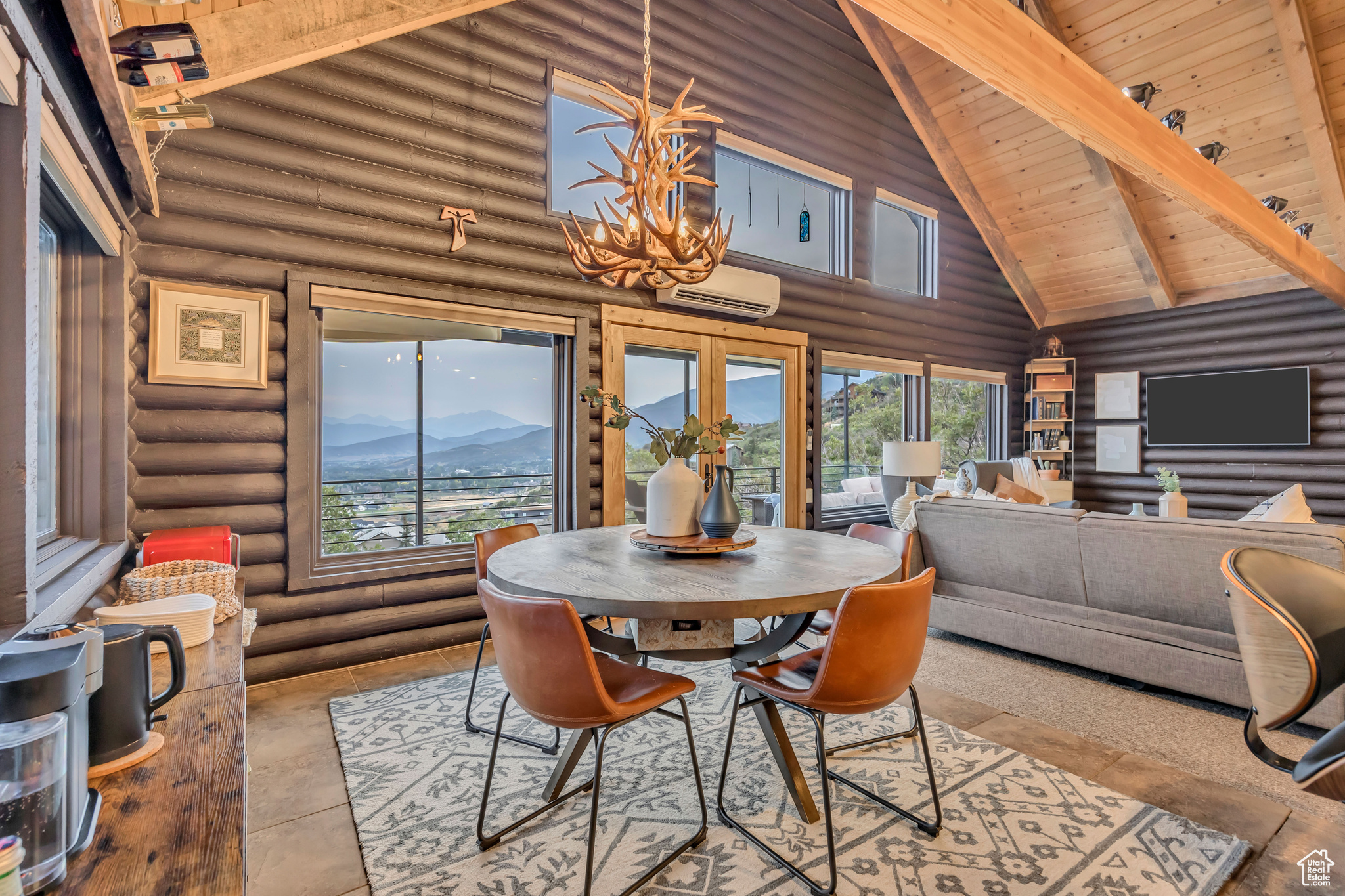 Nestled among native vegetation, this beautifully crafted log-style mountain home offers an effortless connection to nature. Expansive windows and glass doors flood the interior with natural light while capturing breathtaking views of Midway Valley, and the majestic snow-capped peaks beyond. Designed with comfort and flexibility in mind, the thoughtfully planned layout features a main-level master suite, with an open living/dining that opens onto the main level deck with expansive views. The home has been meticulously maintained and showcases exceptional care throughout. Step outside to enjoy the serene mountain setting from the inviting main-level deck, complete with shade awnings-ideal for entertaining or relaxing. Additional features include a two-car garage, a private hot tub, a walk-out lower level, and a charming yard. This is more than a home-it's a peaceful mountain haven in the quaint and desirable community of Interlaken.