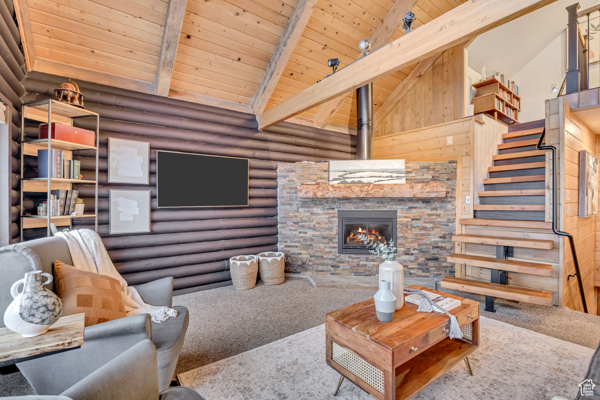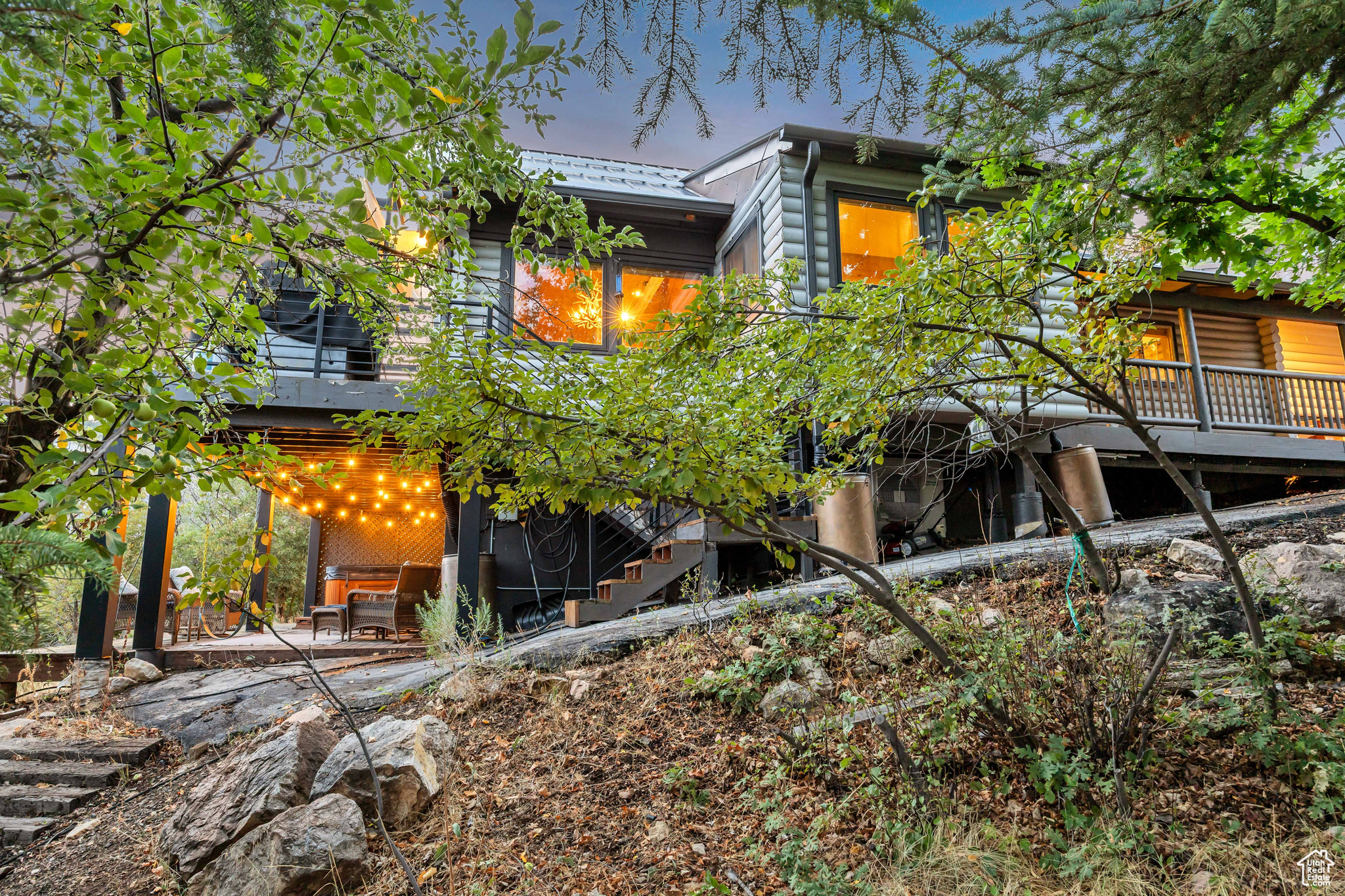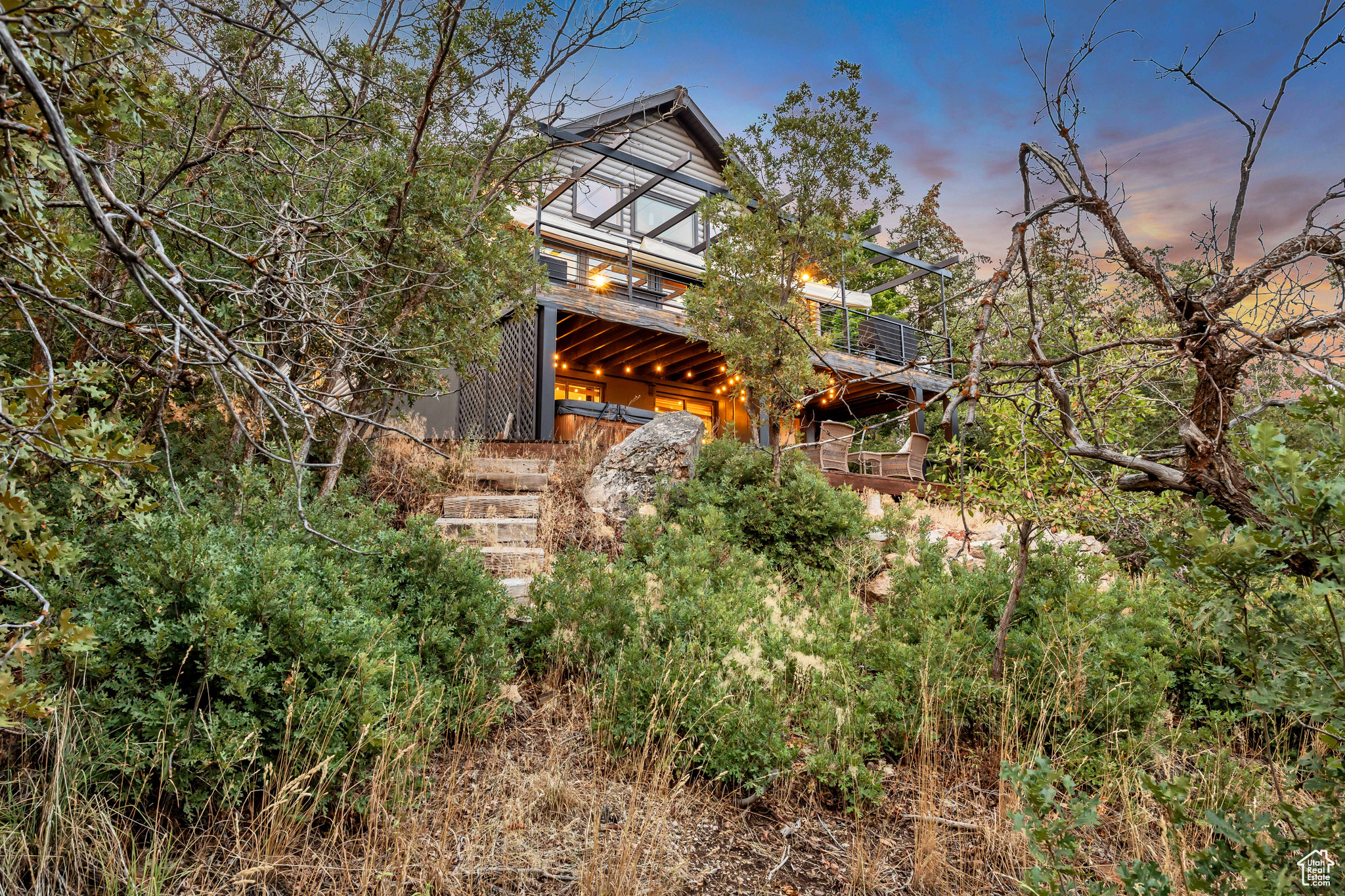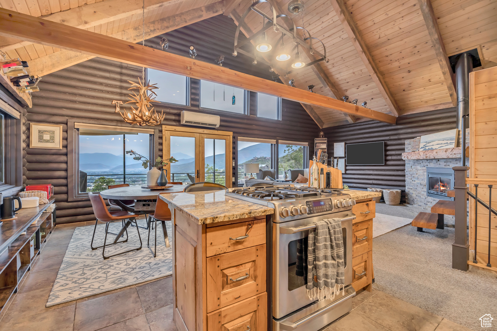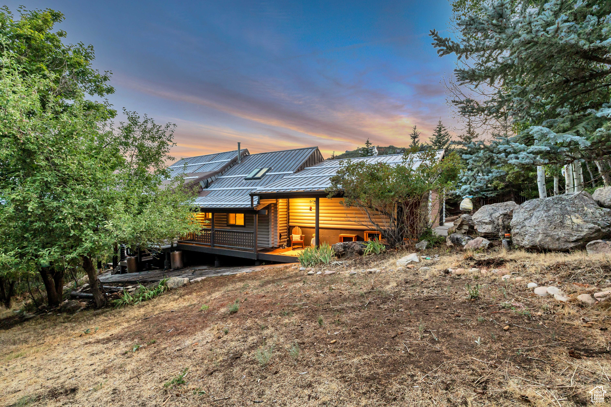 Nestled among native vegetation, this beautifully crafted log-style mountain home offers an effortless connection to nature. Expansive windows and glass doors flood the interior with natural light while capturing breathtaking views of Midway Valley, and the majestic snow-capped peaks beyond. Designed with comfort and flexibility in mind, the thoughtfully planned layout features a main-level master suite, with an open living/dining that opens onto the main level deck with expansive views. The home has been meticulously maintained and showcases exceptional care throughout. Step outside to enjoy the serene mountain setting from the inviting main-level deck, complete with shade awnings-ideal for entertaining or relaxing. Additional features include a two-car garage, a private hot tub, a walk-out lower level, and a charming yard. This is more than a home-it's a peaceful mountain haven in the quaint and desirable community of Interlaken.