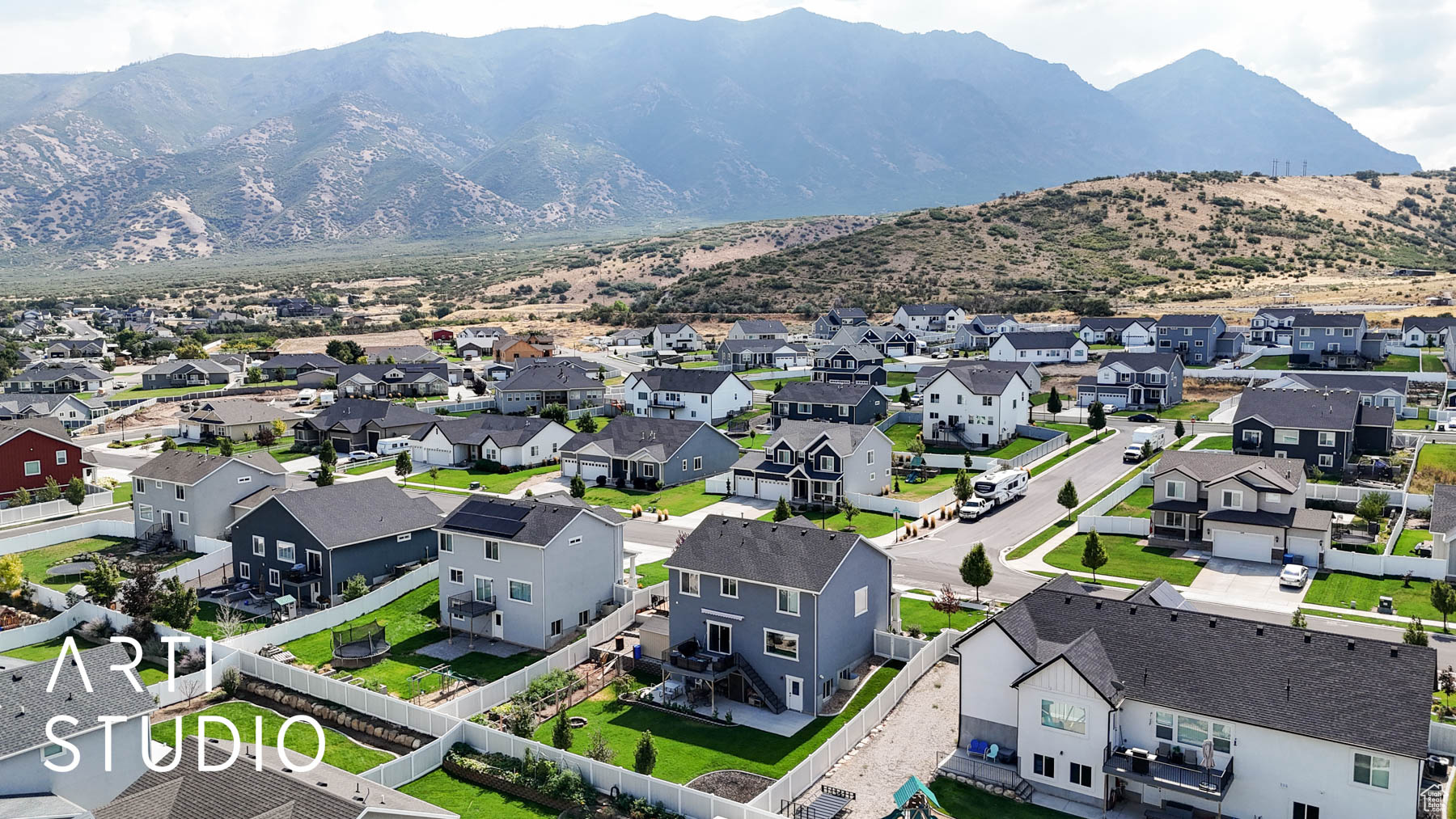 Welcome to this fully finished, well maintained home located within Foothill Village of Santaquin. This 2 story home offers 6 bedrooms, 3.5 bath with space for everyone and everything. The finished basement includes it's own kitchen, laundry hookups, and private entrance. Enjoy mountain views from the porch and valley views from the deck. Close to Santaquin Canyon and nearby orchards. This property also features a 3 car garage and extra large driveway/RV parking. This home combines space and functionality with beautiful surroundings. Square footage figures are provided as a courtesy estimate only and were obtained from county records. Buyer is advised to obtain an independent measurement.