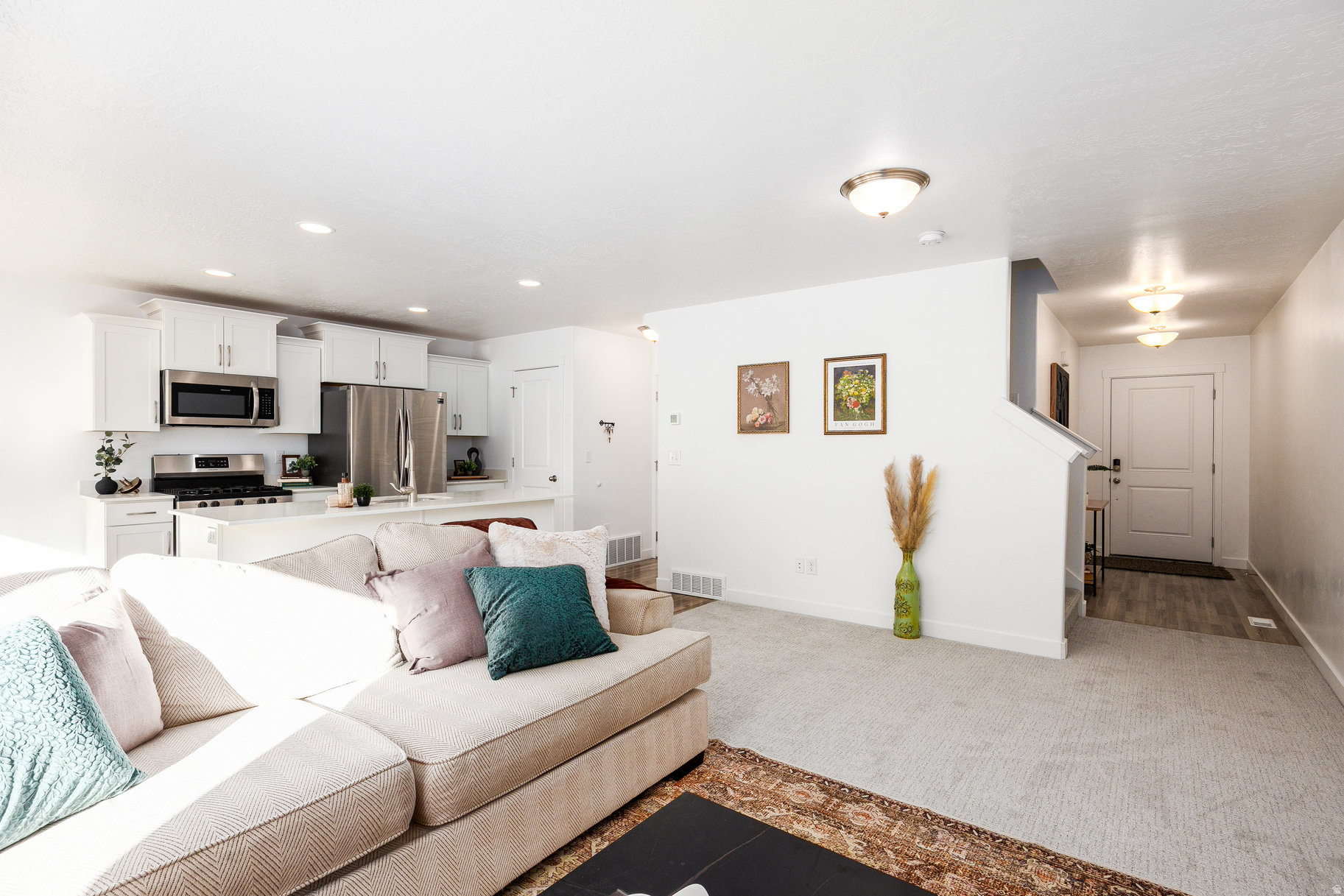 Vacant and easy to show! This stunning, fully finished 4-bedroom, 3-bath townhouse offers 2,252 sq ft of living space. Recently updated with brand-new carpet and professionally cleaned, it's completely move-in ready. Features include a finished basement, a spacious 2-car garage, and a private fenced yard with low-maintenance xeriscaping. Ideally located just off Mountain View Corridor, with quick access to shopping, dining, parks, and entertainment. Don't miss the chance to make this beautiful home yours!
