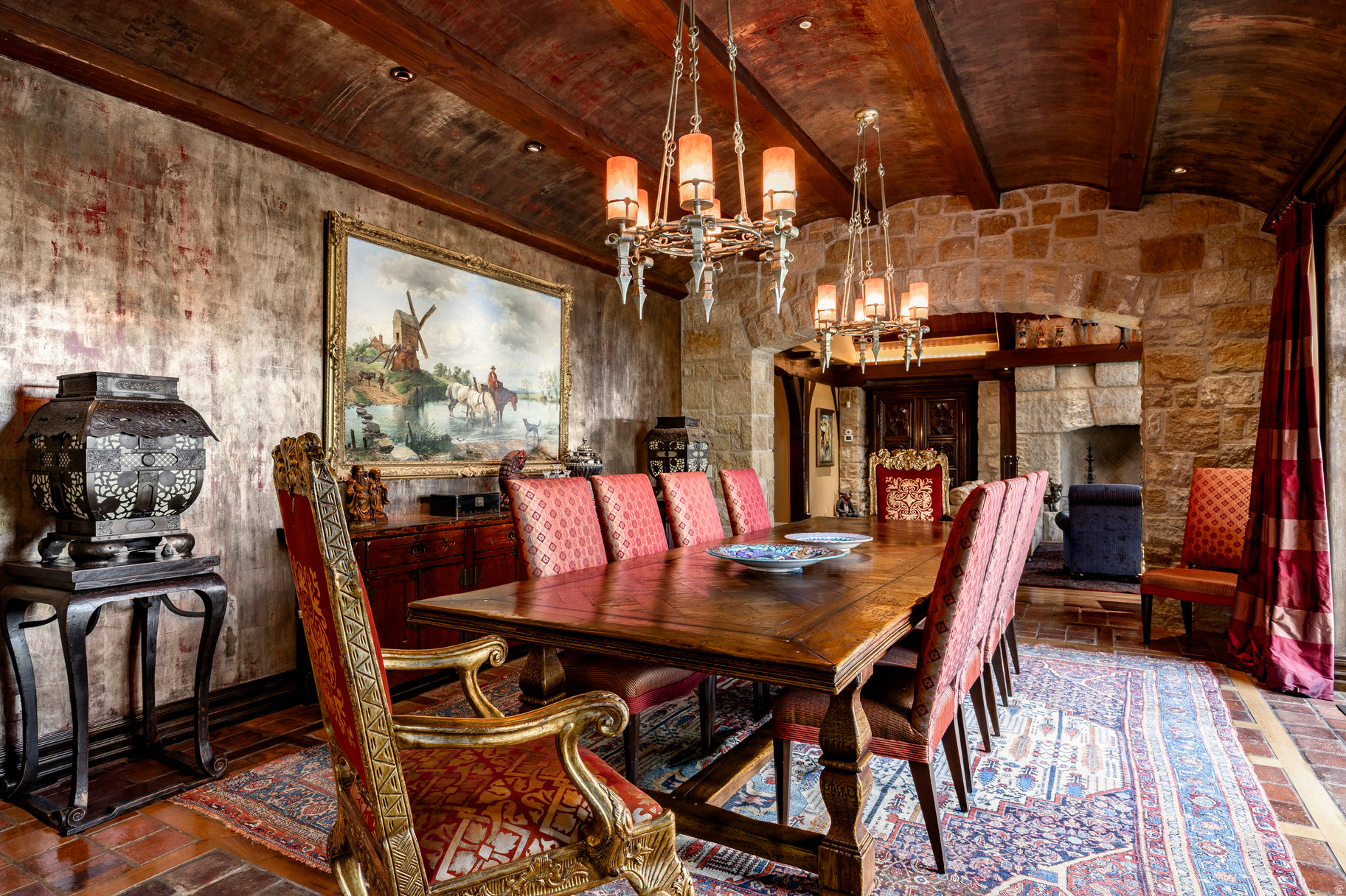 The Bastion, a master class in refined alpine living. This extraordinary ski-in/ski-out estate is located within the ultra-private, gated community of The Colony at White Pine Canyon. Set on 10+ private acres at a desirable lower elevation of 7,600 feet, sheltered from the wind and conveniently sited just two and a half minutes from the guarded entrance gate, this esteemed property offers direct, gravity-fed ski access to/from Harmony ski run, proximity to world-class mountain biking on Park City's Mid-Mountain Trail, sweeping panoramic views, and coveted year-round livability. This estate offers an exceptional sense of arrival. A wide, split-entry driveway with porte-cochre and spacious, heated auto court welcomes visitors. The property's placement within The Colony ensures rare peace and privacy; the home is set back an average of 1,500 feet from the main road, away from construction noise and traffic. The exterior is built for beauty and longevity, with low-maintenance, curated Nebraska and Oklahoma limestones, a Vermont green slate roof and mature, irrigated landscaping enhanced by subtle landscape lighting. This home is an architectural masterpiece, blending stately European elegance with rustic Western character. Rich finishes and materials sourced from around the world lend a sense of global sophistication, while Great Salt Lake-cured timbers, vaulted stone archways, and custom millwork ground the home's design in authentic mountain living. The interiors are richly layered with curated intention and artisan details speak to the home's refinement and comfort. Every detail of the interior design reflects thoughtful craftsmanship, from soaring timber-beamed ceilings and hand-laid stone archways to custom millwork and richly layered textures. This residence offers not only architectural excellence but also a rare harmony of comfort, beauty and character-ideal for those who appreciate artful living in a mountain setting.