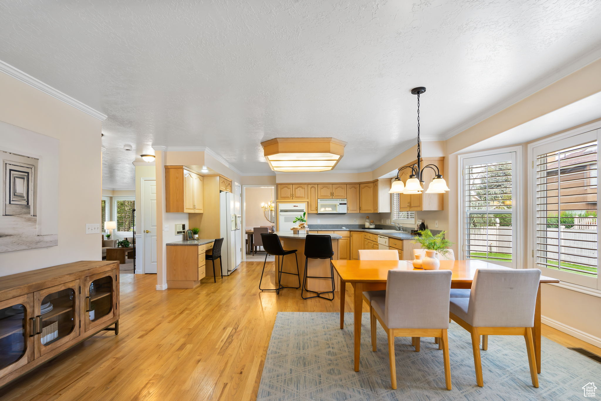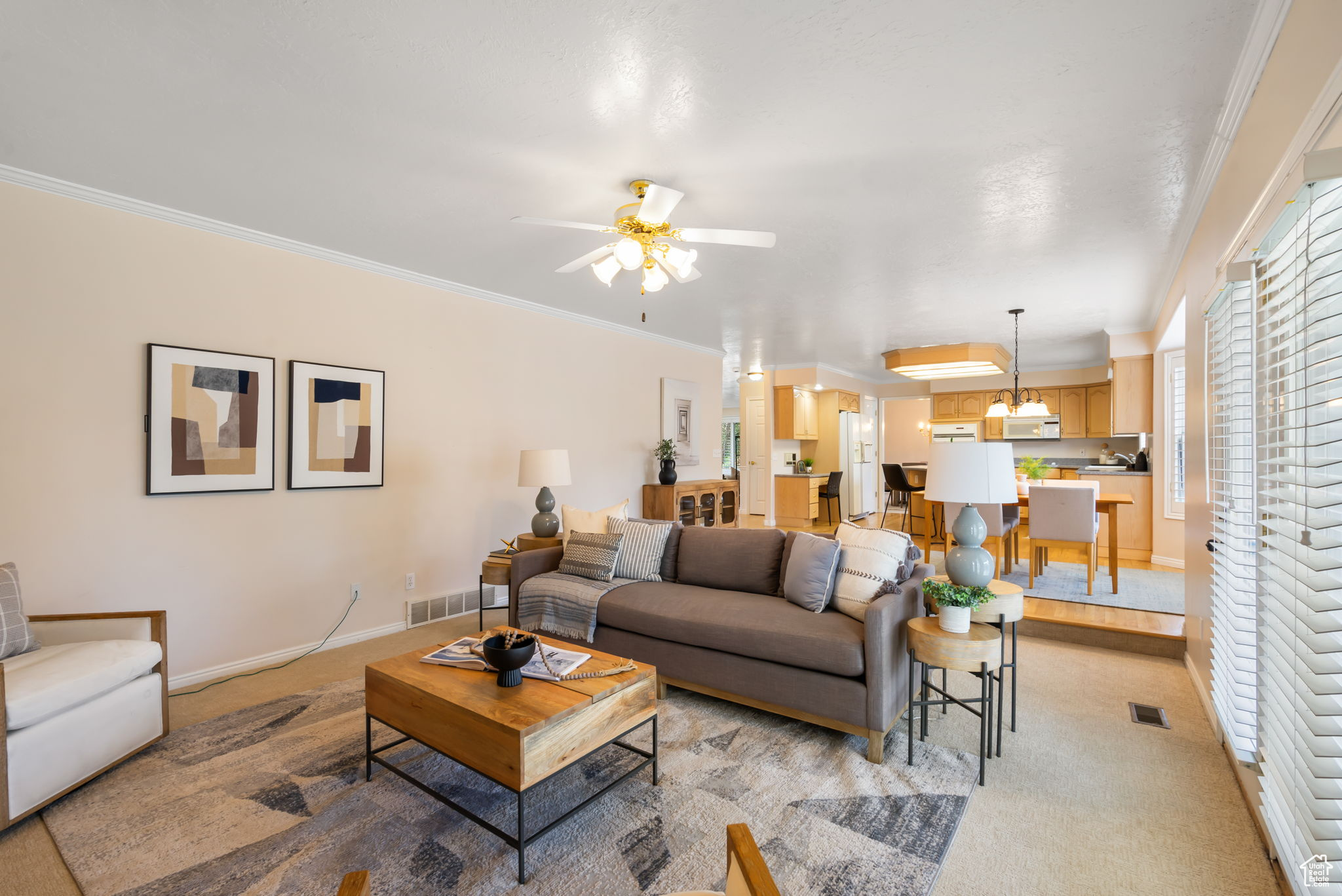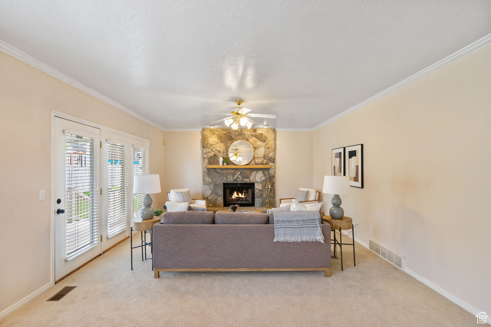 This well-cared-for, single-owner home offers quick access to shopping, restaurants, parks, & nearby canyons. Inside, quality finishes & brand-new carpet throughout make it move-in ready.The fantastic floor plan features a spacious primary suite with a private deck, large bathroom, & walk-in closet, along with three additional bedrooms & a generous upstairs laundry room. The heart of the home is the expansive kitchen, dining, & family room-complete with a cozy fireplace and access to a covered deck for year-round enjoyment. A formal dining room & front living room provide the perfect spaces for hosting holidays and gatherings in style. The finished basement adds more versatility with an additional bedroom, 3/4 bath, office, bonus room (ideal for a game room, workout space, or homework area), plus a large family room with its own fireplace. Don't miss seeing this well priced, beautiful 2 Story in a prime Sandy location!