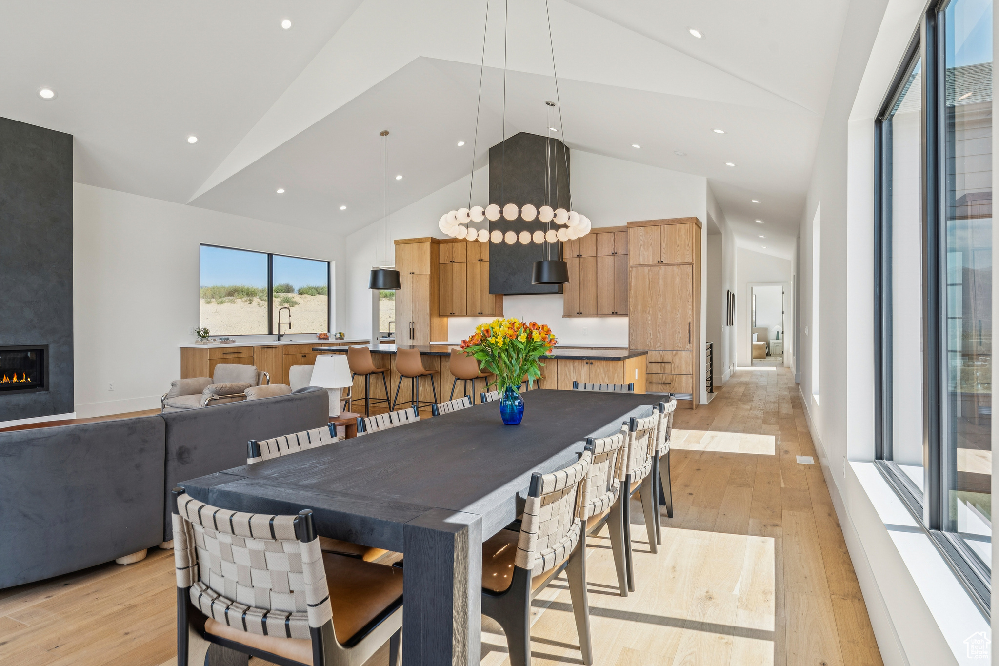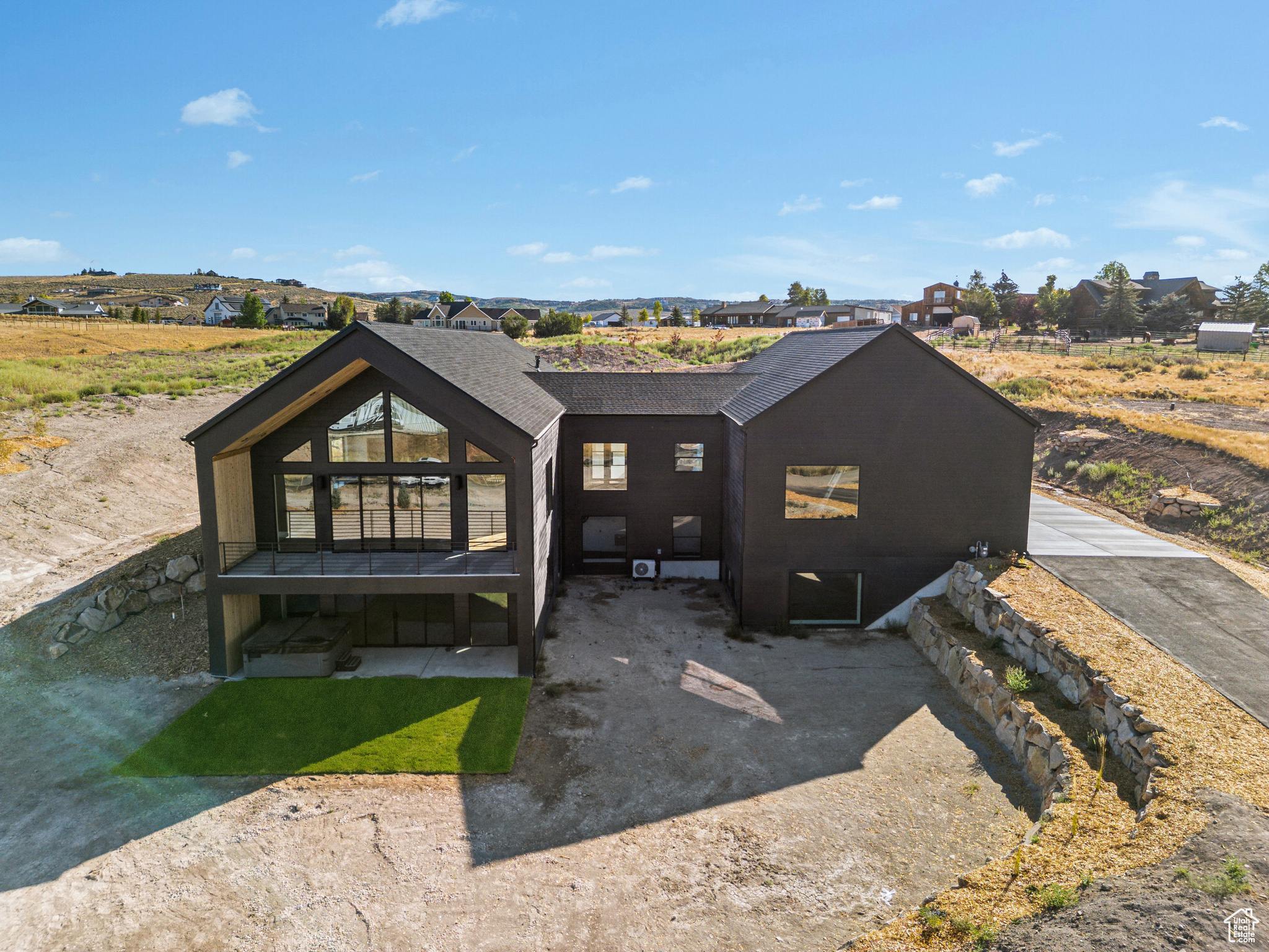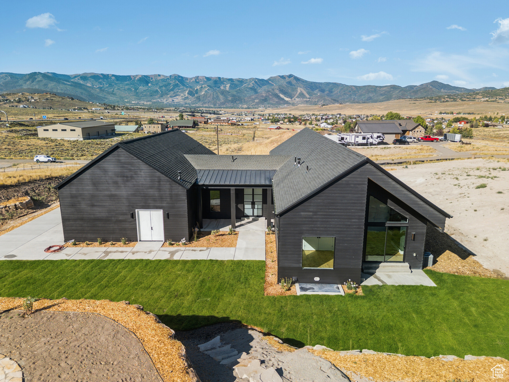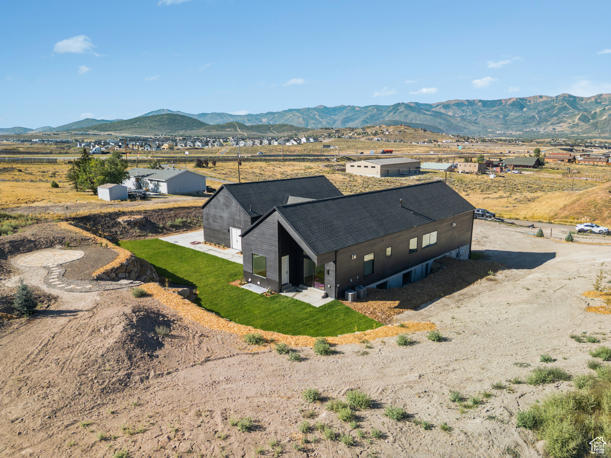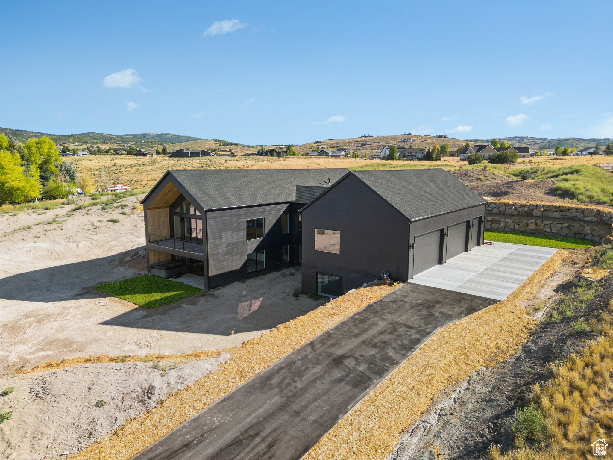 From the sleek design to the extraordinary amenities, this property is more than a home - it's a lifestyle. Designed by renowned architect Brian Hebdonu, this brand-new 7,336sq ft Scandinavian-inspired estate redefines mountain luxury. Set on 3 private acres, the property has been thoughtfully landscaped to embrace natural mountain beauty while ensuring privacy. Beyond the possibility of a second structure, the property is ideal for mountain biking, gardening, or equestrian pursuits. A stunning stone landing above provides a private dining retreat, perfectly framed by mountain views. The home's design seamlessly blends modern sophistication with comfort. Expansive living spaces flow outside to a deck off the living room, offering a natural extension for indoor-outdoor living. With natural light flowing throughout the house at all times of the day, this property really lights up. Inside, the home features 5 bedrooms, including four king beds and a bunk room, along with 4 bathrooms and 2 powder baths. A private office and versatile flex space provide options for a wine cellar, gun safe, or additional storage. Every lifestyle amenity has been curated: a state-of-the-art theater with a 120'' screen and Dolby surround sound, in-home gym, sauna and steam shower, a wet bar for entertaining, a pickleball/sports court, and a hot tub under the stars, creating a true retreat at home. The property also boasts extraordinary functionality: two laundry areas, storage for days, and an oversized 5-car garage (1,729 sq ft) with 672 sq ft of usable space above. Thoughtfully furnished with West Elm furniture, this turnkey residence is move-in ready.