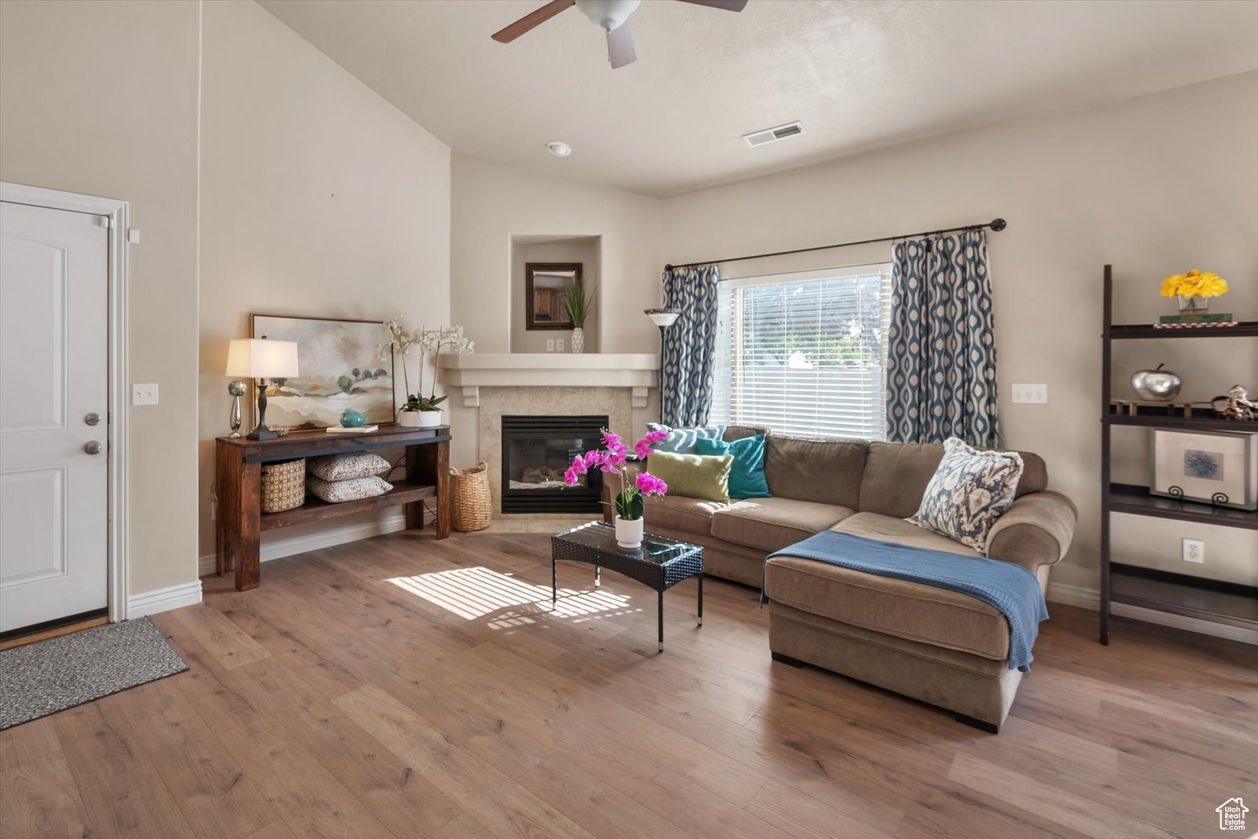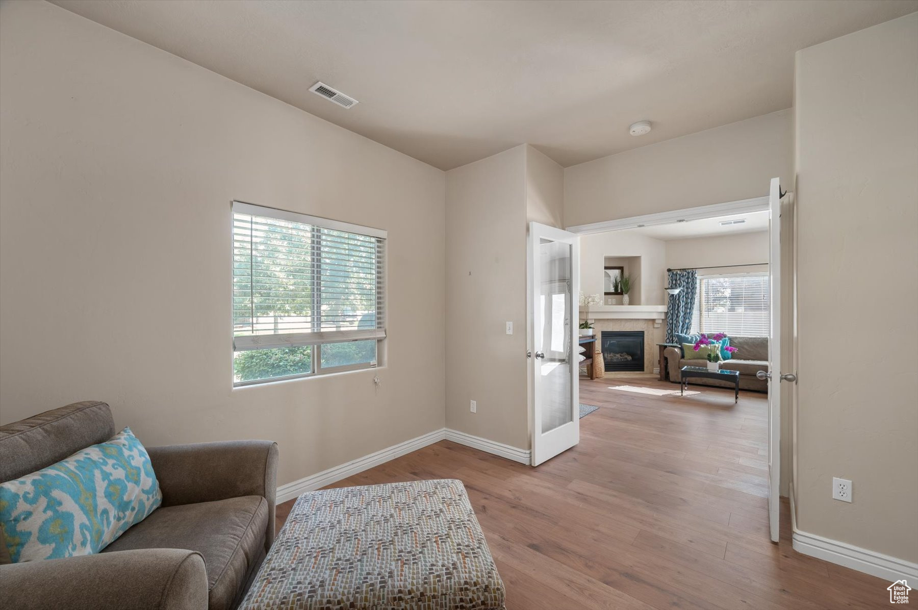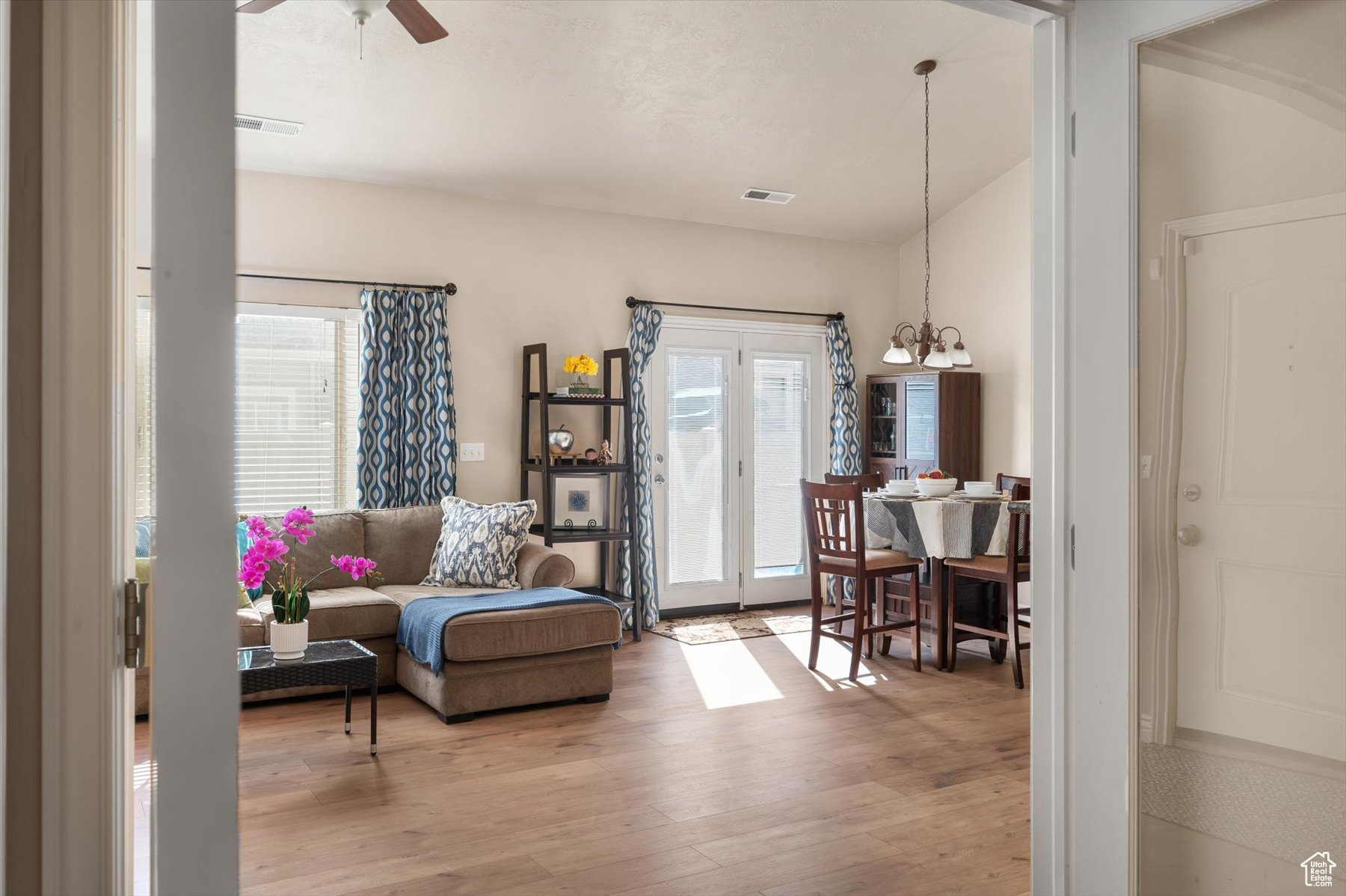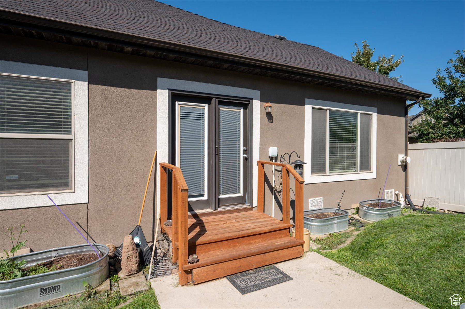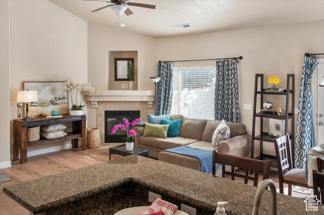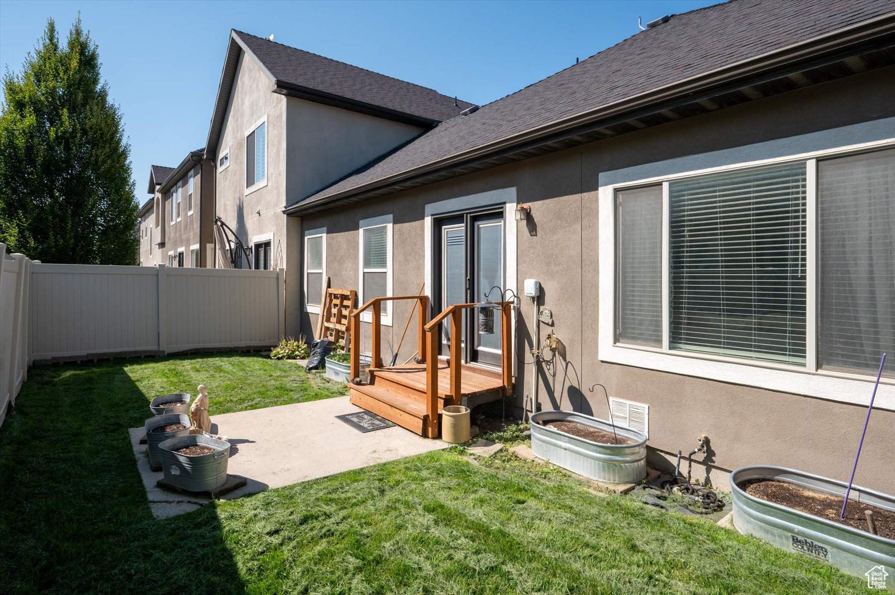 Rarely available one-level living, end unit in desirable Valentine Estates. This unit has the feel of a single family home without the hassle of yard maintenance or snow removal. Kick back and enjoy easy living in the spacious great room or private backyard. Soaring vaults offer an open and light ambiance while the intimacy of a cozy fireplace is perfect for those cold winter evenings. The floor plan provides a variety of options for entertaining or peaceful seclusion. This single-level unit has new flooring throughout, granite counters, stainless steel appliances, a breakfast bar and semi-formal dining. From the great room, step out the French doors to the patio and fully fenced backyard perfect for viewing sunrises over the eastern Wasatch mountains or chilling in the shade on summer evenings. The primary suite is vaulted and the primary bath has a lovely tiled walk-in shower and a walk-in closet to accommodate all of your wardrobe needs. Off the main entrance, there is a den/office with glass doors that can double as a bedroom. Another bedroom and the main bath are down the hall. The attached 2-car garage allows direct access into the unit. Valentine Estates amenities include a pool, playground, parks and access to the Legacy Parkway walking paths for biking or taking a leisurely stroll. Located minutes from the on-ramp to the Legacy Parkway or I-15 freeway, the complex is close to shopping, recreation and dining. Heading north, you can be at Station Park and Lagoon in about 10-12 minutes or, if you prefer, head south to the Salt Lake International Airport or downtown Salt Lake City in about the same amount of time. Information provided deemed to be reliable; however, buyers and agents to verify all.
