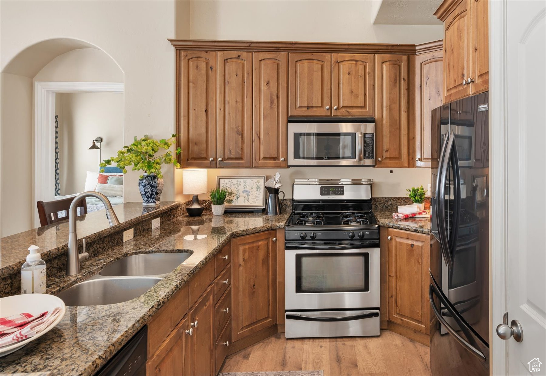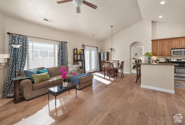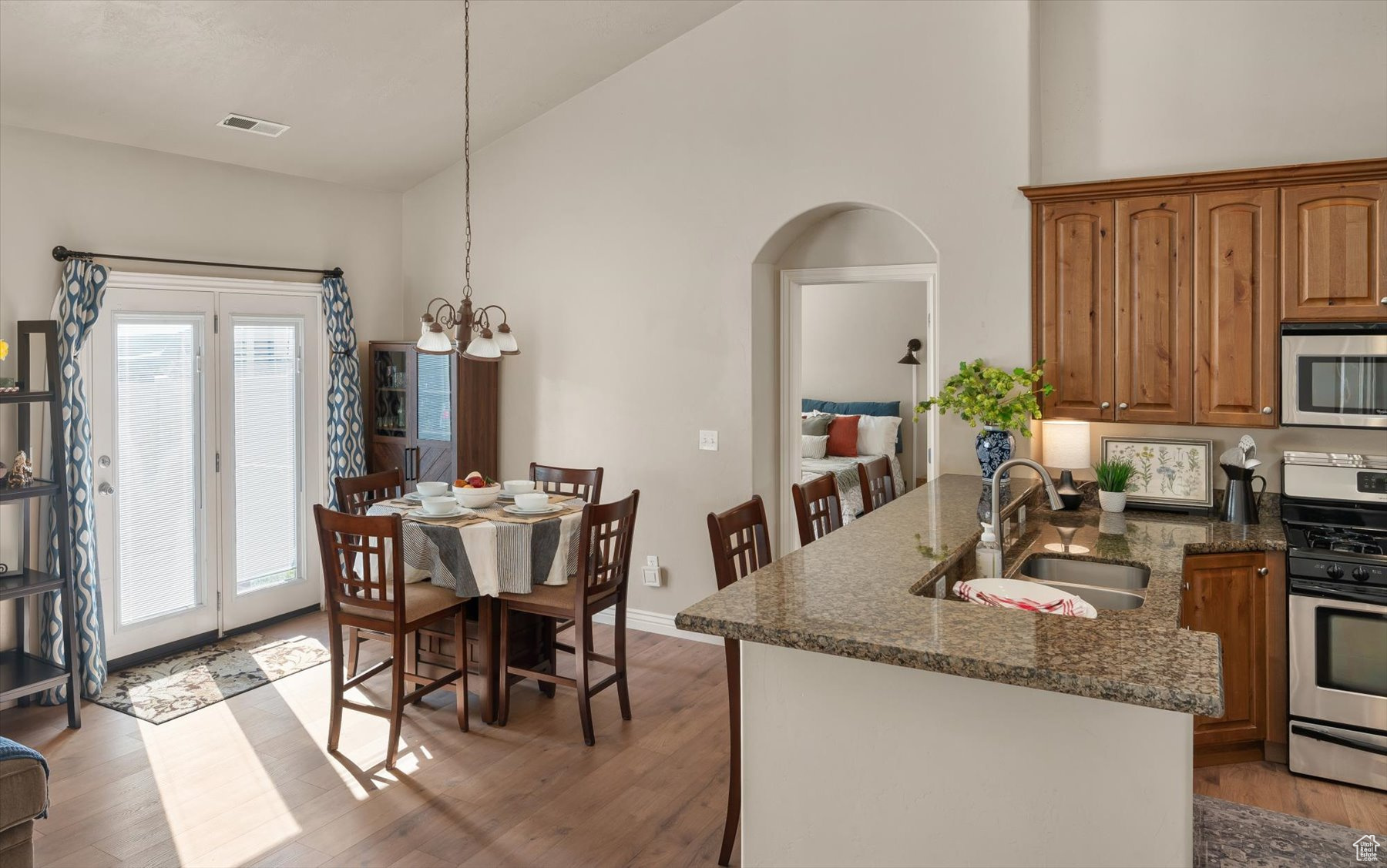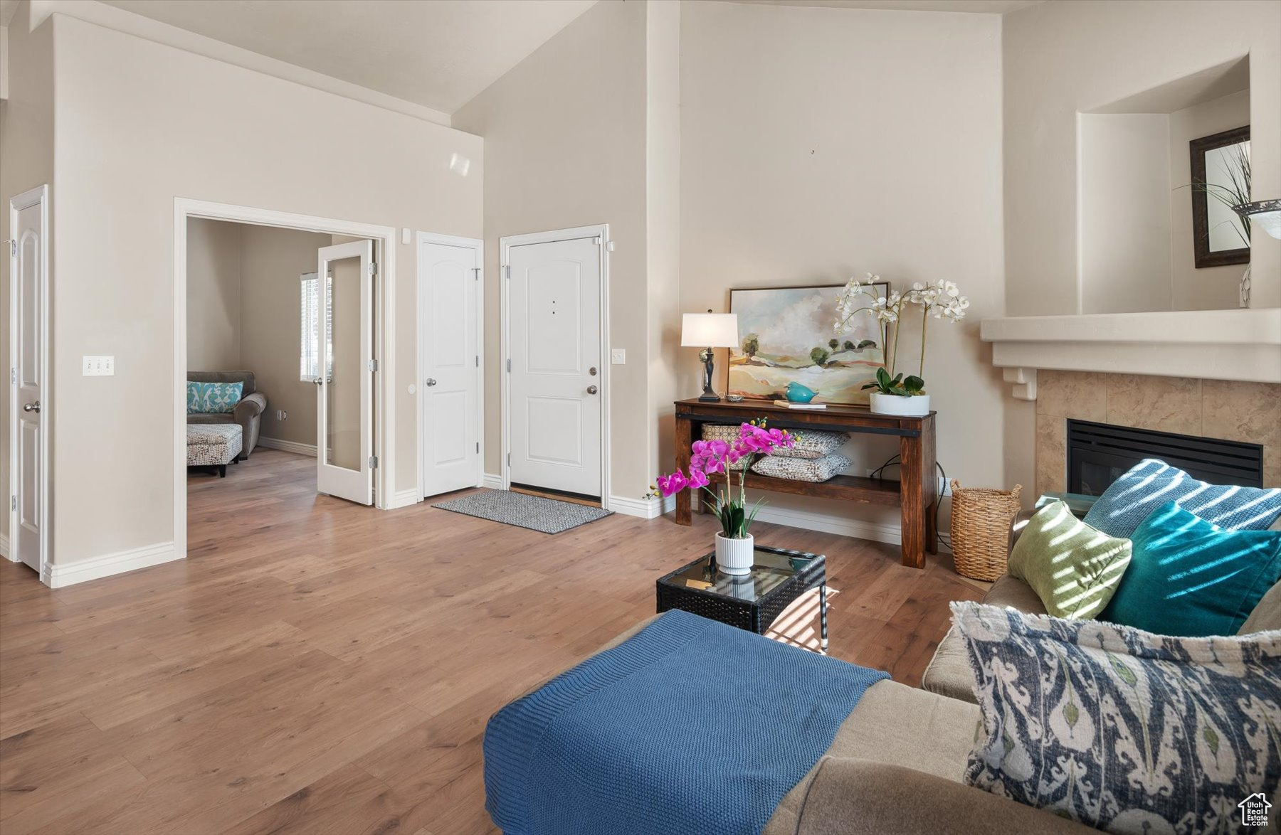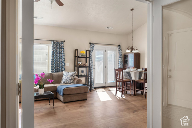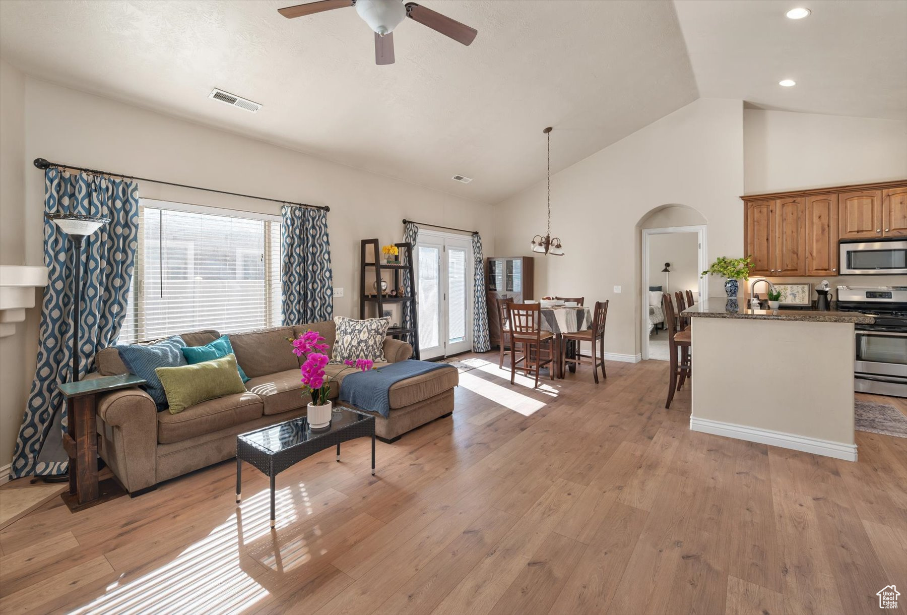 Rarely available one-level living, end unit in desirable Valentine Estates. This unit has the feel of a single family home without the hassle of yard maintenance or snow removal. Kick back and enjoy easy living in the spacious great room or private backyard. Soaring vaults offer an open and light ambiance while the intimacy of a cozy fireplace is perfect for those cold winter evenings. The floor plan provides a variety of options for entertaining or peaceful seclusion. This single-level unit has new flooring throughout, granite counters, stainless steel appliances, a breakfast bar and semi-formal dining. From the great room, step out the French doors to the patio and fully fenced backyard perfect for viewing sunrises over the eastern Wasatch mountains or chilling in the shade on summer evenings. The primary suite is vaulted and the primary bath has a lovely tiled walk-in shower and a walk-in closet to accommodate all of your wardrobe needs. Off the main entrance, there is a den/office with glass doors that can double as a bedroom. Another bedroom and the main bath are down the hall. The attached 2-car garage allows direct access into the unit. Valentine Estates amenities include a pool, playground, parks and access to the Legacy Parkway walking paths for biking or taking a leisurely stroll. Located minutes from the on-ramp to the Legacy Parkway or I-15 freeway, the complex is close to shopping, recreation and dining. Heading north, you can be at Station Park and Lagoon in about 10-12 minutes or, if you prefer, head south to the Salt Lake International Airport or downtown Salt Lake City in about the same amount of time. Information provided deemed to be reliable; however, buyers and agents to verify all.