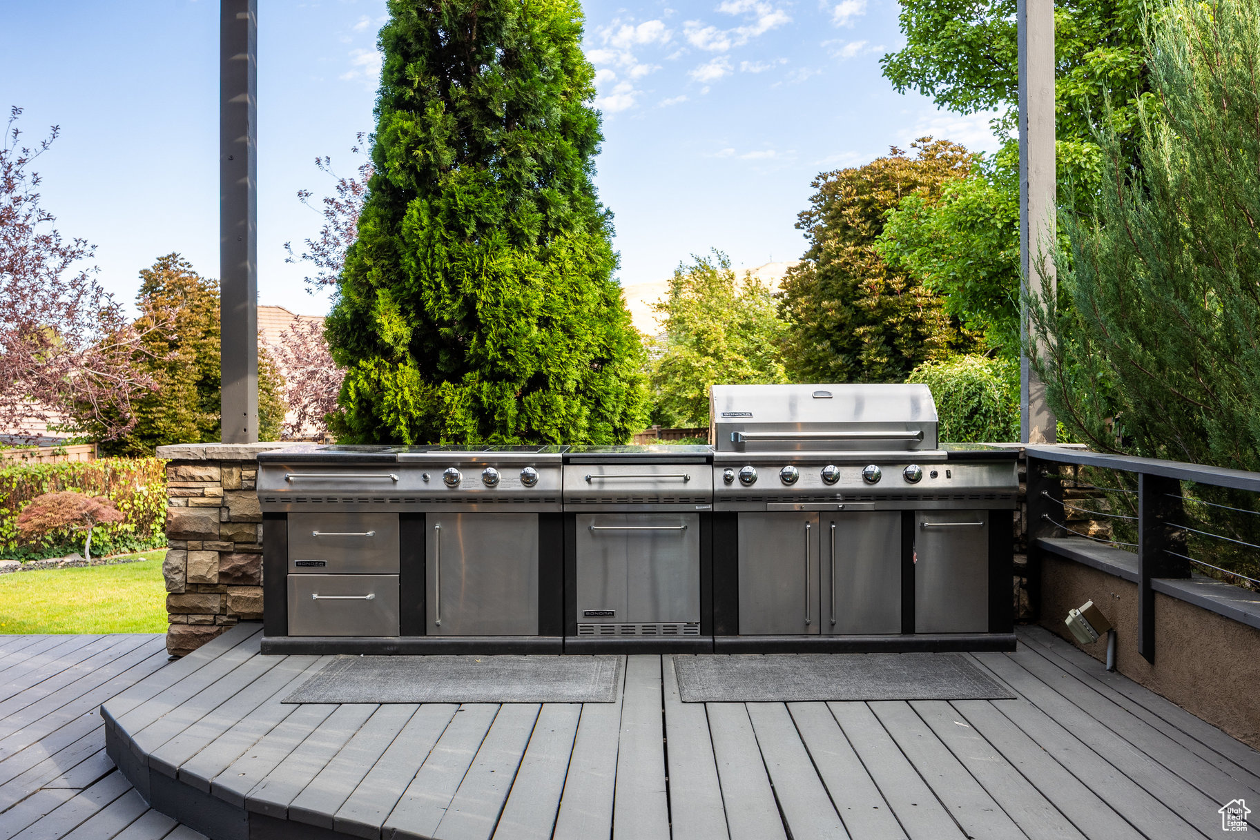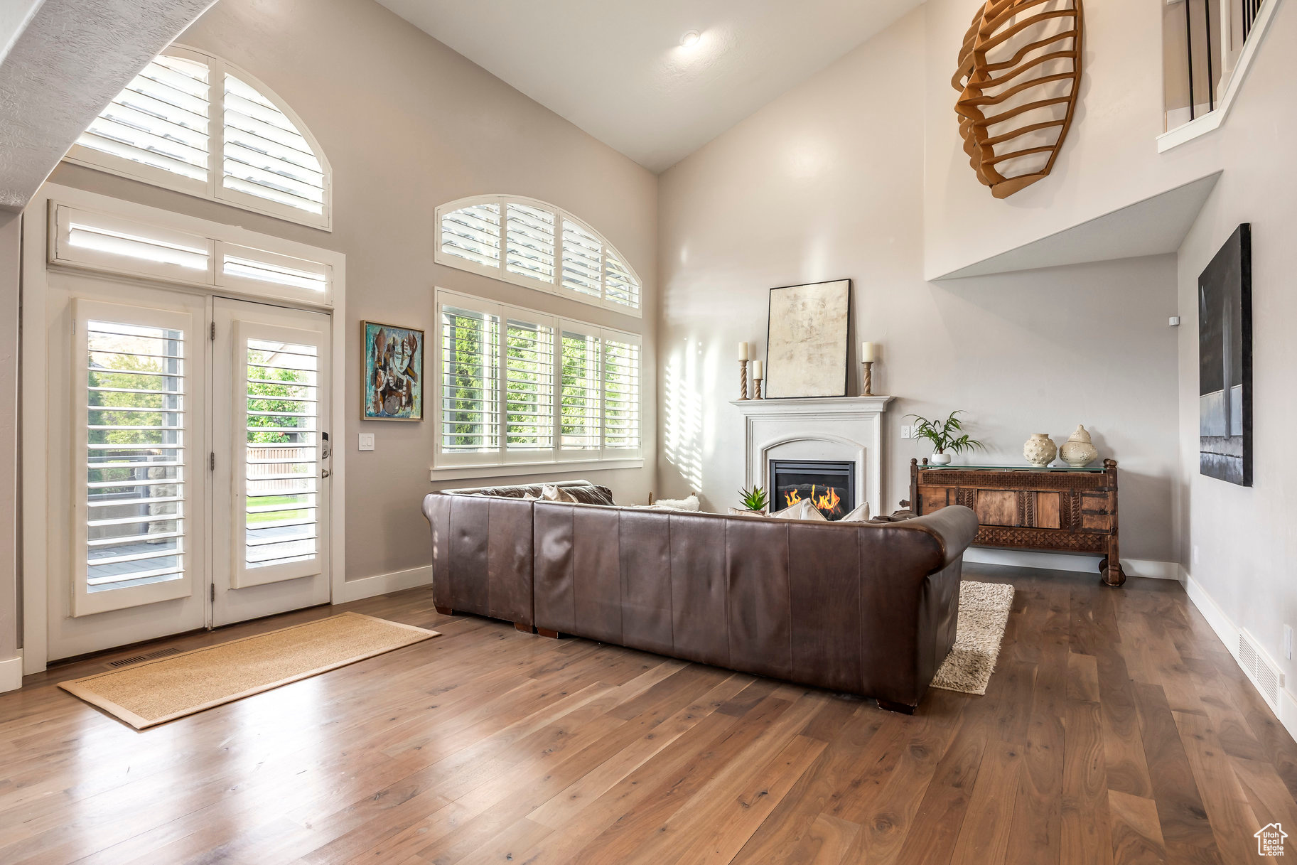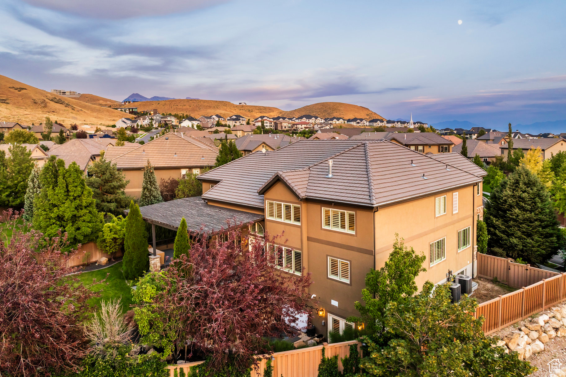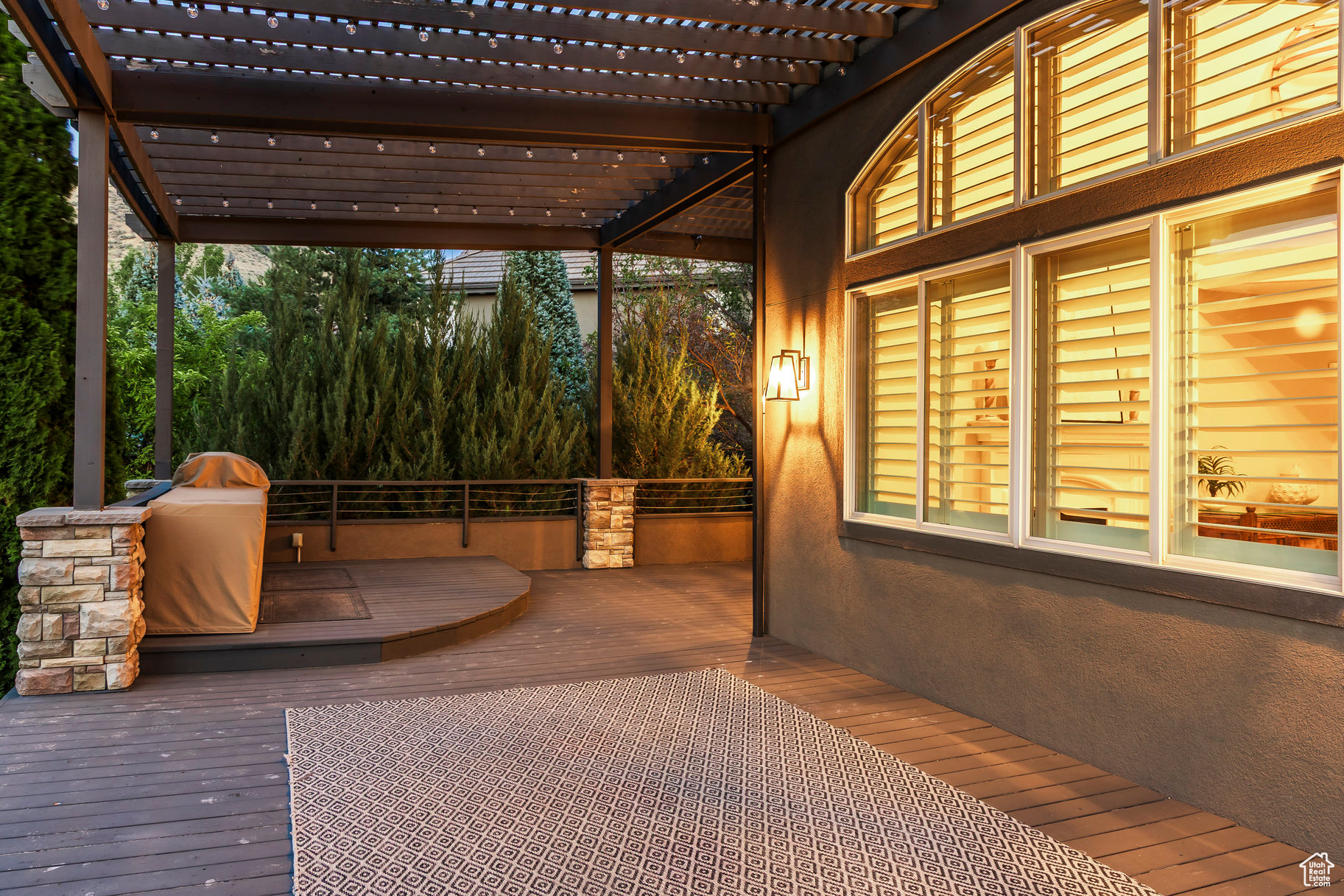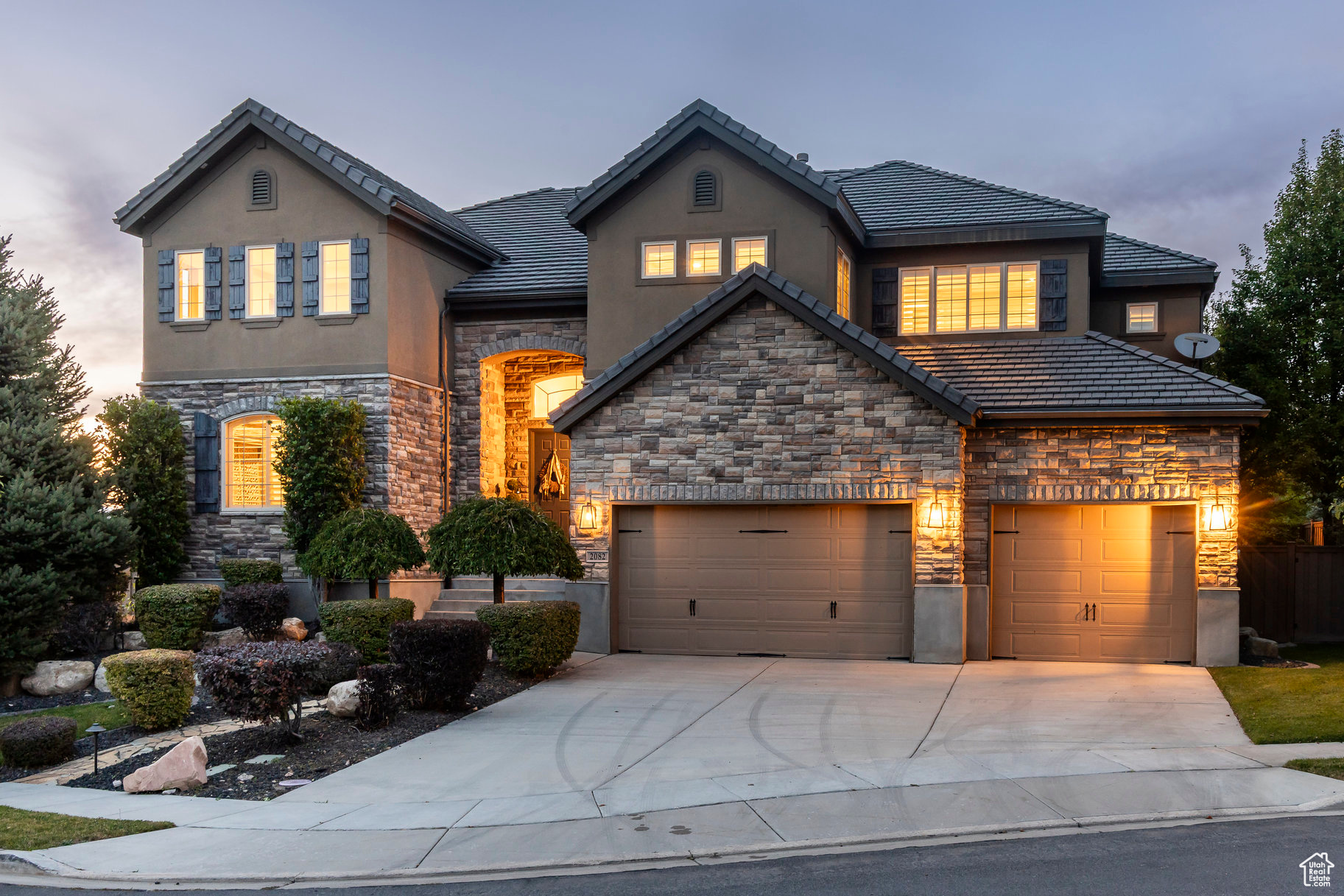 Tucked away in one of Lehi's most desirable neighborhoods, this exceptional residence is one of only four homes in a private cul-de-sac, offering sweeping mountain and valley views along the Traverse Mountain bench. From the moment you step inside, you're welcomed by the warmth of rich Walnut hardwood floors and a soaring double-height foyer that sets the stage for the home's blend of luxury and comfort. The open-concept living space flows seamlessly into a gourmet kitchen featuring Viking stainless steel appliances, double wall ovens, and an oversized granite island with striking iron accents. A custom wood, iron, and frosted-glass barn door conceals the pantry, merging style with function. Downstairs, the home transforms into a true entertainer's retreat. A full second kitchen-also equipped with Viking appliances-anchors the space, complemented by a guest suite, full bath, glass-enclosed steam shower, home gym, and a tiered theater room designed for unforgettable movie nights. Walkout French doors lead to an outdoor sanctuary with a natural stone patio, hot tub, trellis-covered deck, and a fully equipped outdoor kitchen with granite-topped BBQ station-perfect for hosting under the stars. The upper level is devoted to rest and rejuvenation. The primary suite offers a dual-sided fireplace, expansive "his & hers" walk-in closets, and a spa-inspired bathroom with dual vanities, soaking tub, glass shower, and private water closet. A spacious three-car garage completes the property, providing plenty of room for vehicles and outdoor gear. This rare offering combines elegance, comfort, and convenience-all within minutes of Silicon Slopes, shopping, dining, and outdoor recreation.