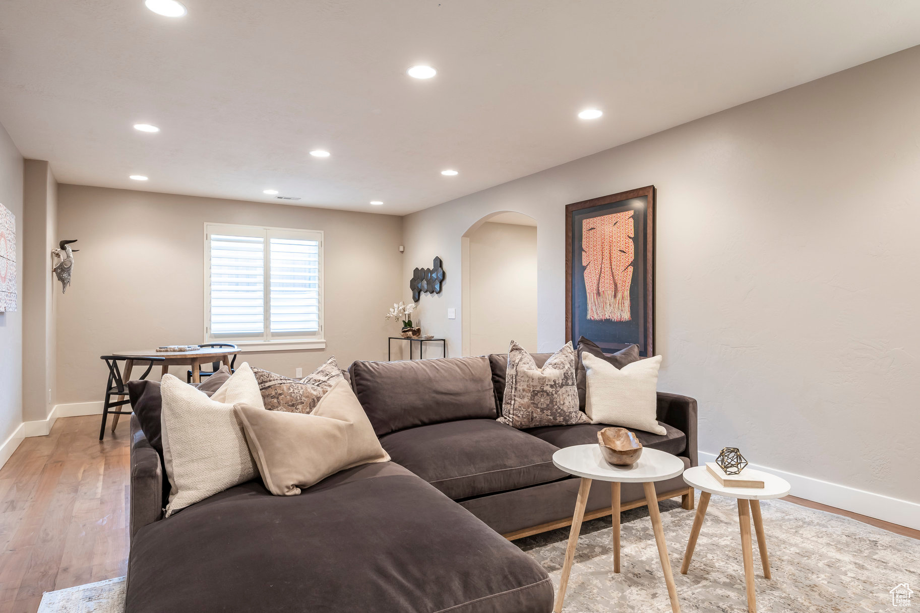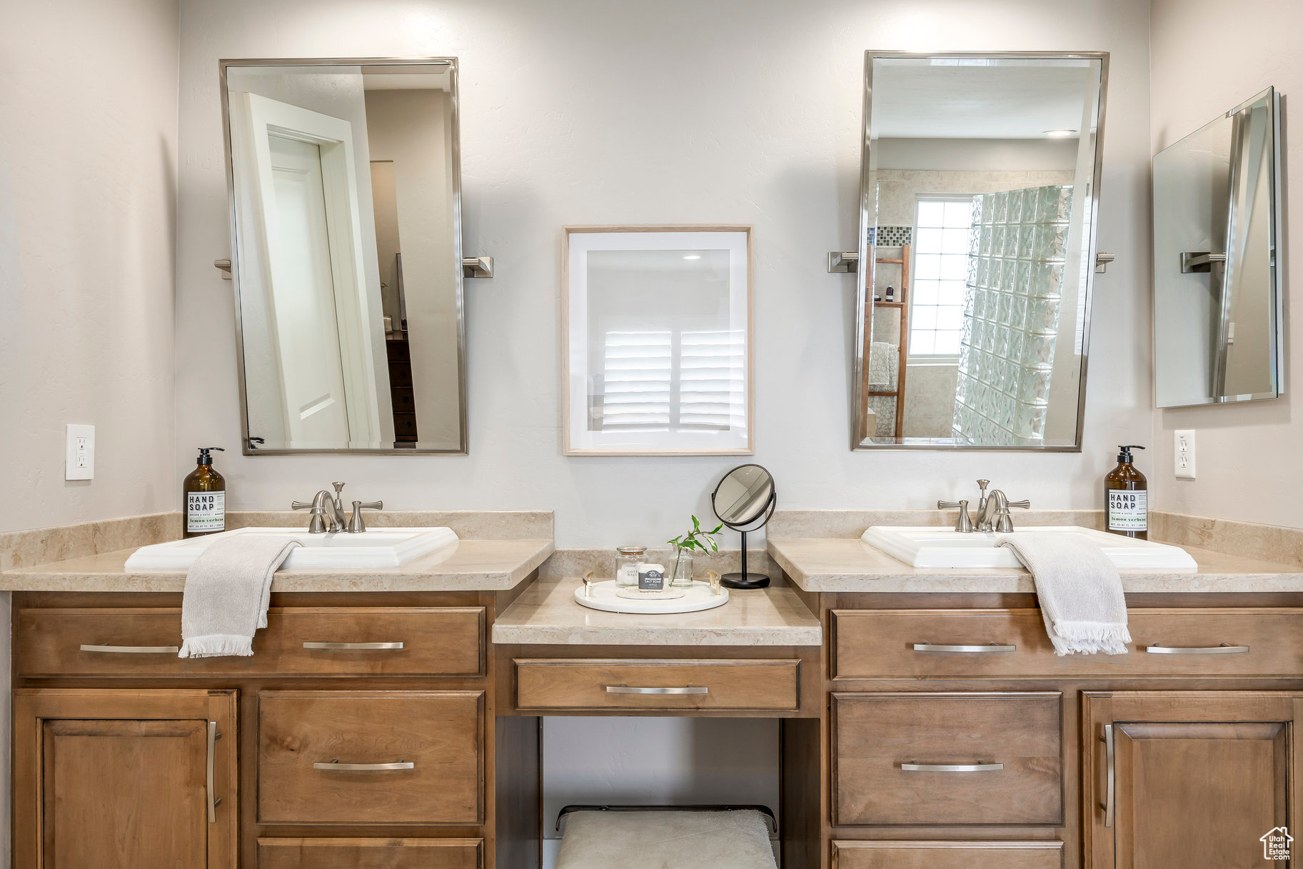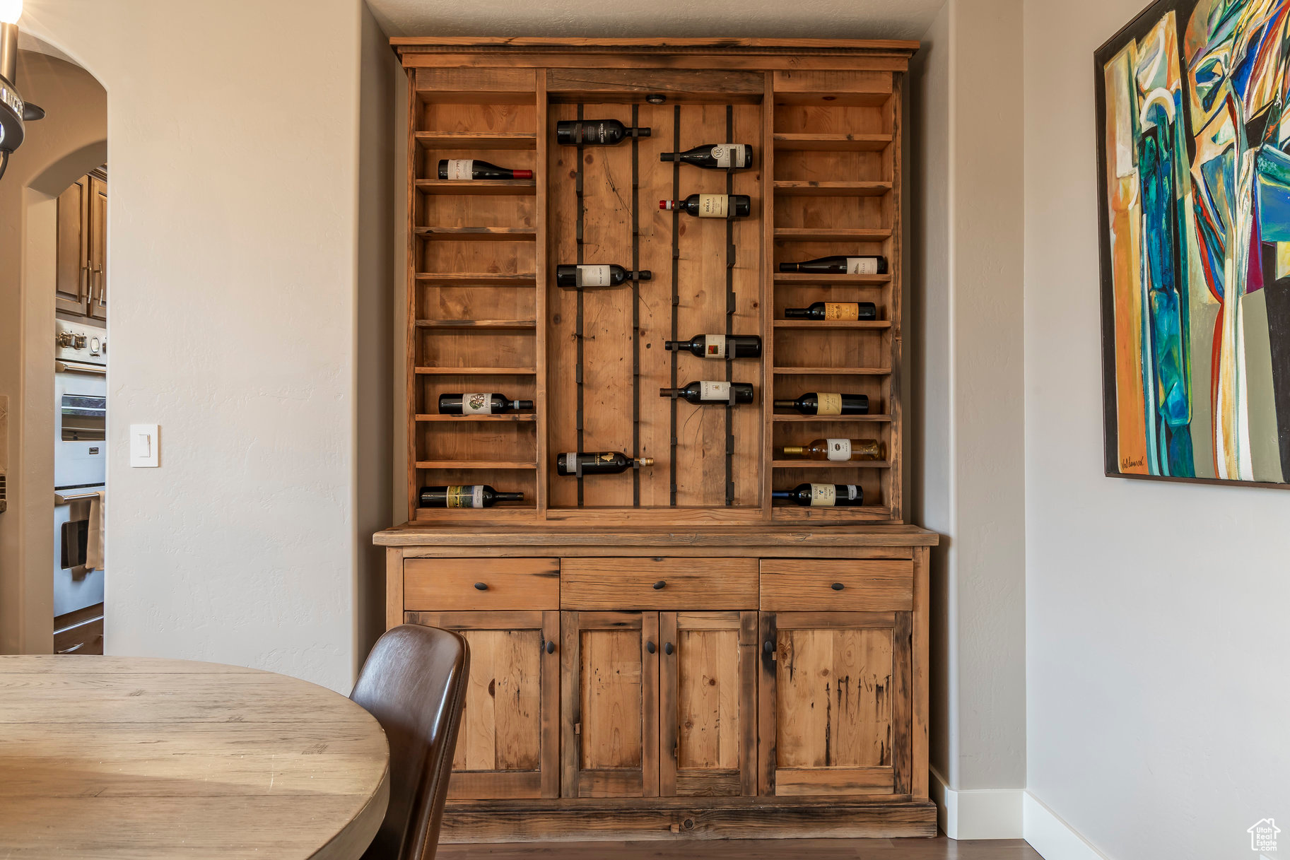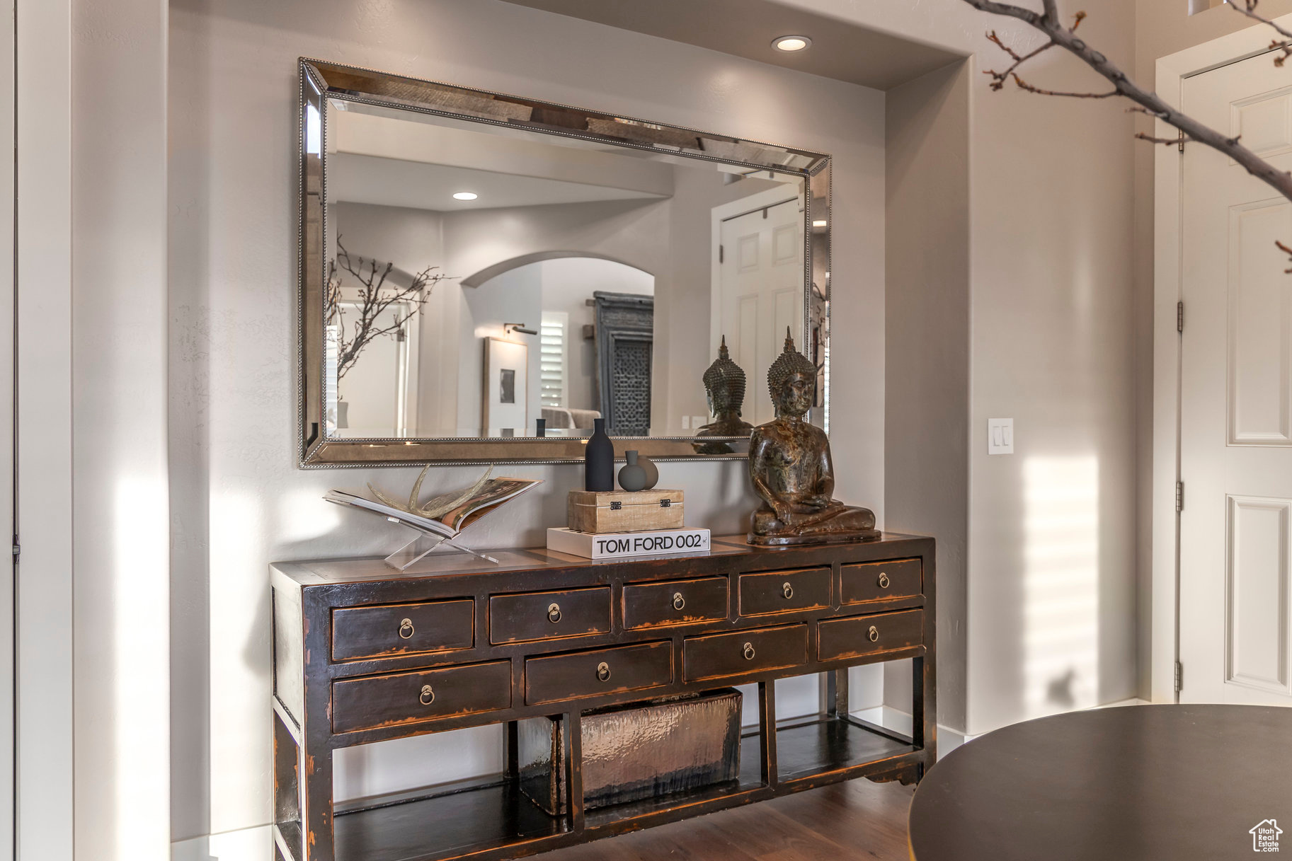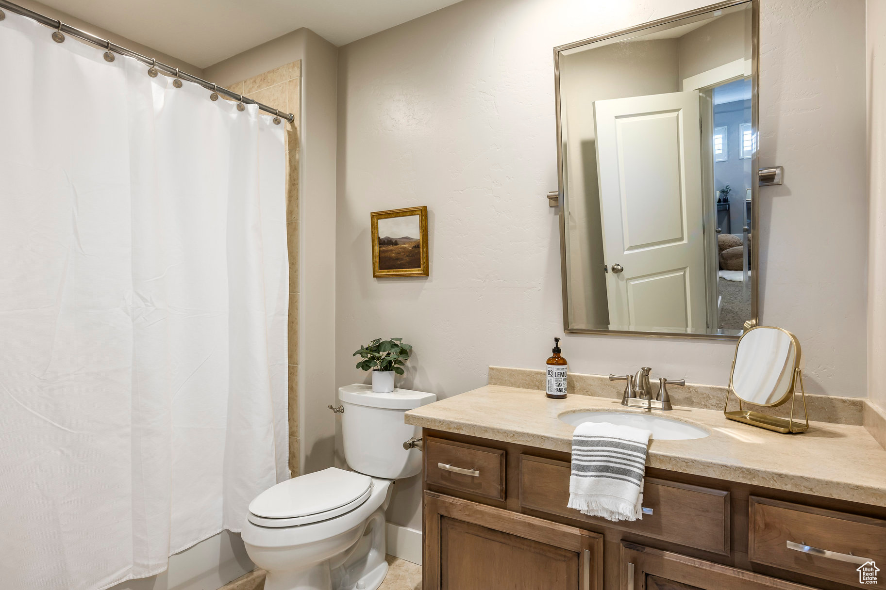 Tucked away in one of Lehi's most desirable neighborhoods, this exceptional residence is one of only four homes in a private cul-de-sac, offering sweeping mountain and valley views along the Traverse Mountain bench. From the moment you step inside, you're welcomed by the warmth of rich Walnut hardwood floors and a soaring double-height foyer that sets the stage for the home's blend of luxury and comfort. The open-concept living space flows seamlessly into a gourmet kitchen featuring Viking stainless steel appliances, double wall ovens, and an oversized granite island with striking iron accents. A custom wood, iron, and frosted-glass barn door conceals the pantry, merging style with function. Downstairs, the home transforms into a true entertainer's retreat. A full second kitchen-also equipped with Viking appliances-anchors the space, complemented by a guest suite, full bath, glass-enclosed steam shower, home gym, and a tiered theater room designed for unforgettable movie nights. Walkout French doors lead to an outdoor sanctuary with a natural stone patio, hot tub, trellis-covered deck, and a fully equipped outdoor kitchen with granite-topped BBQ station-perfect for hosting under the stars. The upper level is devoted to rest and rejuvenation. The primary suite offers a dual-sided fireplace, expansive "his & hers" walk-in closets, and a spa-inspired bathroom with dual vanities, soaking tub, glass shower, and private water closet. A spacious three-car garage completes the property, providing plenty of room for vehicles and outdoor gear. This rare offering combines elegance, comfort, and convenience-all within minutes of Silicon Slopes, shopping, dining, and outdoor recreation.