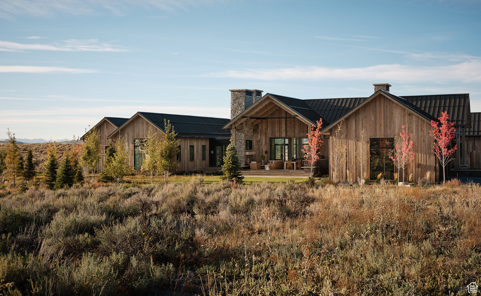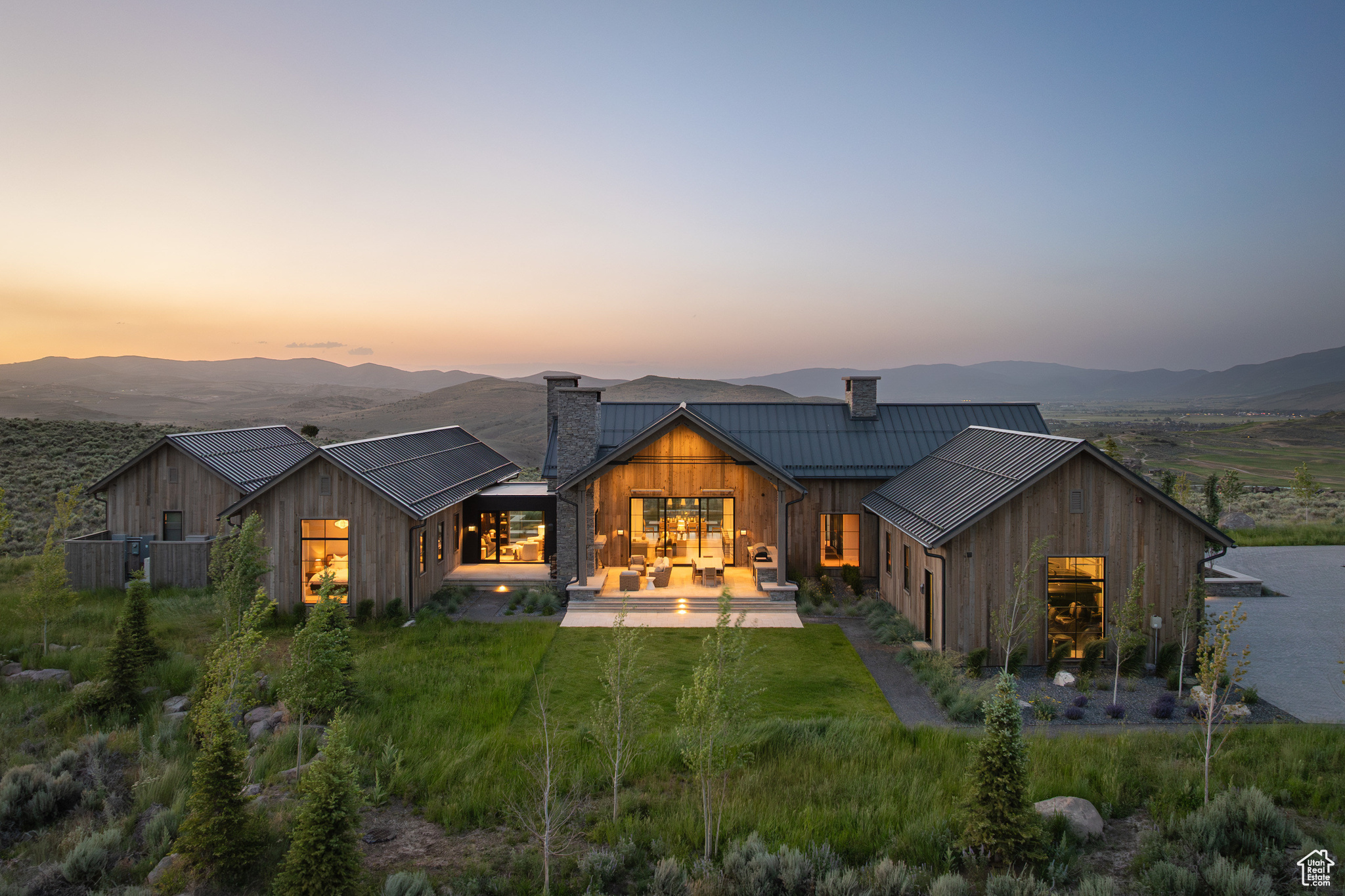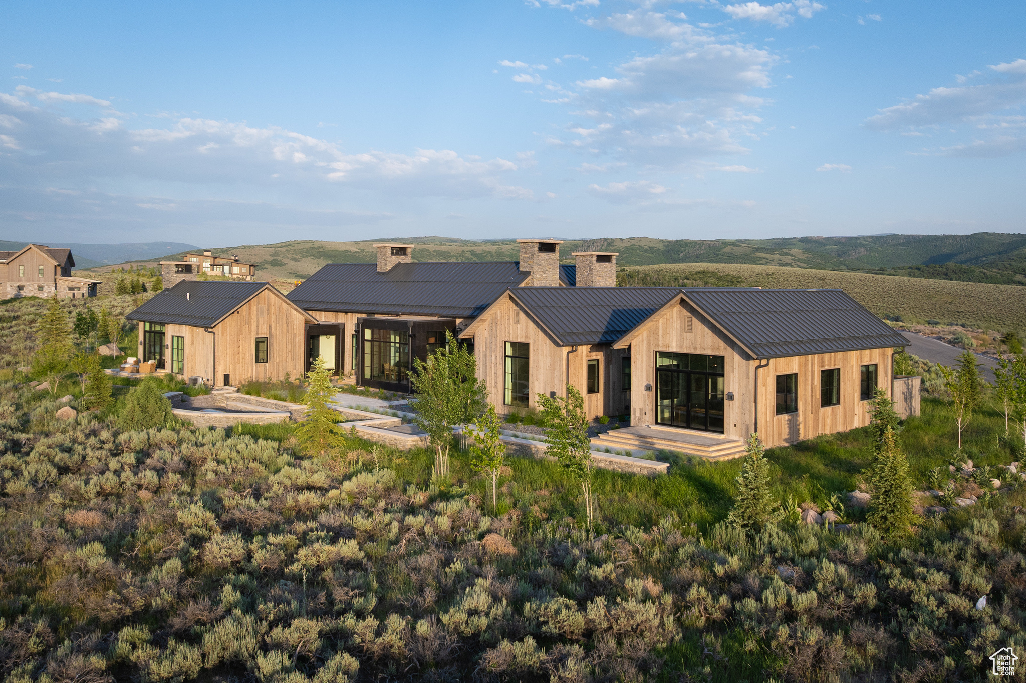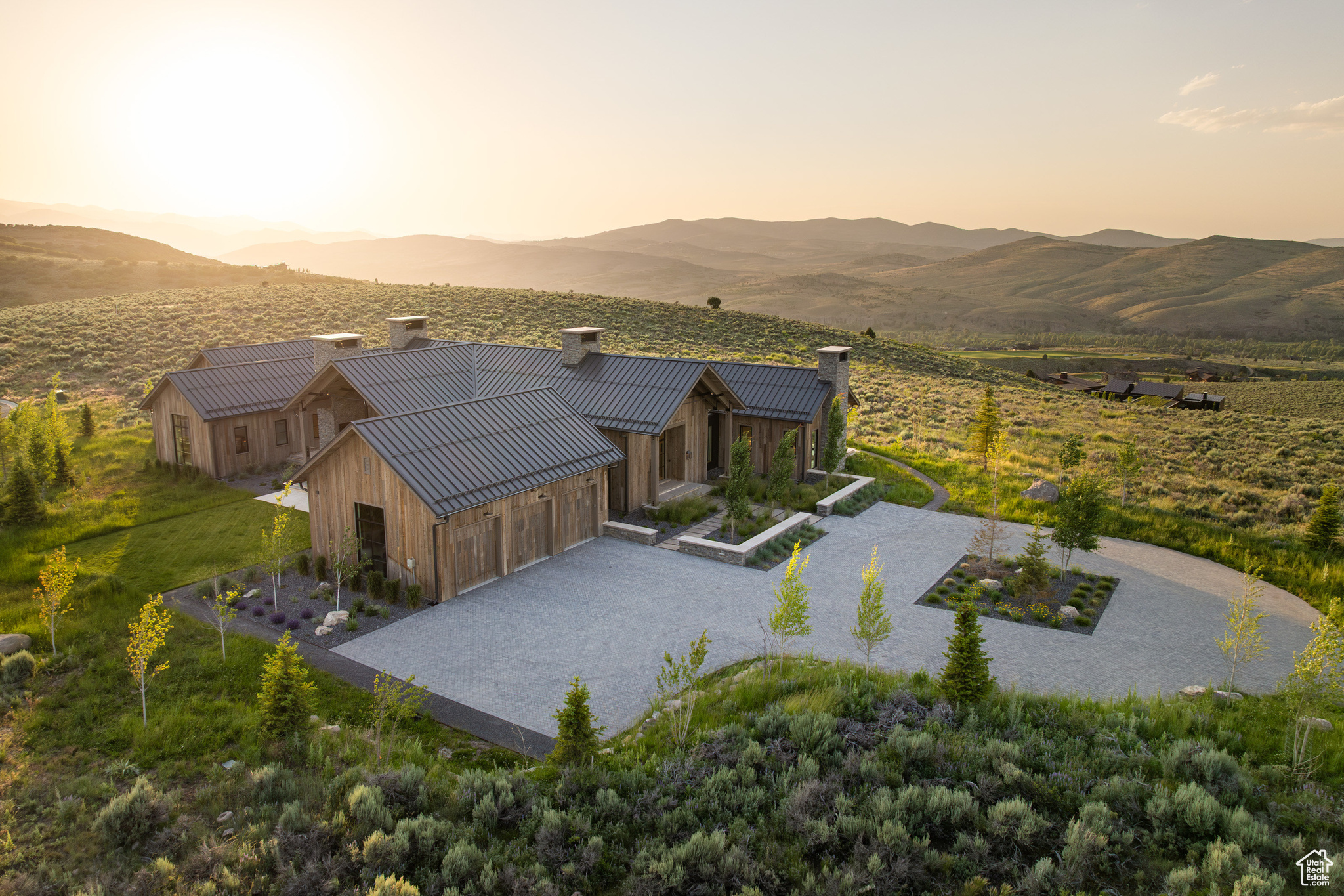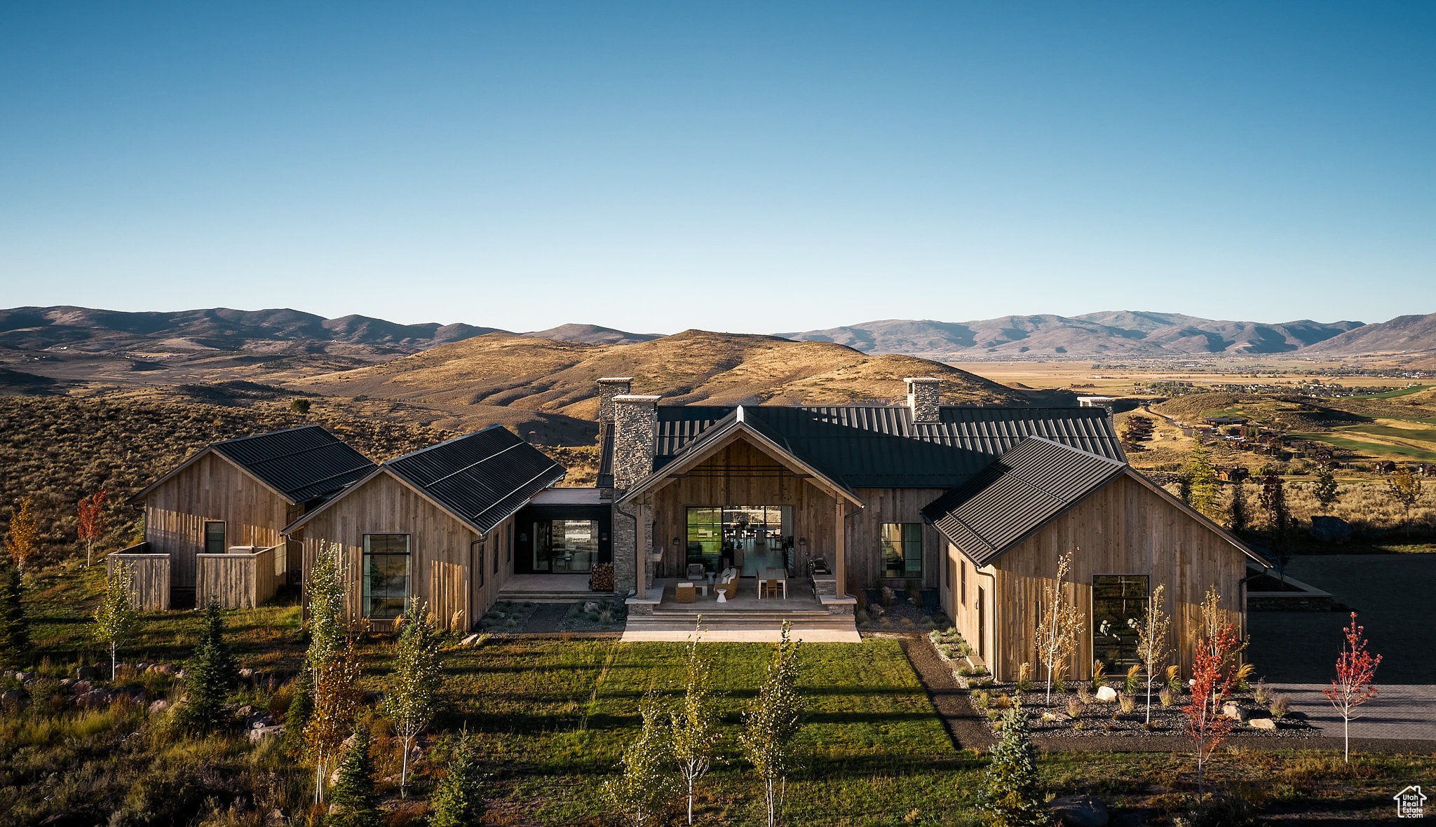 This single-level custom residence is an extraordinary blend of architectural precision, refined craftsmanship, and elevated design. Created by the renowned Northworks Architects and built by Landmarks West, the home features a refined barn-inspired aesthetic with pitched rooflines and bold blackened wood volumes that create a striking balance between light and shadow. Nestled on a peaceful 3.38-acre lot, the property offers a sense of seclusion while capturing expansive views of Utah's pristine high desert landscape, quaint valleys, and mountaintops. Thoughtfully designed outdoor spaces create a seamless connection to the natural environment and ample open space afforded by the 3.38-acre lot. With its sheltered terraces and patios, the home invites year-round enjoyment, perfect for elegant entertaining or tranquil reflection. Inside, soaring ceilings and a carefully considered floor plan balance openness and intimacy, allowing every inch of the home to feel both expansive and inviting. Every element has been executed with the highest level of care, from custom millwork and natural materials to bespoke furnishings and curated pieces, each designed exclusively for this home. The result is a harmonious interior where architecture, design, and craftsmanship converge in perfect balance. All on a single level, the home is as functional as it is beautiful, with spaces designed for both quiet moments and memorable gatherings. To truly appreciate the uncompromising attention to detail and the artistry woven into every corner, this residence must be experienced in person.