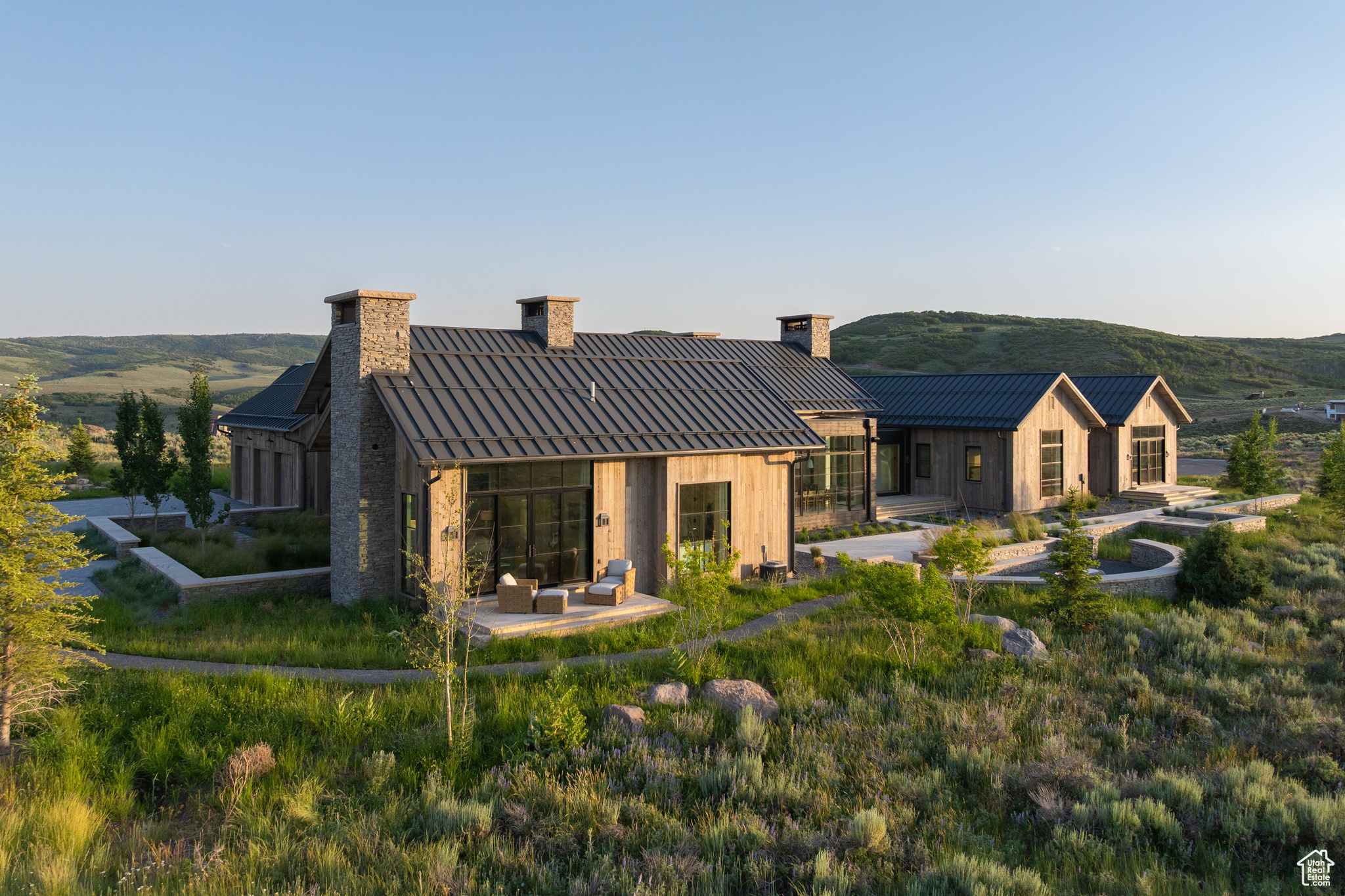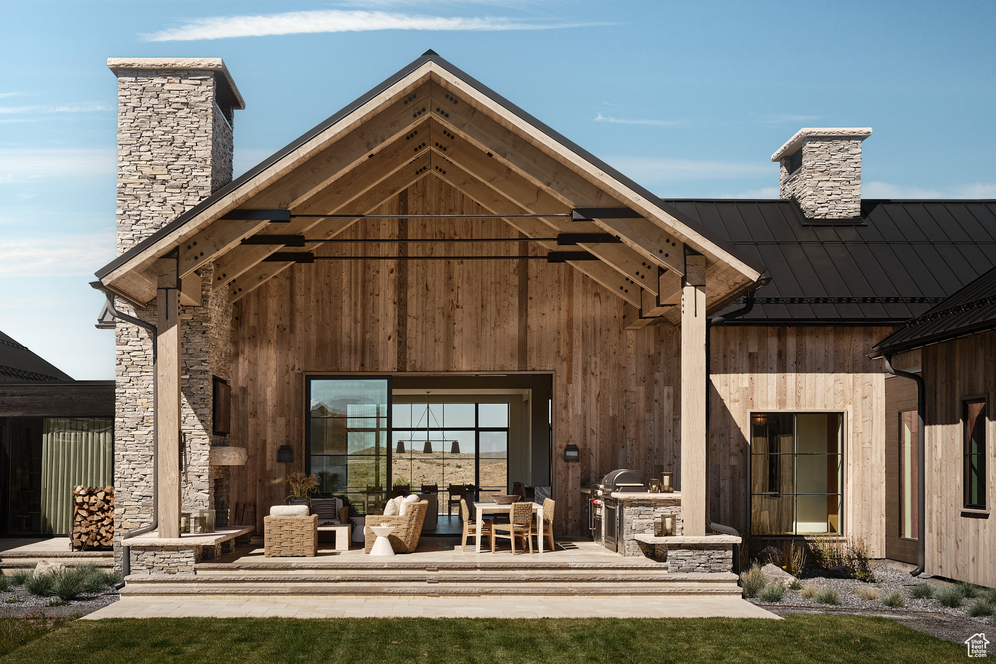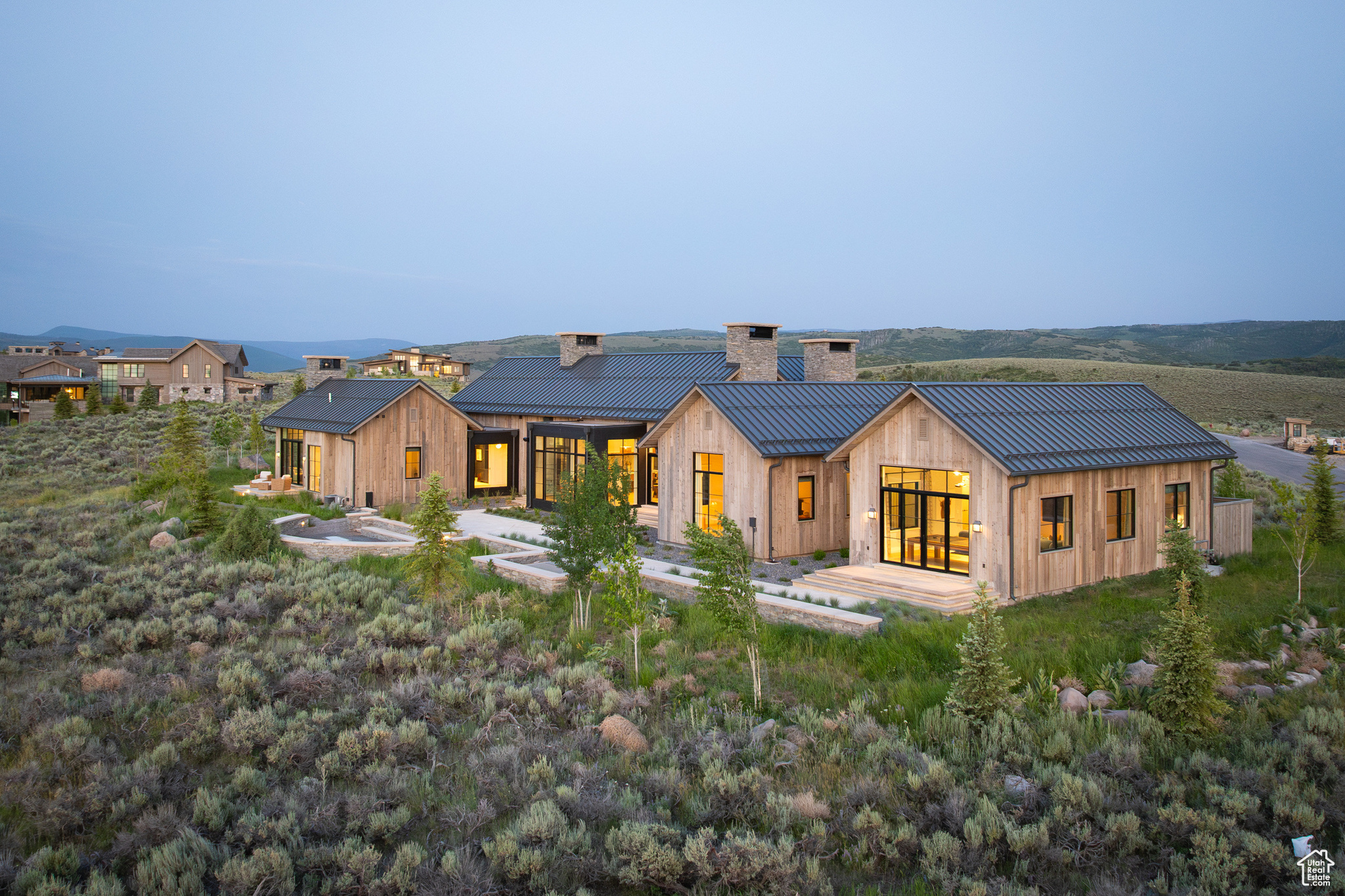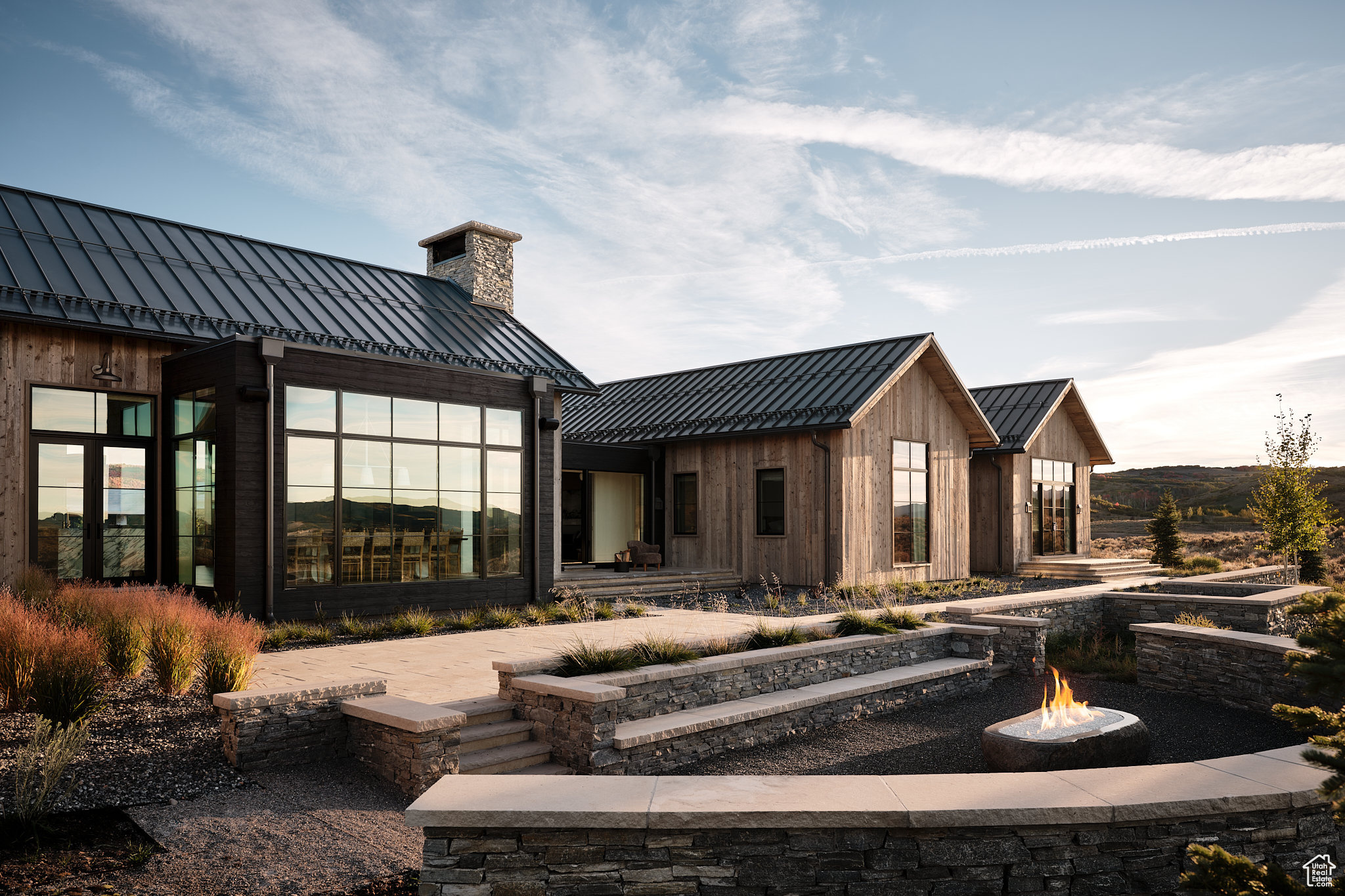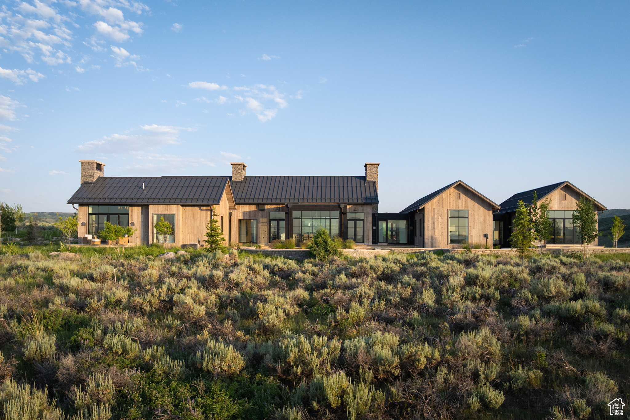 This single-level custom residence is an extraordinary blend of architectural precision, refined craftsmanship, and elevated design. Created by the renowned Northworks Architects and built by Landmarks West, the home features a refined barn-inspired aesthetic with pitched rooflines and bold blackened wood volumes that create a striking balance between light and shadow. Nestled on a peaceful 3.38-acre lot, the property offers a sense of seclusion while capturing expansive views of Utah's pristine high desert landscape, quaint valleys, and mountaintops. Thoughtfully designed outdoor spaces create a seamless connection to the natural environment and ample open space afforded by the 3.38-acre lot. With its sheltered terraces and patios, the home invites year-round enjoyment, perfect for elegant entertaining or tranquil reflection. Inside, soaring ceilings and a carefully considered floor plan balance openness and intimacy, allowing every inch of the home to feel both expansive and inviting. Every element has been executed with the highest level of care, from custom millwork and natural materials to bespoke furnishings and curated pieces, each designed exclusively for this home. The result is a harmonious interior where architecture, design, and craftsmanship converge in perfect balance. All on a single level, the home is as functional as it is beautiful, with spaces designed for both quiet moments and memorable gatherings. To truly appreciate the uncompromising attention to detail and the artistry woven into every corner, this residence must be experienced in person.