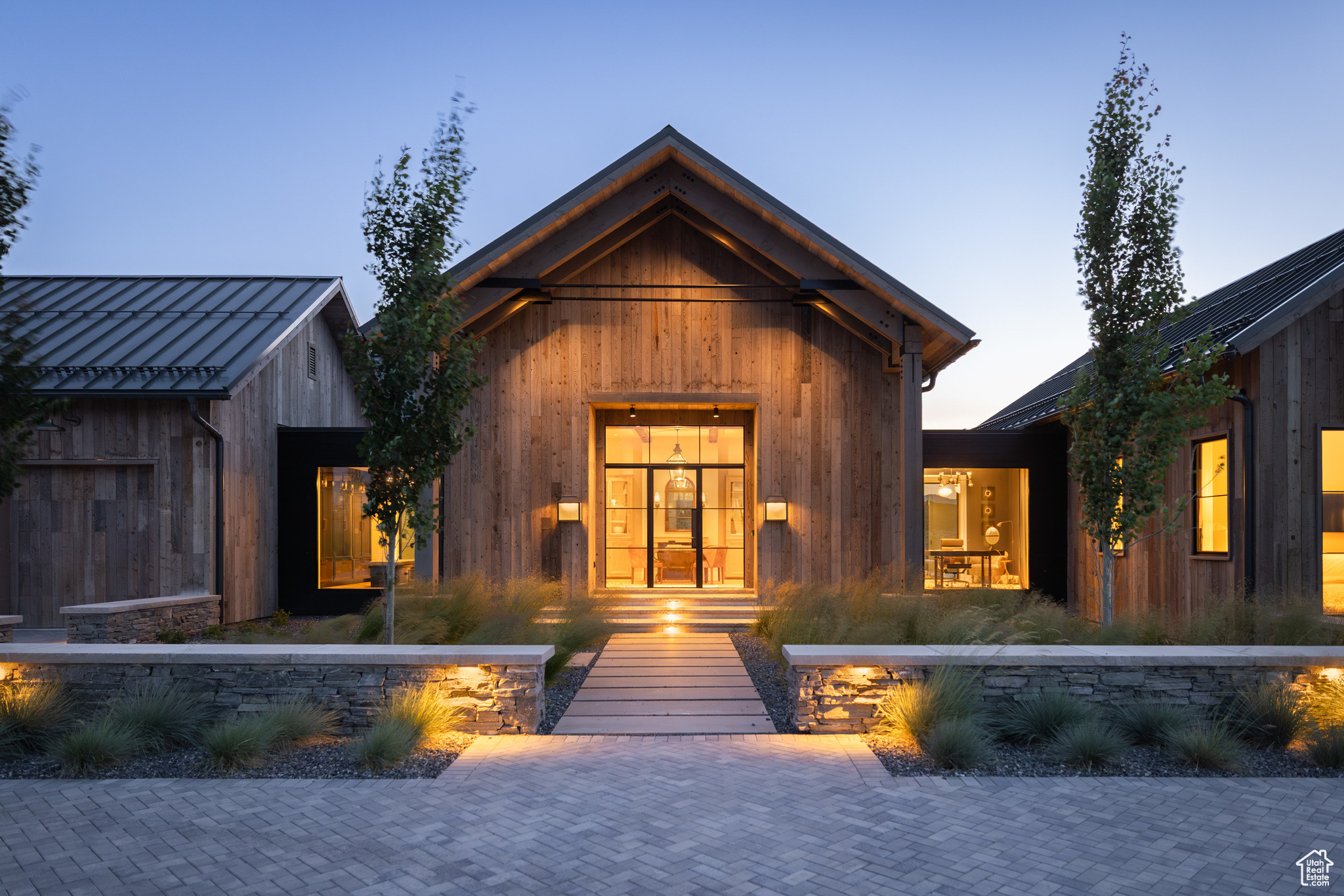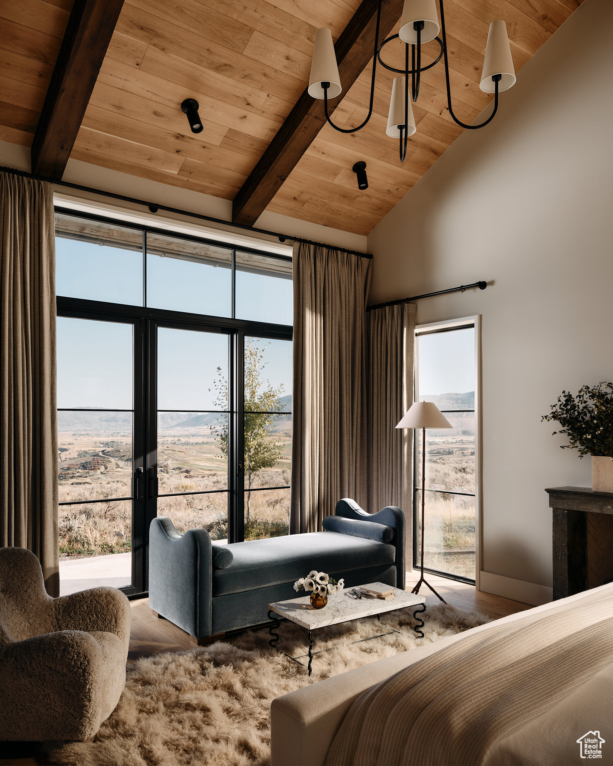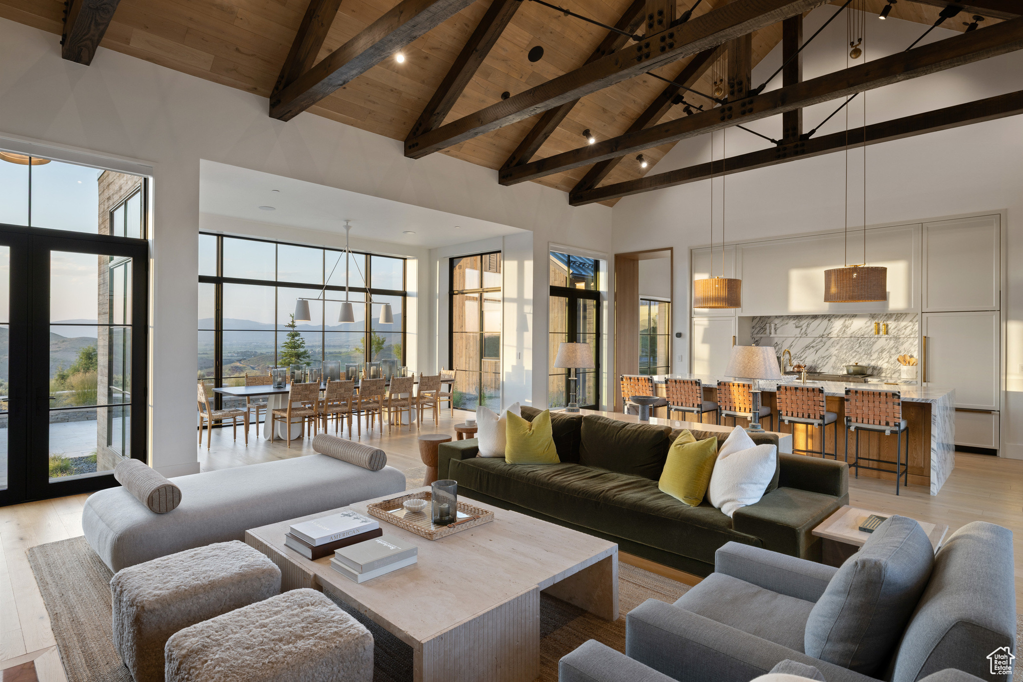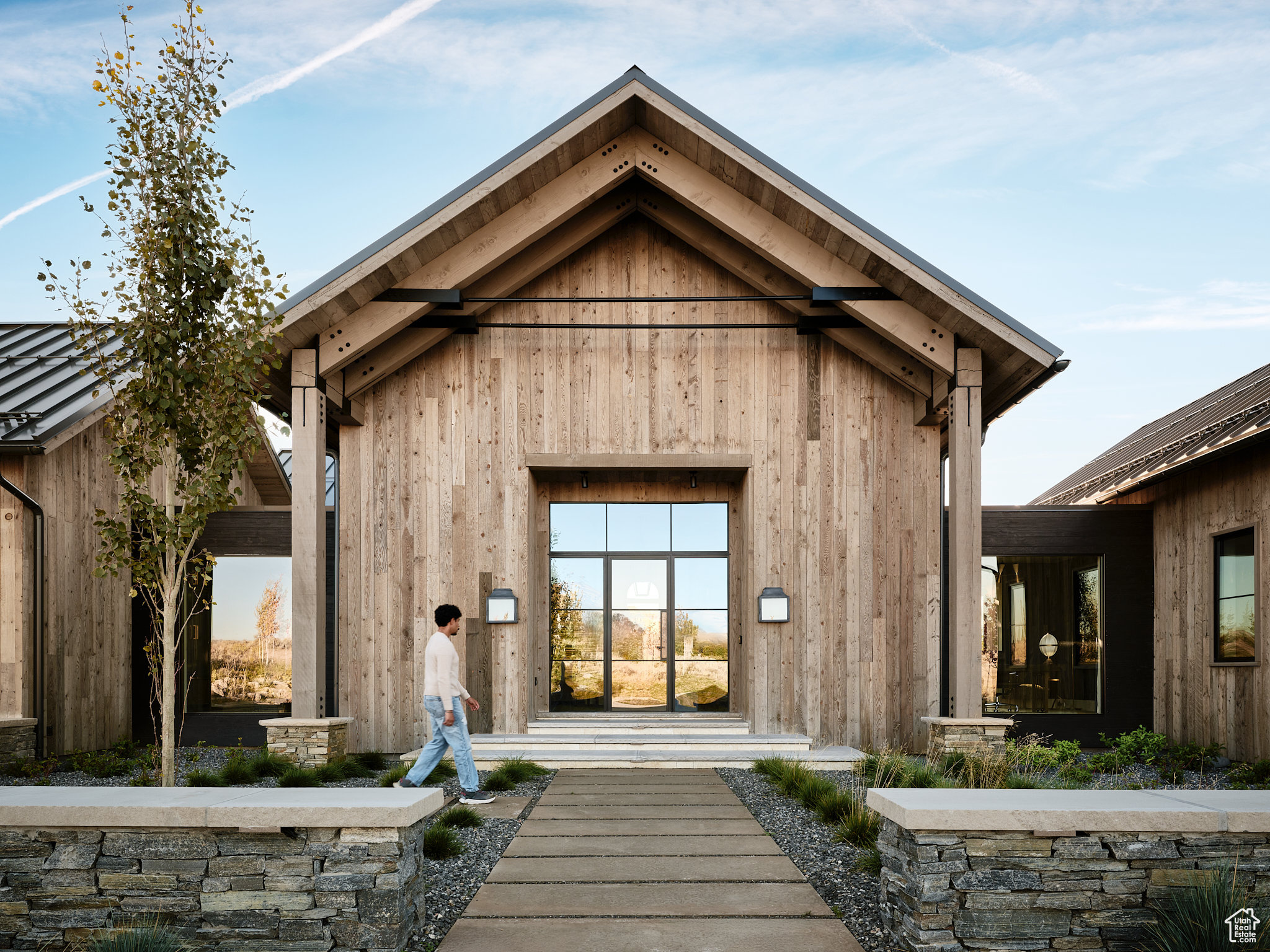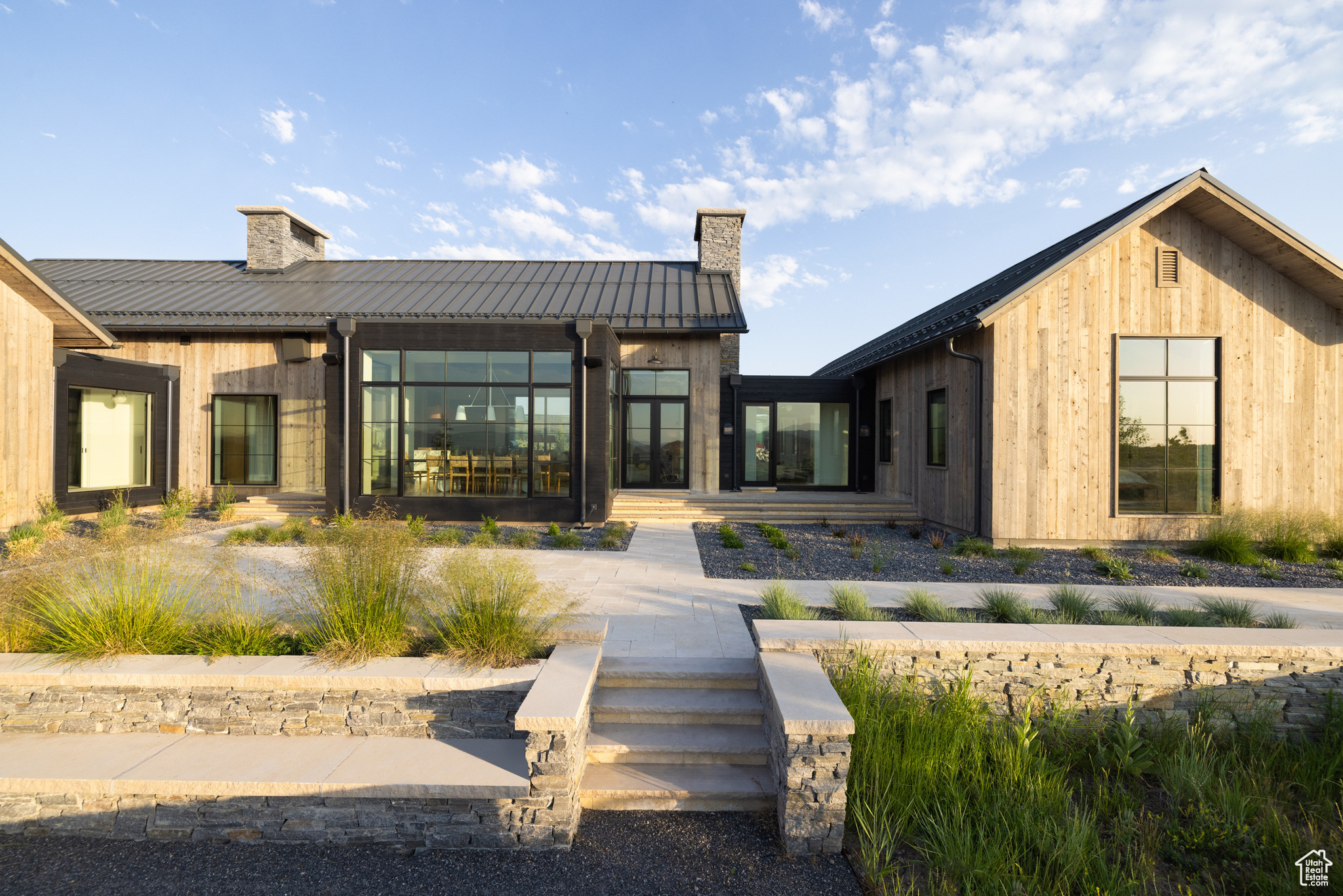 This single-level custom residence is an extraordinary blend of architectural precision, refined craftsmanship, and elevated design. Created by the renowned Northworks Architects and built by Landmarks West, the home features a refined barn-inspired aesthetic with pitched rooflines and bold blackened wood volumes that create a striking balance between light and shadow. Nestled on a peaceful 3.38-acre lot, the property offers a sense of seclusion while capturing expansive views of Utah's pristine high desert landscape, quaint valleys, and mountaintops. Thoughtfully designed outdoor spaces create a seamless connection to the natural environment and ample open space afforded by the 3.38-acre lot. With its sheltered terraces and patios, the home invites year-round enjoyment, perfect for elegant entertaining or tranquil reflection. Inside, soaring ceilings and a carefully considered floor plan balance openness and intimacy, allowing every inch of the home to feel both expansive and inviting. Every element has been executed with the highest level of care, from custom millwork and natural materials to bespoke furnishings and curated pieces, each designed exclusively for this home. The result is a harmonious interior where architecture, design, and craftsmanship converge in perfect balance. All on a single level, the home is as functional as it is beautiful, with spaces designed for both quiet moments and memorable gatherings. To truly appreciate the uncompromising attention to detail and the artistry woven into every corner, this residence must be experienced in person.