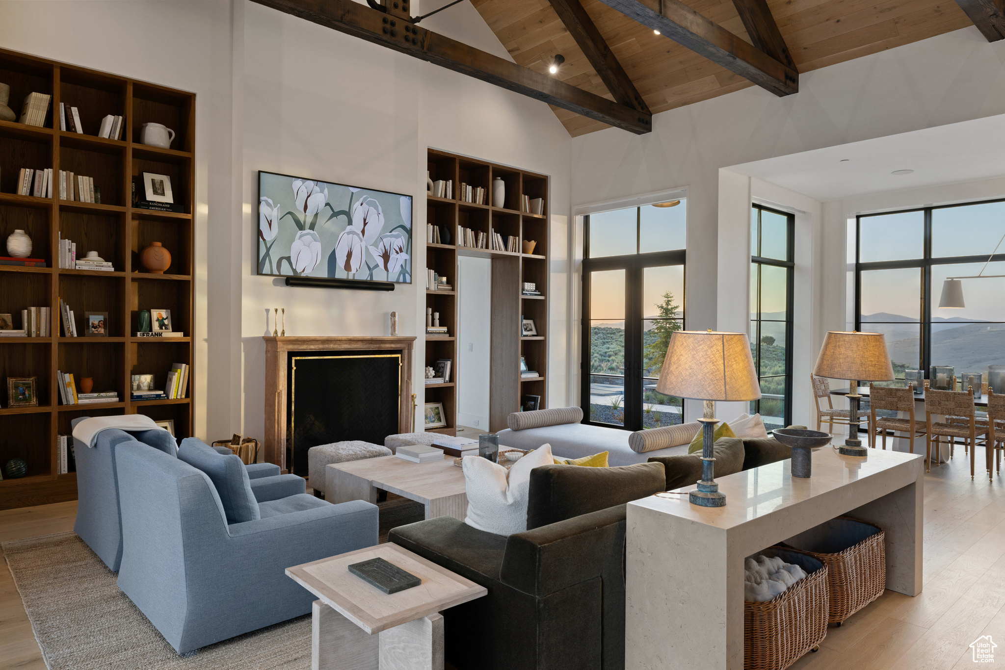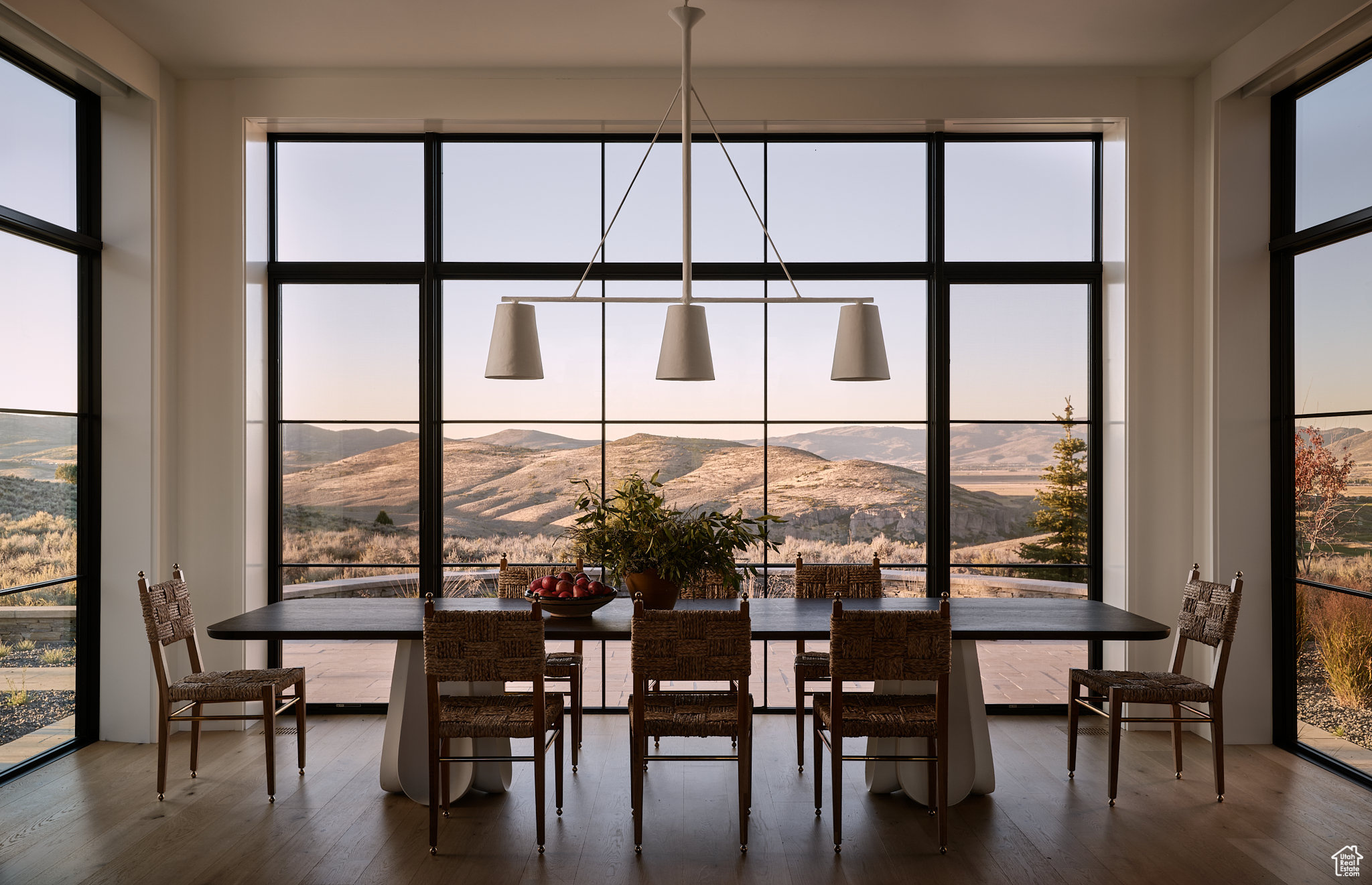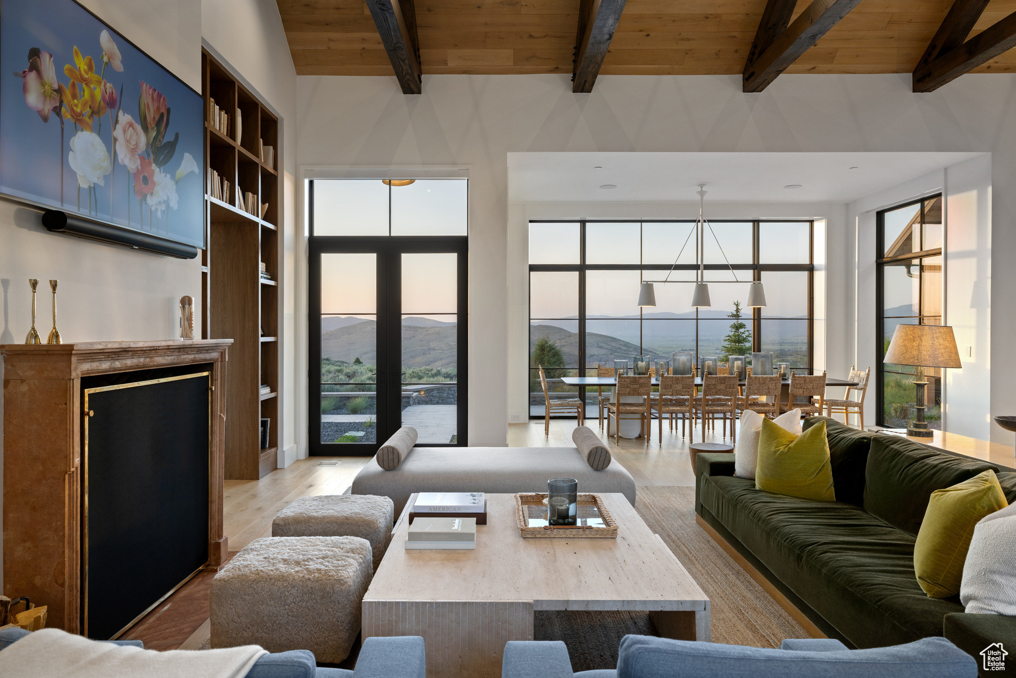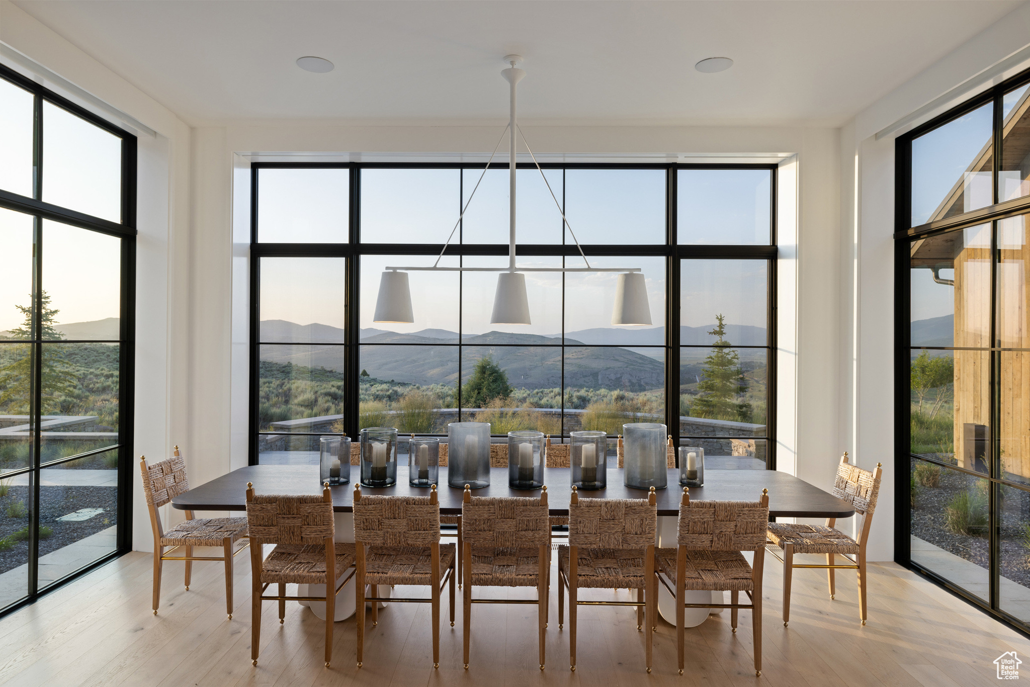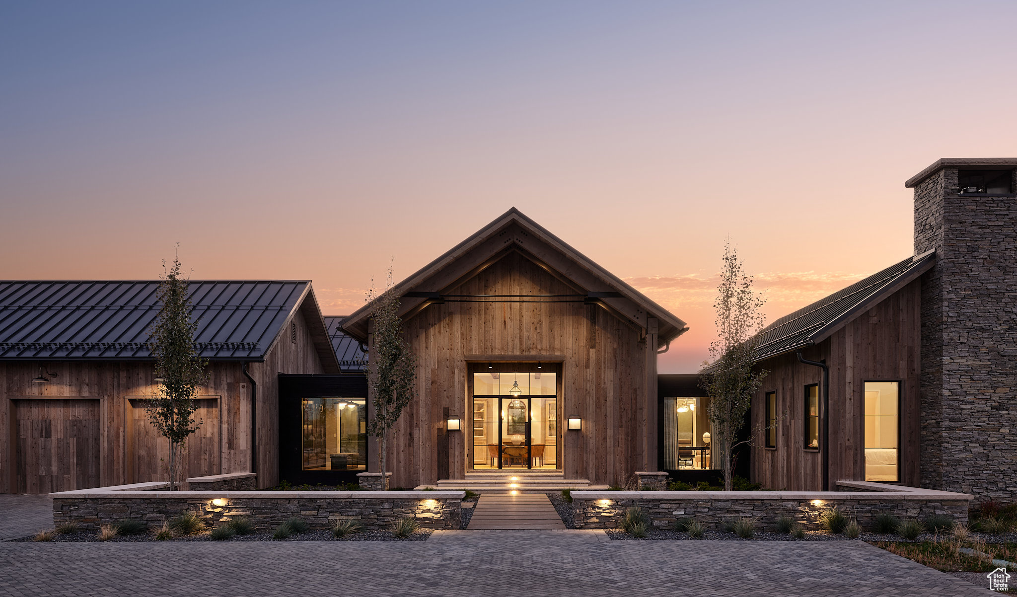 This single-level custom residence is an extraordinary blend of architectural precision, refined craftsmanship, and elevated design. Created by the renowned Northworks Architects and built by Landmarks West, the home features a refined barn-inspired aesthetic with pitched rooflines and bold blackened wood volumes that create a striking balance between light and shadow. Nestled on a peaceful 3.38-acre lot, the property offers a sense of seclusion while capturing expansive views of Utah's pristine high desert landscape, quaint valleys, and mountaintops. Thoughtfully designed outdoor spaces create a seamless connection to the natural environment and ample open space afforded by the 3.38-acre lot. With its sheltered terraces and patios, the home invites year-round enjoyment, perfect for elegant entertaining or tranquil reflection. Inside, soaring ceilings and a carefully considered floor plan balance openness and intimacy, allowing every inch of the home to feel both expansive and inviting. Every element has been executed with the highest level of care, from custom millwork and natural materials to bespoke furnishings and curated pieces, each designed exclusively for this home. The result is a harmonious interior where architecture, design, and craftsmanship converge in perfect balance. All on a single level, the home is as functional as it is beautiful, with spaces designed for both quiet moments and memorable gatherings. To truly appreciate the uncompromising attention to detail and the artistry woven into every corner, this residence must be experienced in person.