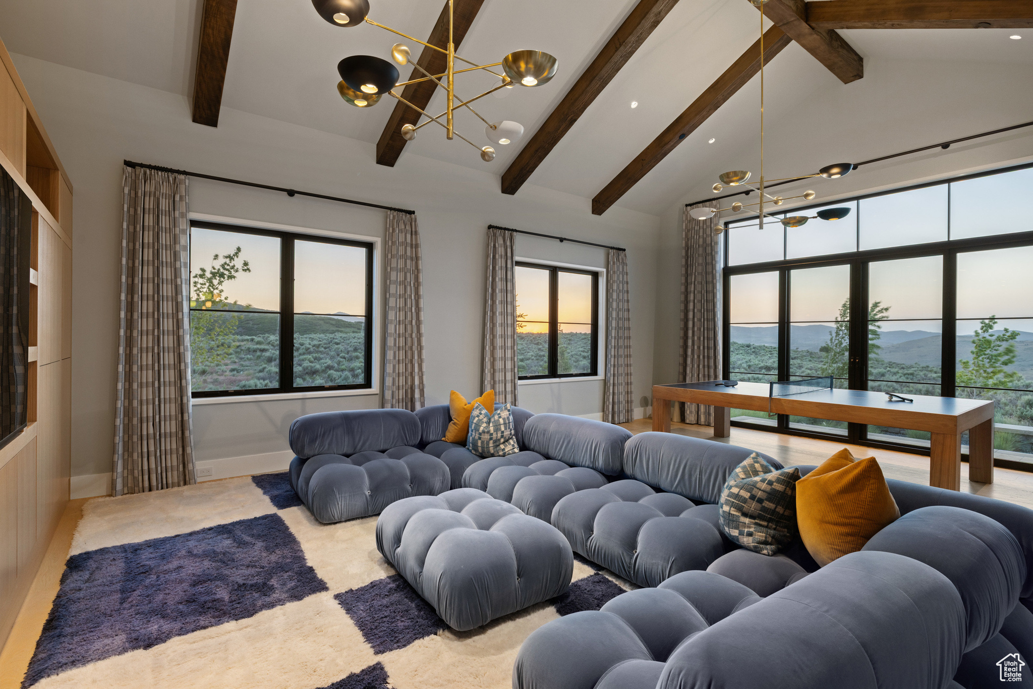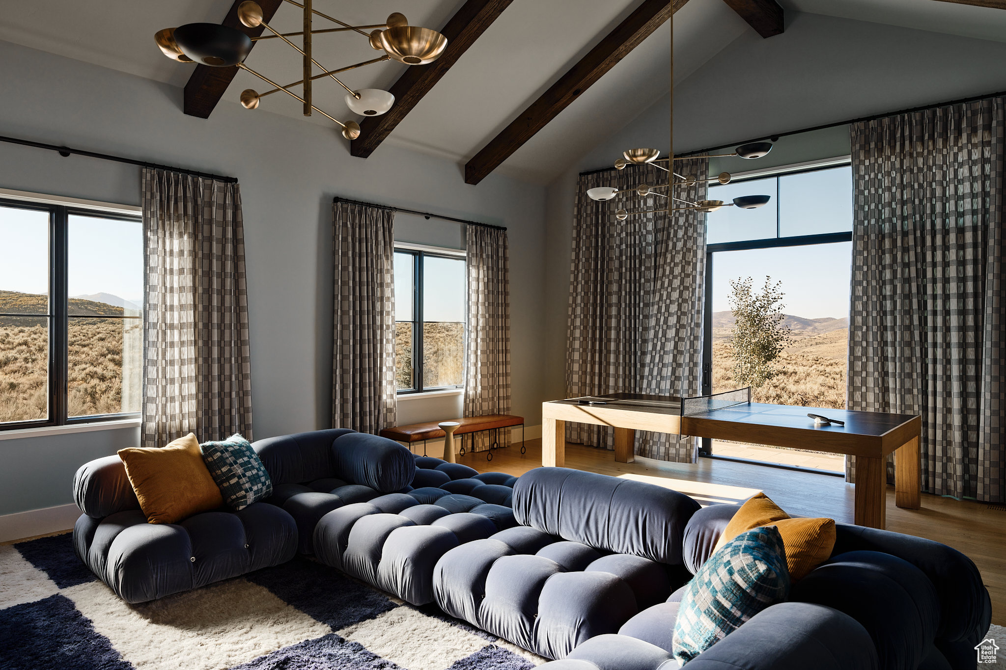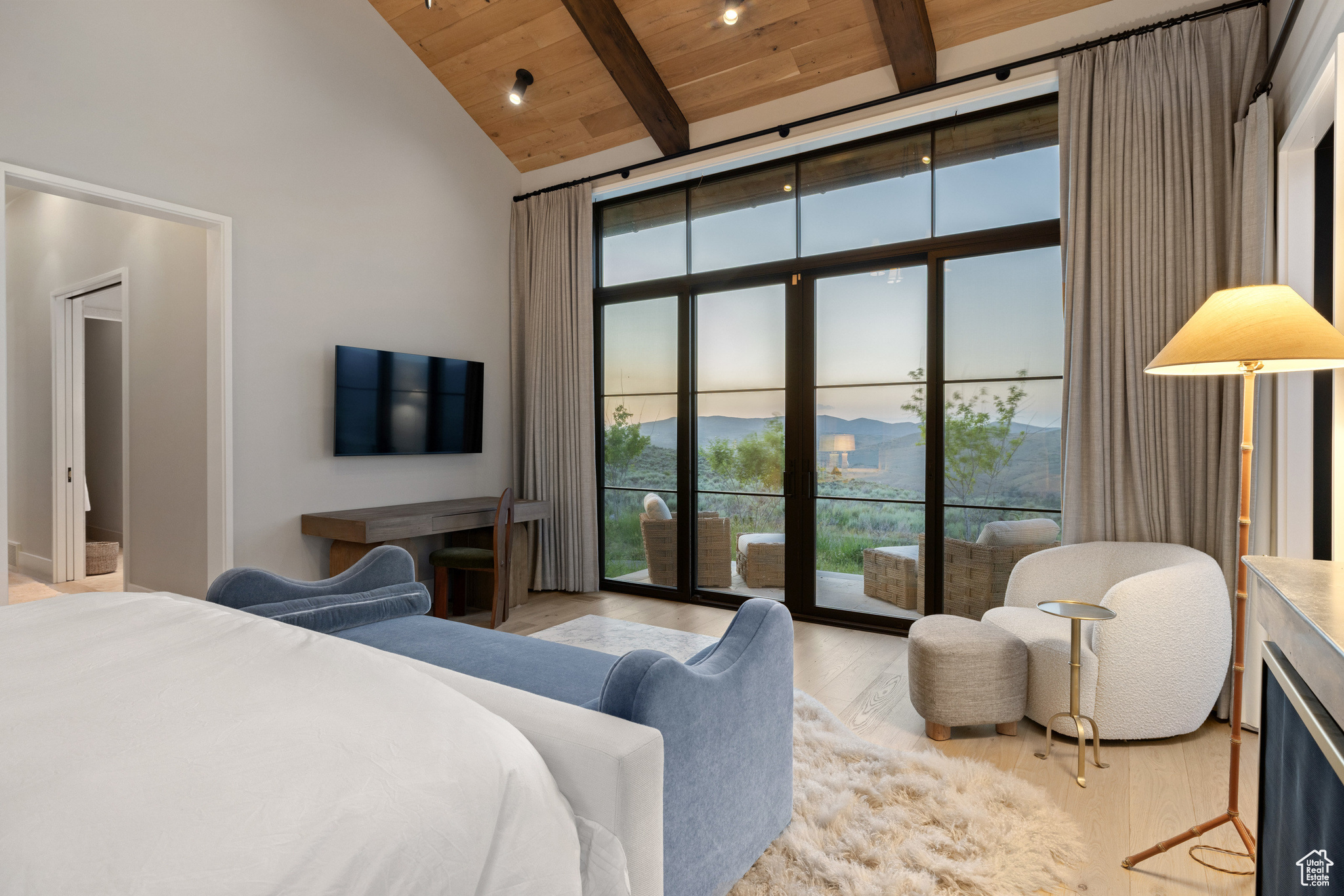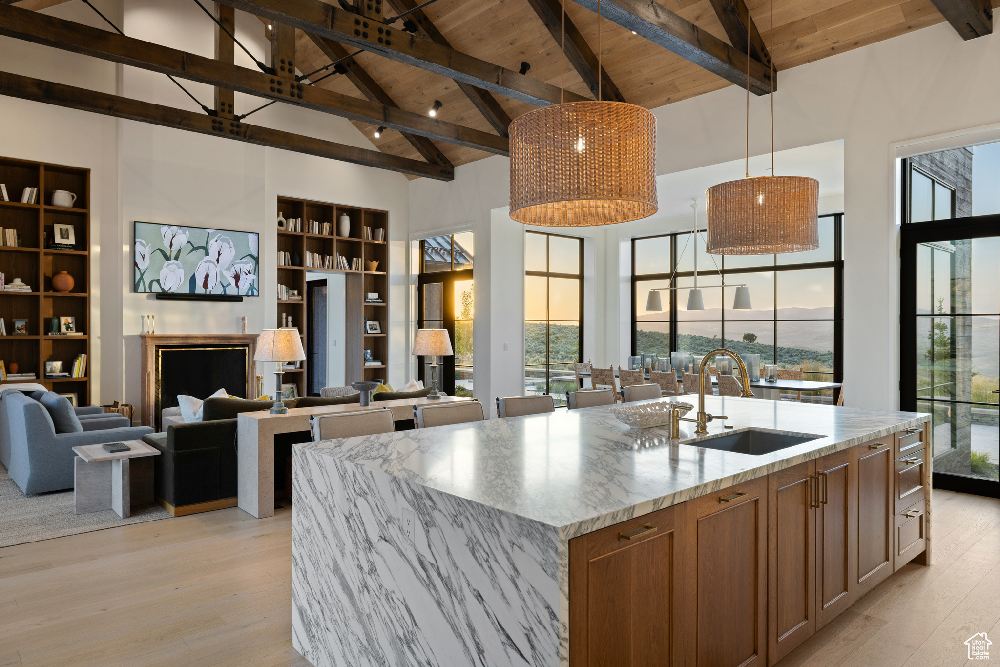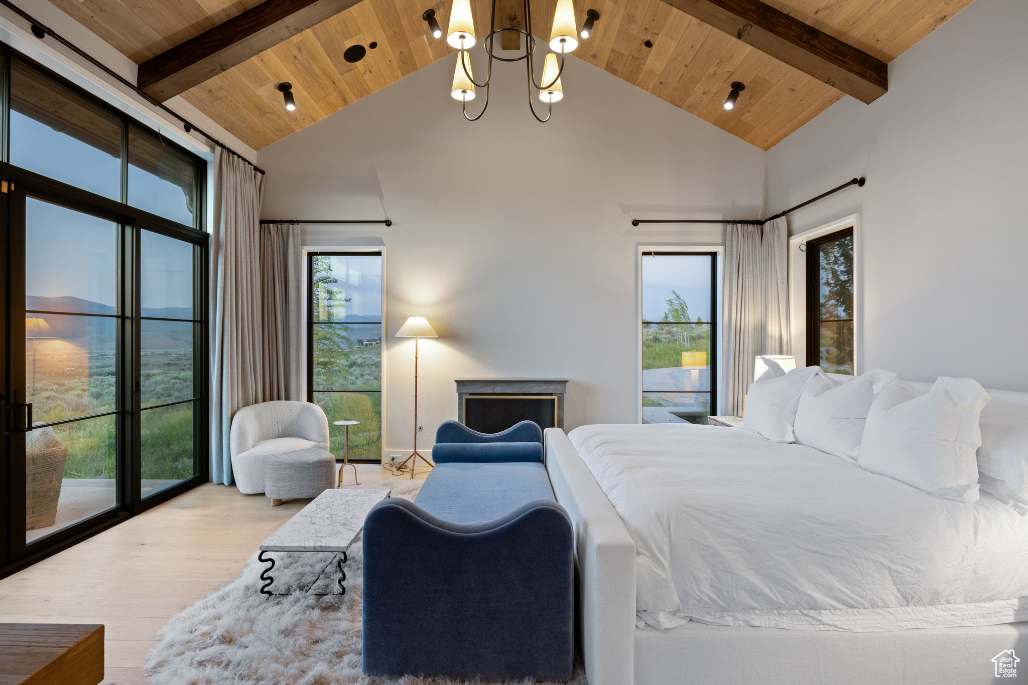 This single-level custom residence is an extraordinary blend of architectural precision, refined craftsmanship, and elevated design. Created by the renowned Northworks Architects and built by Landmarks West, the home features a refined barn-inspired aesthetic with pitched rooflines and bold blackened wood volumes that create a striking balance between light and shadow. Nestled on a peaceful 3.38-acre lot, the property offers a sense of seclusion while capturing expansive views of Utah's pristine high desert landscape, quaint valleys, and mountaintops. Thoughtfully designed outdoor spaces create a seamless connection to the natural environment and ample open space afforded by the 3.38-acre lot. With its sheltered terraces and patios, the home invites year-round enjoyment, perfect for elegant entertaining or tranquil reflection. Inside, soaring ceilings and a carefully considered floor plan balance openness and intimacy, allowing every inch of the home to feel both expansive and inviting. Every element has been executed with the highest level of care, from custom millwork and natural materials to bespoke furnishings and curated pieces, each designed exclusively for this home. The result is a harmonious interior where architecture, design, and craftsmanship converge in perfect balance. All on a single level, the home is as functional as it is beautiful, with spaces designed for both quiet moments and memorable gatherings. To truly appreciate the uncompromising attention to detail and the artistry woven into every corner, this residence must be experienced in person.