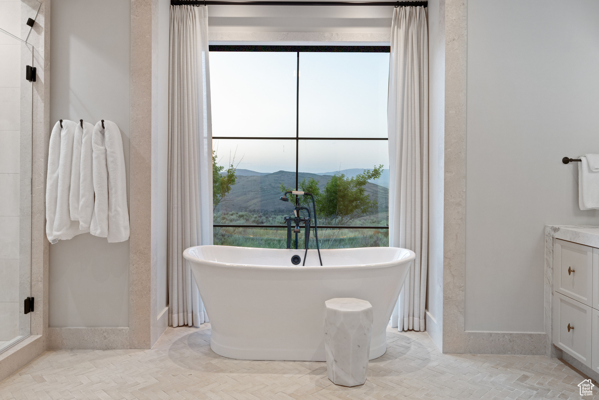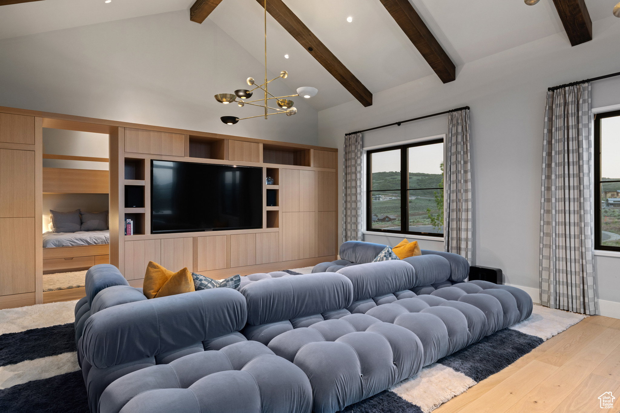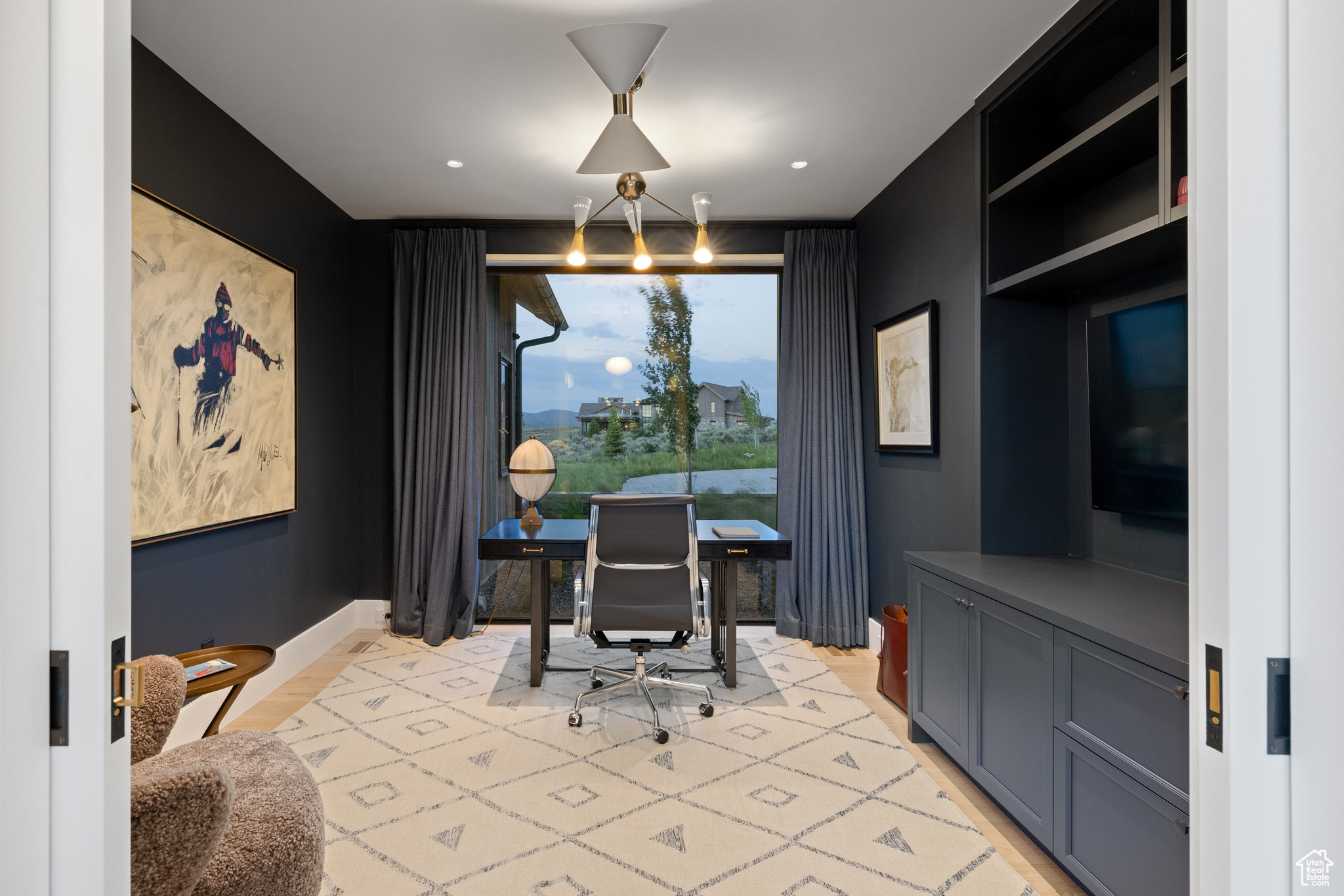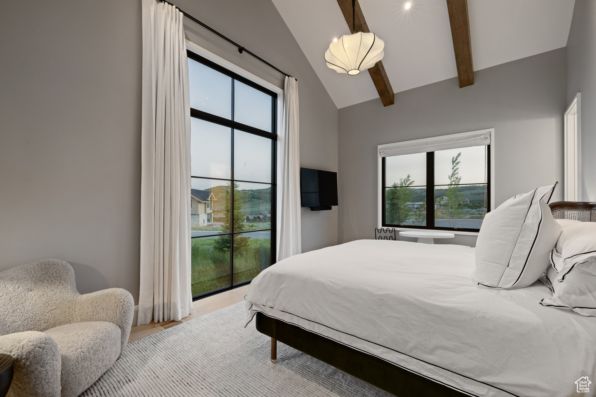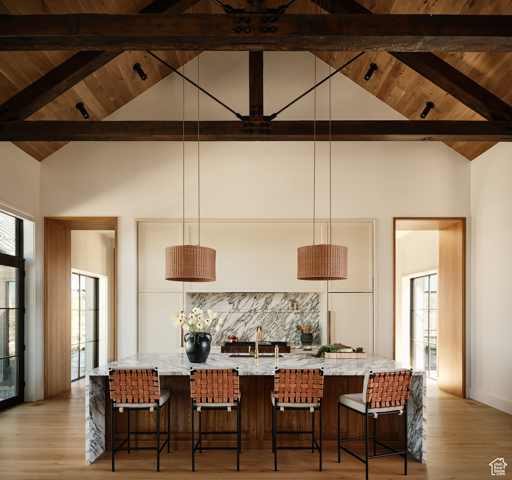 This single-level custom residence is an extraordinary blend of architectural precision, refined craftsmanship, and elevated design. Created by the renowned Northworks Architects and built by Landmarks West, the home features a refined barn-inspired aesthetic with pitched rooflines and bold blackened wood volumes that create a striking balance between light and shadow. Nestled on a peaceful 3.38-acre lot, the property offers a sense of seclusion while capturing expansive views of Utah's pristine high desert landscape, quaint valleys, and mountaintops. Thoughtfully designed outdoor spaces create a seamless connection to the natural environment and ample open space afforded by the 3.38-acre lot. With its sheltered terraces and patios, the home invites year-round enjoyment, perfect for elegant entertaining or tranquil reflection. Inside, soaring ceilings and a carefully considered floor plan balance openness and intimacy, allowing every inch of the home to feel both expansive and inviting. Every element has been executed with the highest level of care, from custom millwork and natural materials to bespoke furnishings and curated pieces, each designed exclusively for this home. The result is a harmonious interior where architecture, design, and craftsmanship converge in perfect balance. All on a single level, the home is as functional as it is beautiful, with spaces designed for both quiet moments and memorable gatherings. To truly appreciate the uncompromising attention to detail and the artistry woven into every corner, this residence must be experienced in person.
