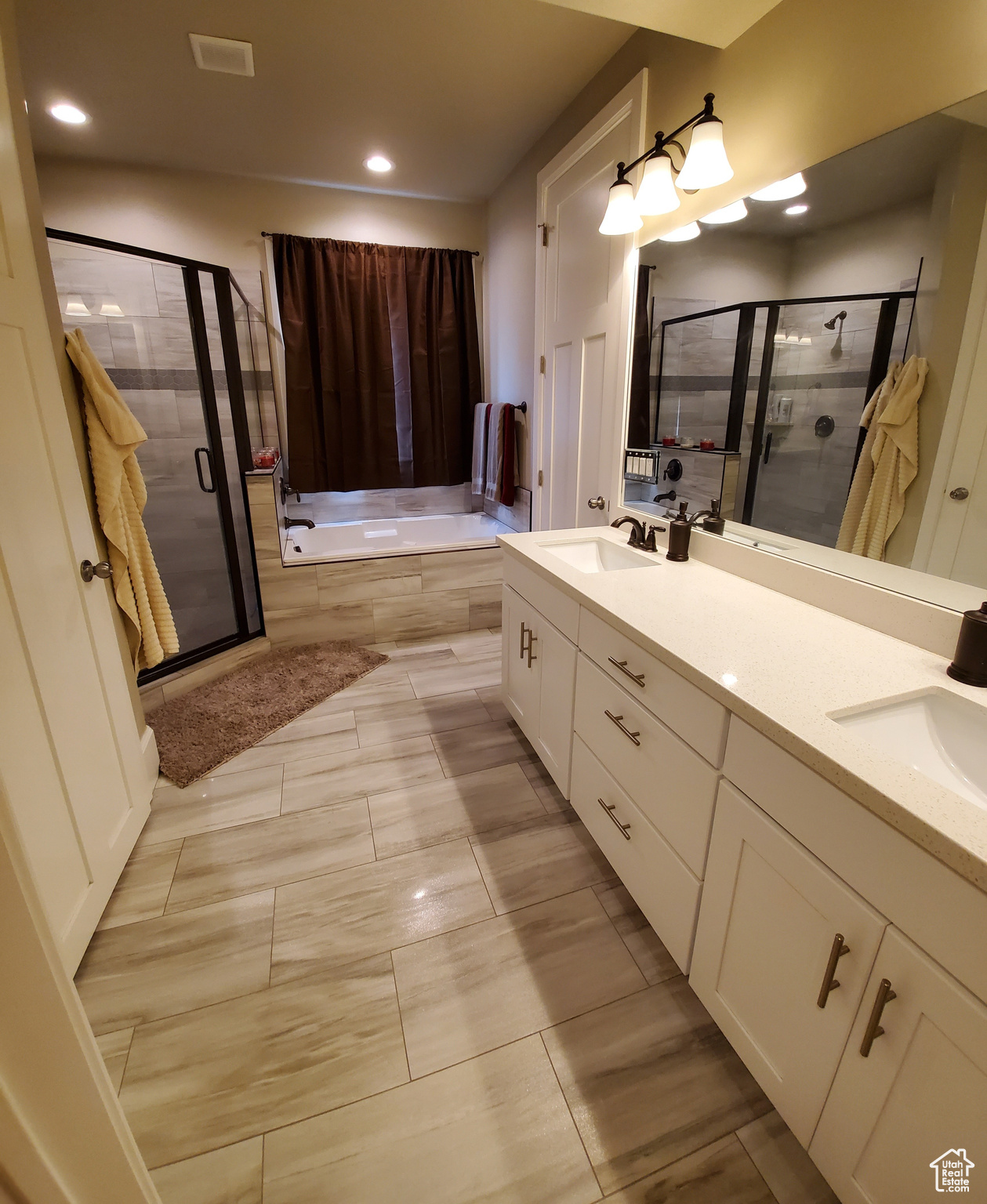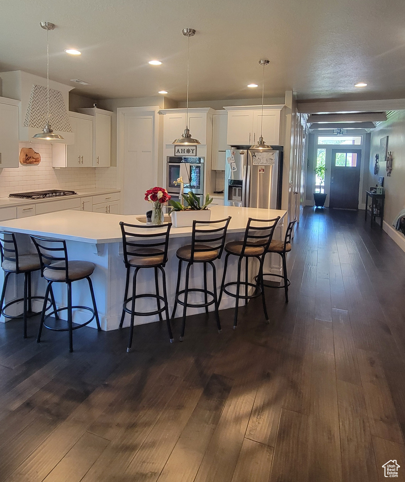 Step into comfort and style with this beautiful home in Midway. The main level features two bedrooms, including a master suite, a second full bathroom with a convenient storage closet, a large laundry room, and an open-concept living area anchored by a stunning brick fireplace. The modern kitchen boasts a 5-burner gas range, double wall ovens, quartz countertops, soft-close cabinetry, and a walk-in pantry. Upstairs, you'll find three additional bedrooms-including a second master suite-a fourth bathroom with extra storage, a cozy family room, and ample space for all your needs. Enjoy outdoor living with permanent exterior lighting, balconies at the front and back, a large patio with a hot tub, and a spacious 3-car heated garage. Located just minutes from Park City and various recreational hot spots. This home is a must-see. Owner/Agent.