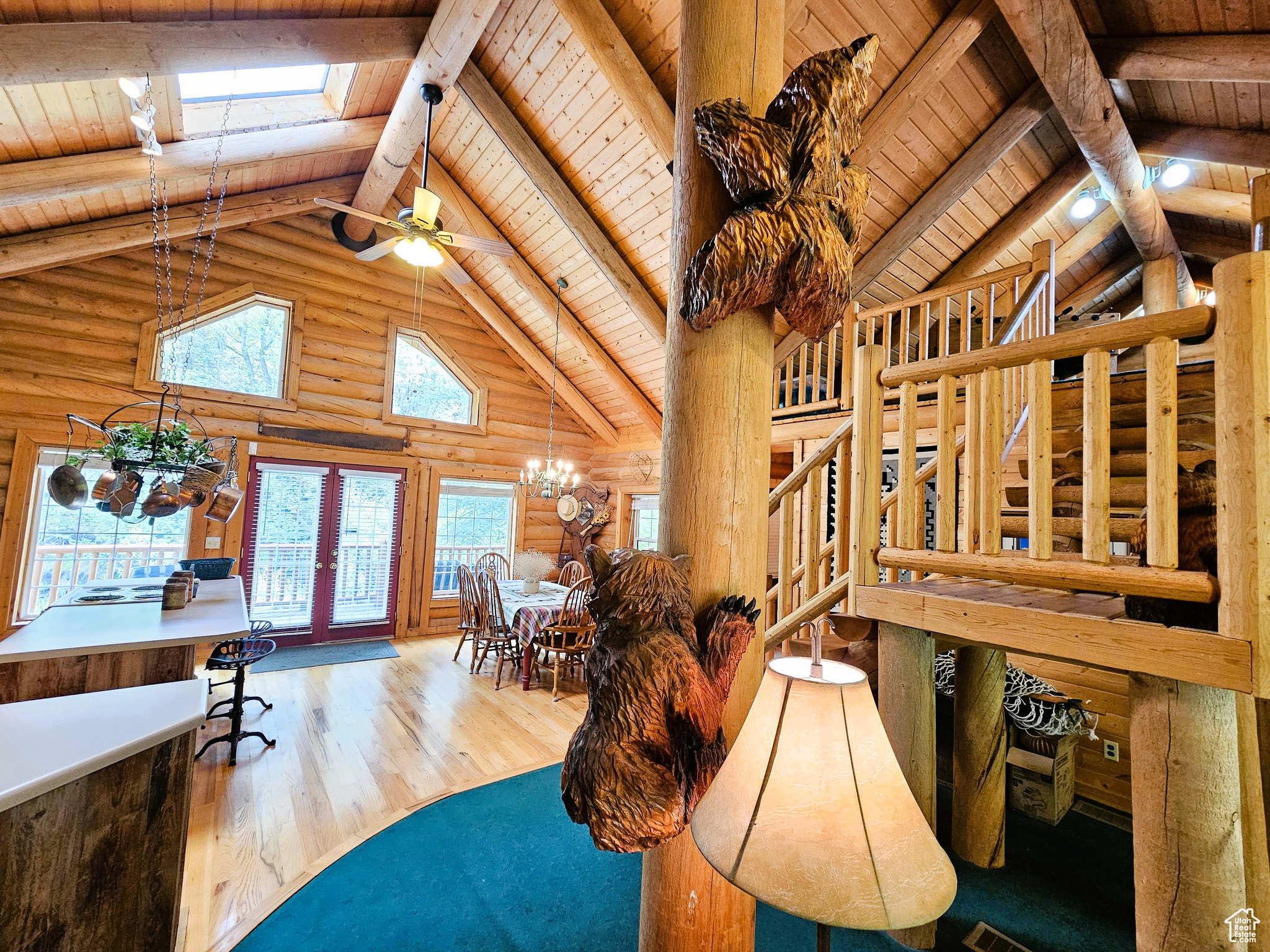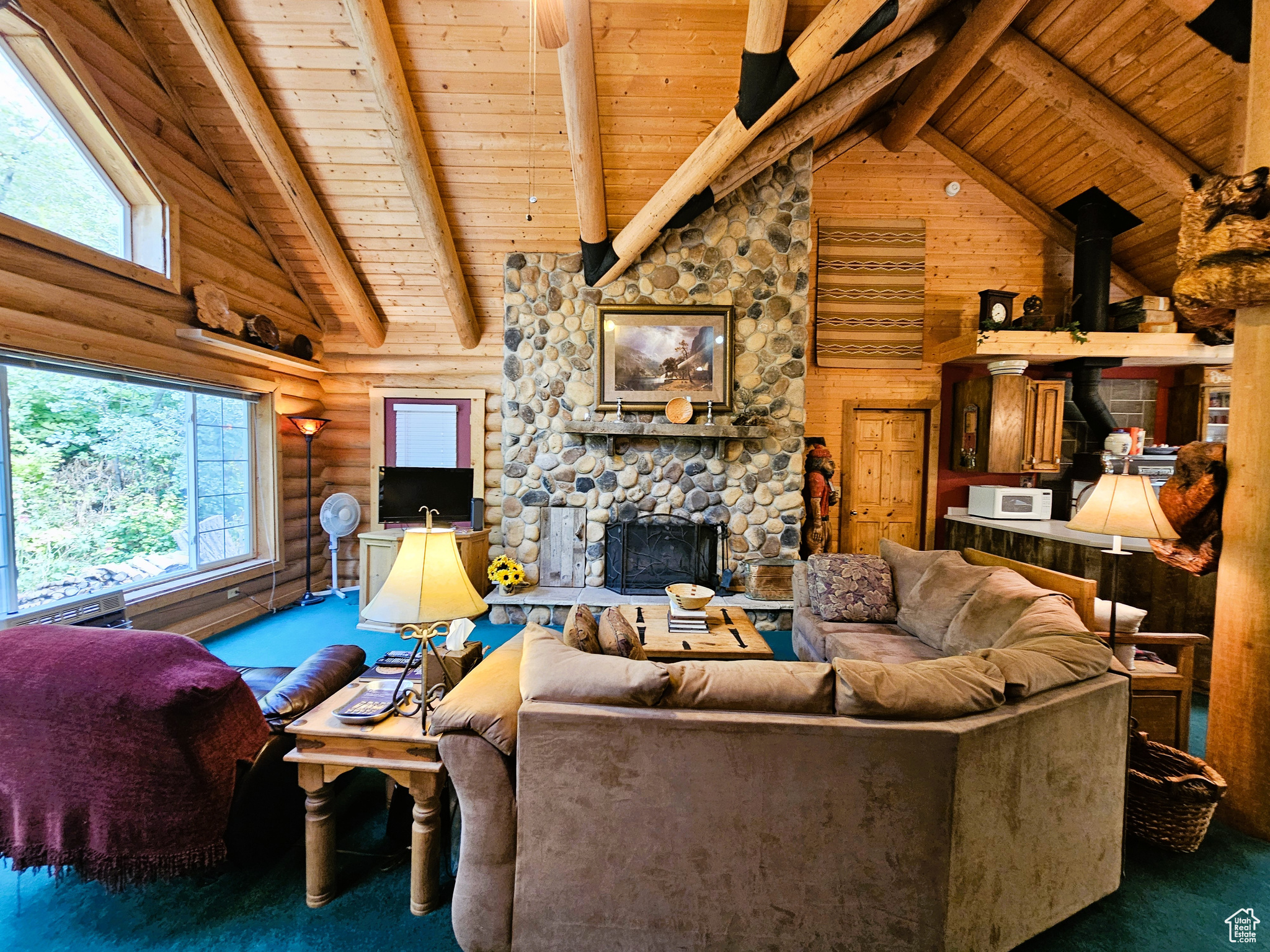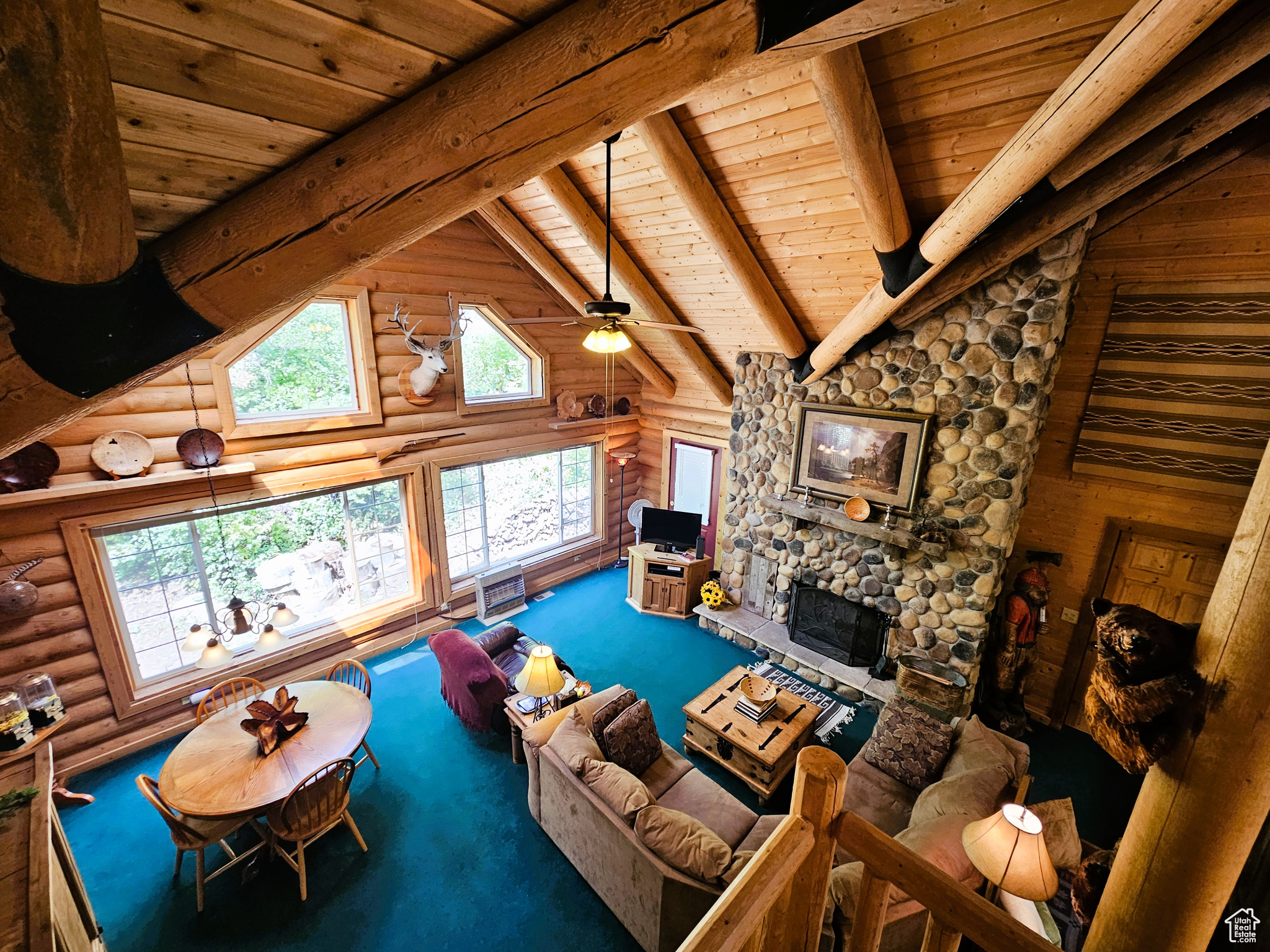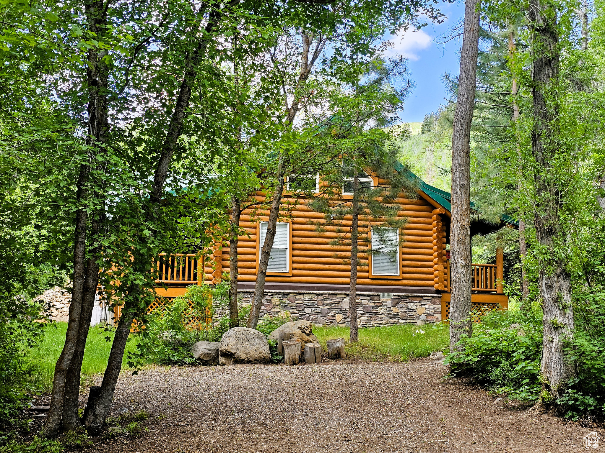 Beautiful log cabin in immaculate condition nestled on Birch Creek with pine, aspen, and cottonwood trees! Single level living with a master suite which has direct access onto the deck overlooking the creek. Enjoy the sound of living on a creek and nature anywhere you are on the property. This property comes with a moose which stops by from time to time. Cabin is being sold fully furnished. It is loaded with furniture and decorations befitting such a cabin and setting. Don't miss the working antique stove in the kitchen or the clawfoot tub in the master suite and many other unique antiques and furnishings. Cabin features a large open loft with plenty of space for games and beds. Over 5.8 acres spread out on two lots. Includes a detached garage which could be used as a workshop or any number of ideas you might have for it. This cabin is the perfect location, easy to get to and less than one mile from year round access and less than one hour from Utah County. Enjoy your very own cabin property nestled in a mountain resort with cool crisp mountain air and get away from it all. Skyline Mountain Resort has so many activities from a swimming pool to a 9 hole golf course, pickleball, tennis, and much more. Enjoy the Manti-LaSal National Forest and all that Skyline Drive has to offer close by; hunting, fishing, lakes, hiking, exploring, hundreds of miles of ATV trails and similar terrain for snowmobiles and winter recreation. Just a few minutes from all the small-town amenities like a hospital, hardware and grocery store, community indoor swimming pool, even a drive-in theater. Controlled community gate entrance. Power is connected. Property has a septic system. Water is from a community fill station or form a share you own. Elevation is 6,818. MLS map is correct. Google Maps/Earth is 39.59257, -111.37293. Buyer to verify all information. Square footage figures are provided as a courtesy estimate only and were obtained from the county. Buyer is advised to obtain an independent measurement.