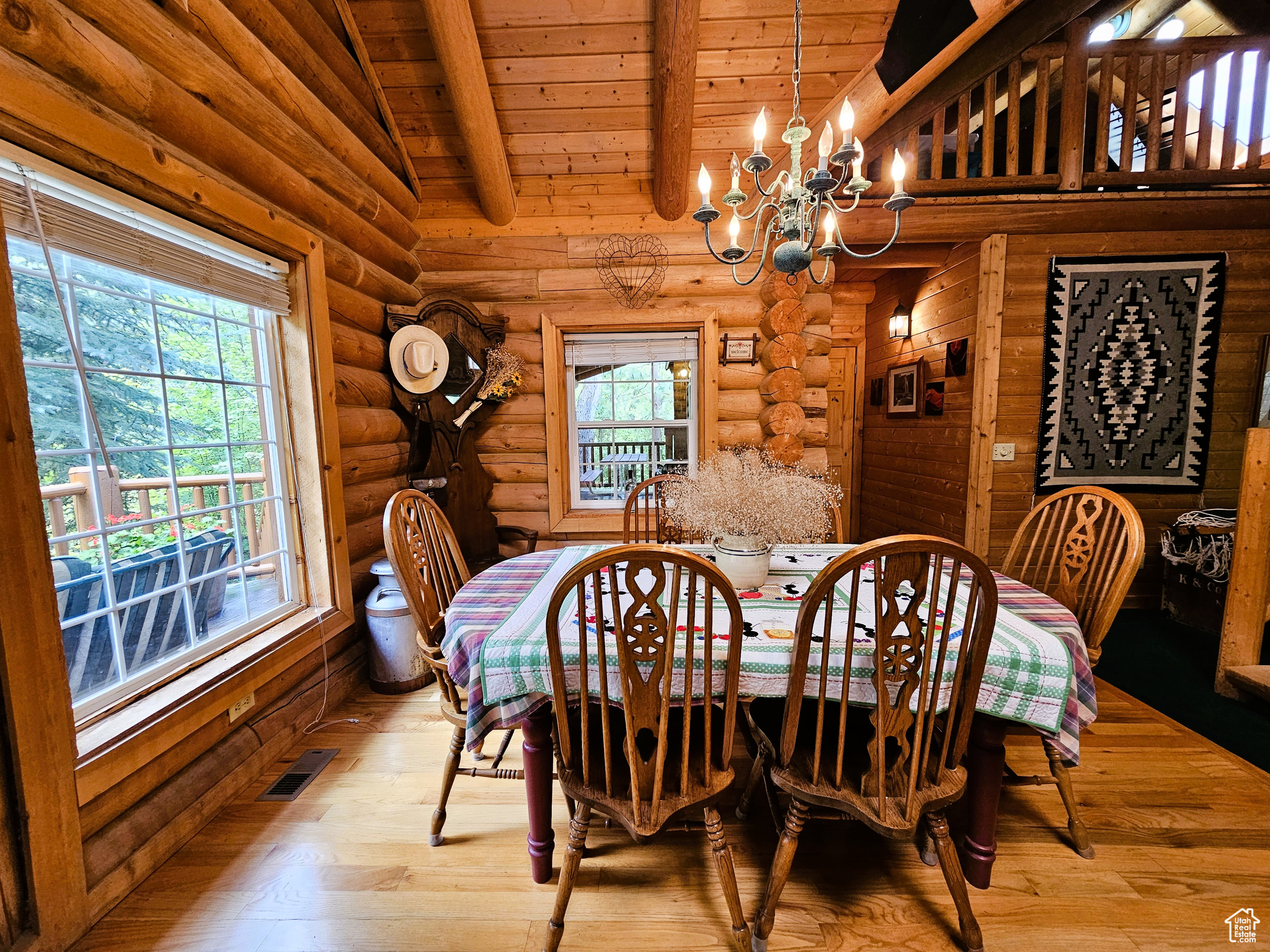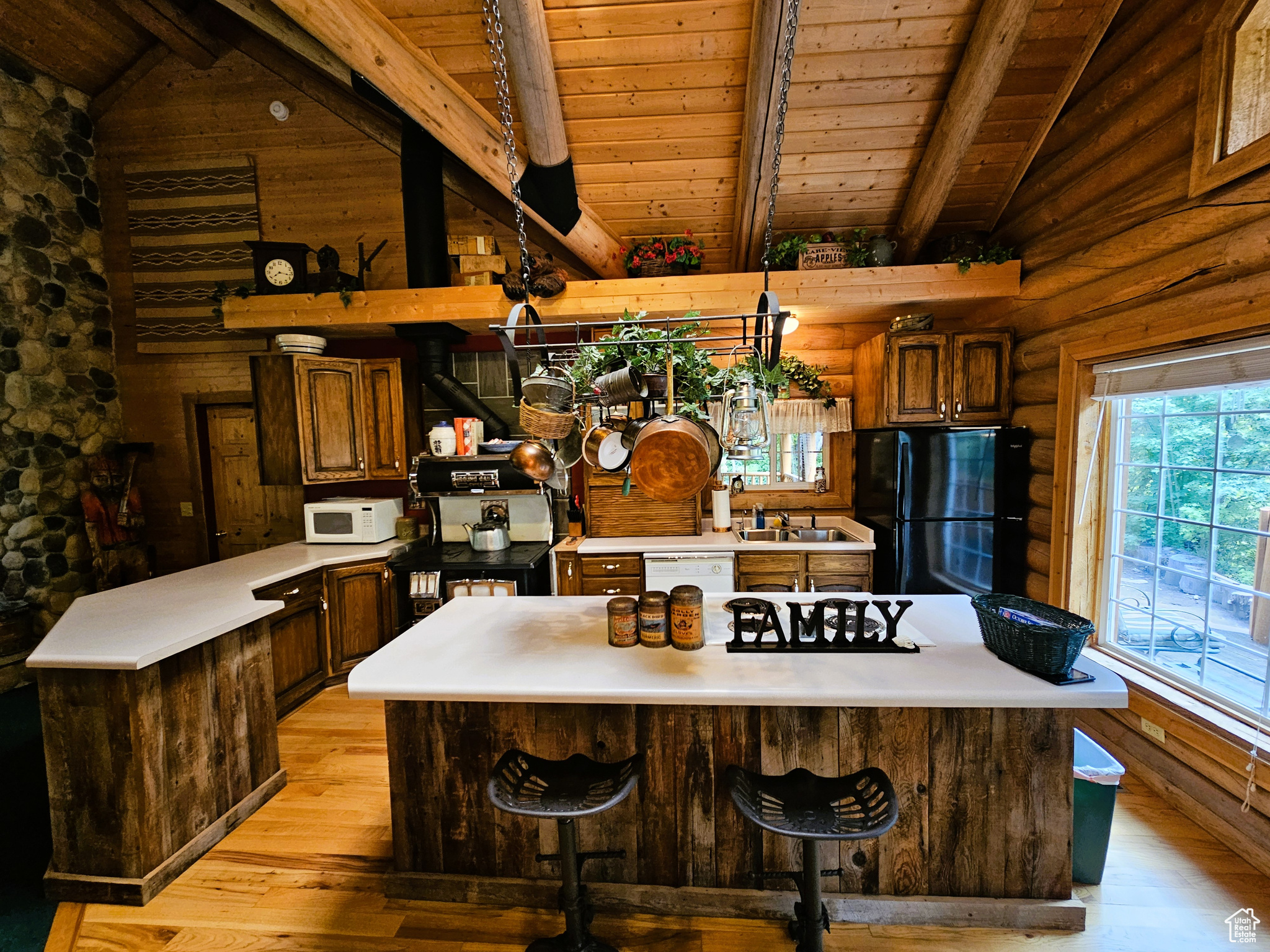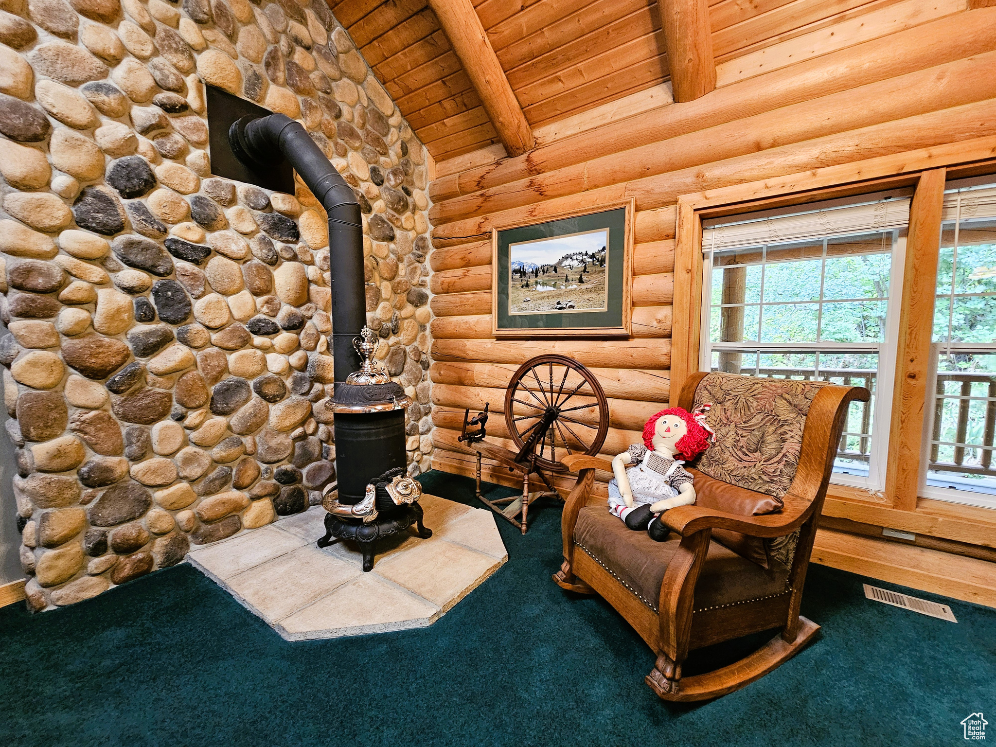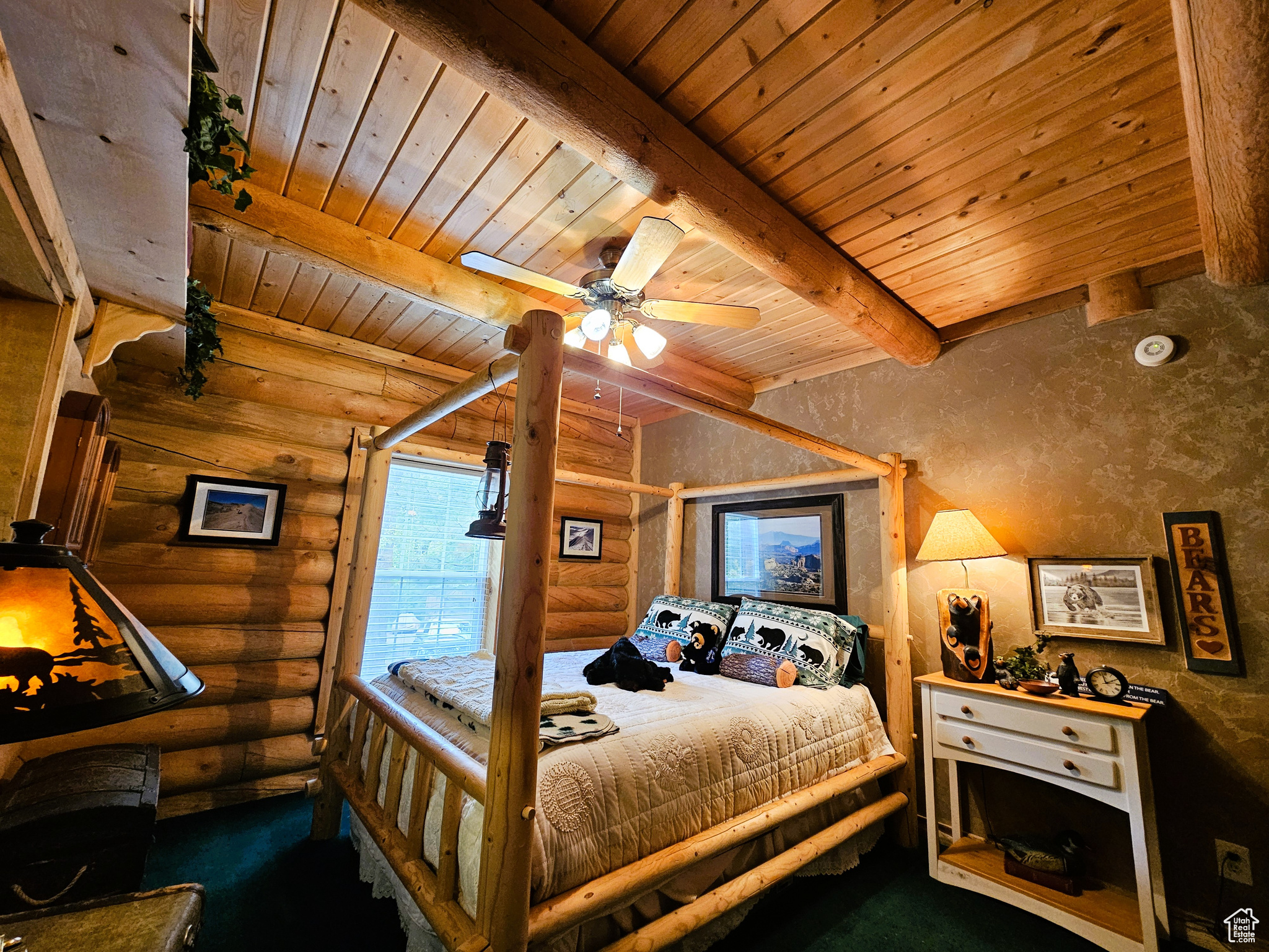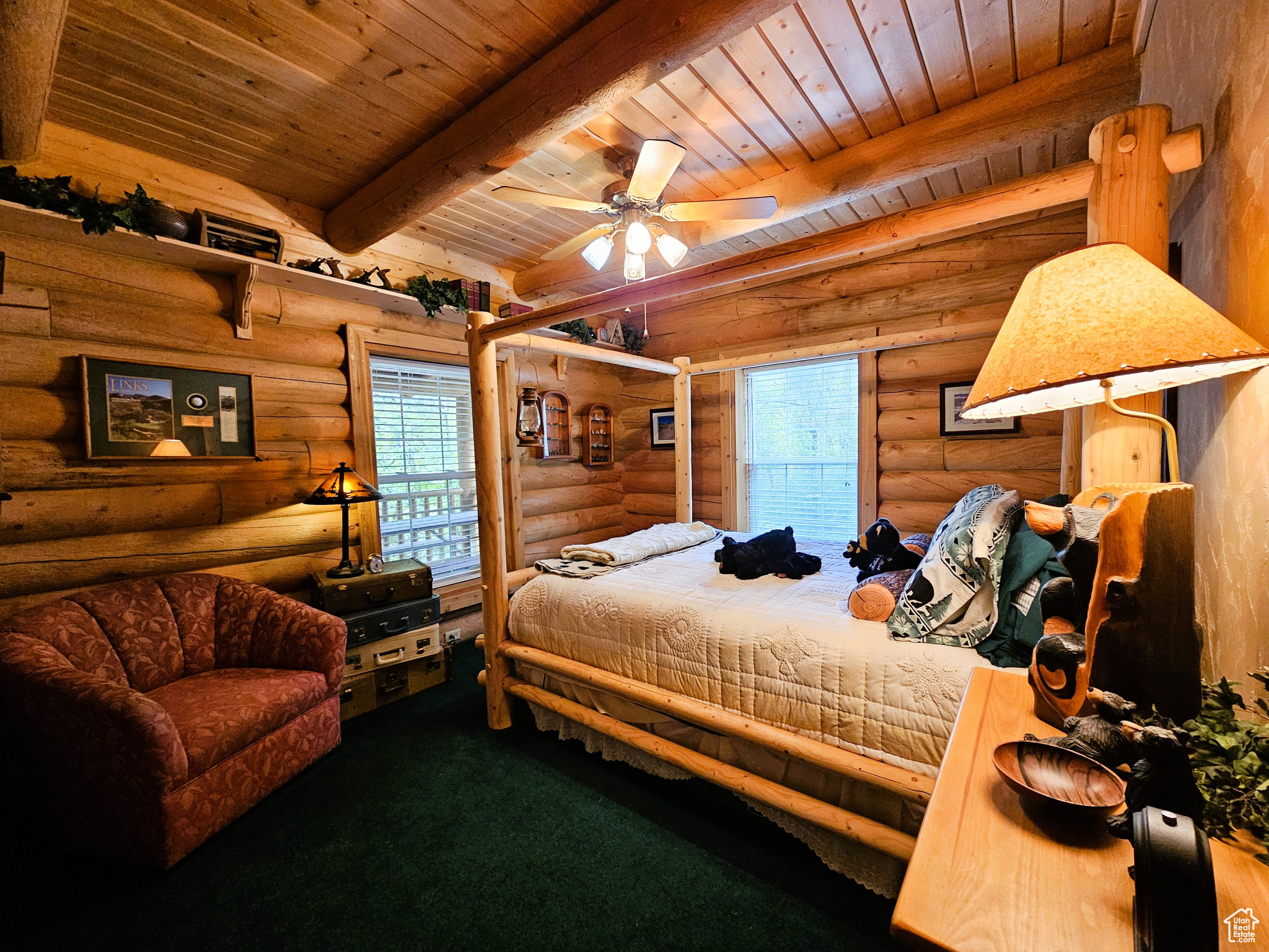 Beautiful log cabin in immaculate condition nestled on Birch Creek with pine, aspen, and cottonwood trees! Single level living with a master suite which has direct access onto the deck overlooking the creek. Enjoy the sound of living on a creek and nature anywhere you are on the property. This property comes with a moose which stops by from time to time. Cabin is being sold fully furnished. It is loaded with furniture and decorations befitting such a cabin and setting. Don't miss the working antique stove in the kitchen or the clawfoot tub in the master suite and many other unique antiques and furnishings. Cabin features a large open loft with plenty of space for games and beds. Over 5.8 acres spread out on two lots. Includes a detached garage which could be used as a workshop or any number of ideas you might have for it. This cabin is the perfect location, easy to get to and less than one mile from year round access and less than one hour from Utah County. Enjoy your very own cabin property nestled in a mountain resort with cool crisp mountain air and get away from it all. Skyline Mountain Resort has so many activities from a swimming pool to a 9 hole golf course, pickleball, tennis, and much more. Enjoy the Manti-LaSal National Forest and all that Skyline Drive has to offer close by; hunting, fishing, lakes, hiking, exploring, hundreds of miles of ATV trails and similar terrain for snowmobiles and winter recreation. Just a few minutes from all the small-town amenities like a hospital, hardware and grocery store, community indoor swimming pool, even a drive-in theater. Controlled community gate entrance. Power is connected. Property has a septic system. Water is from a community fill station or form a share you own. Elevation is 6,818. MLS map is correct. Google Maps/Earth is 39.59257, -111.37293. Buyer to verify all information. Square footage figures are provided as a courtesy estimate only and were obtained from the county. Buyer is advised to obtain an independent measurement.