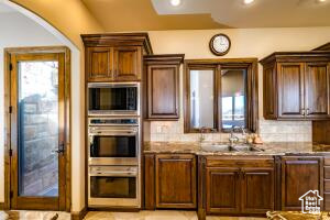 Relax and enjoy the pool and spa with the spectacular views of Pine Valley mountain or the evening lights of St. George and Washington. This Stone Cliff Custom built 4 bed, 4 bath, 3 car garage Tuscany style home is a must see if you are looking for your dream home in St. George. Perfect for the gourmet cook and entertaining family and guests well building memories enjoying the numerous amenities included.