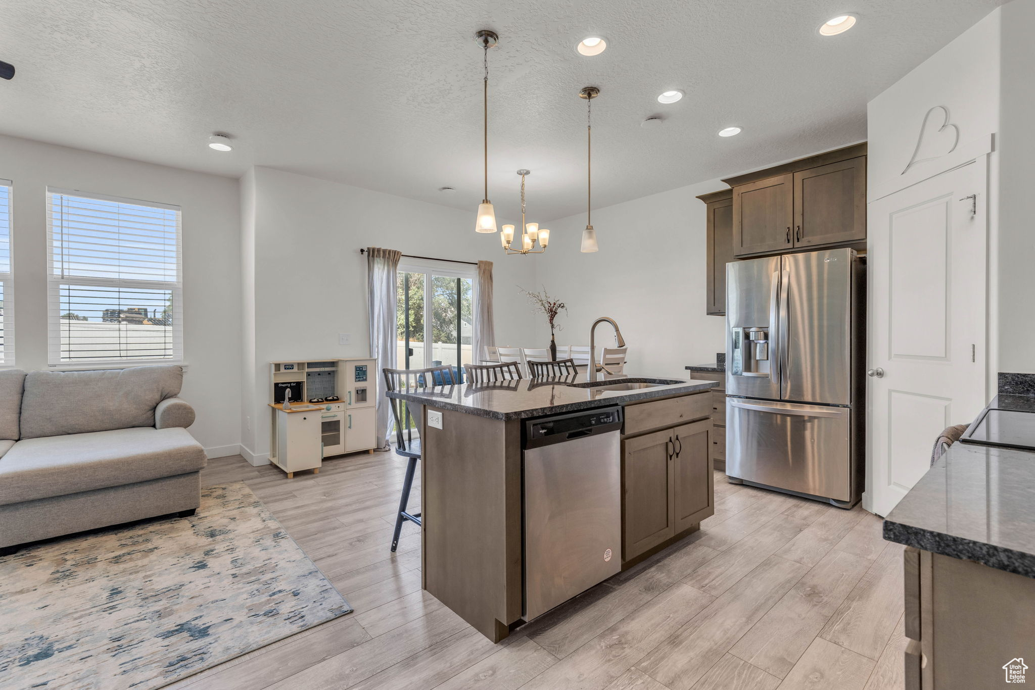New Price! Now listed at $424,900 - an exceptional value for this spacious, nearly-new Lehi townhome. Built in 2022 and offering 2,395 sq ft across three thoughtfully designed levels, this beautifully maintained residence delivers modern comfort in a great location. On the main floor, enjoy an open-concept layout featuring 9-foot ceilings, an oversized island, upgraded solid-surface countertops, and premium cabinetry-perfect for daily living or entertaining. The lower level includes a versatile flex room ideal for a home office, workout space, or media setup. Upstairs, the primary suite features a generous walk-in closet and ensuite bath, complemented by two additional bedrooms and a full bath. This home stands out as one of the best values in the area, offering quality, space, and convenience at a compelling new price point. Located just minutes from Silicon Slopes, shopping, dining, and outdoor recreation, it offers the perfect blend of lifestyle and location. Don't miss this opportunity-homes like this at this price don't last.