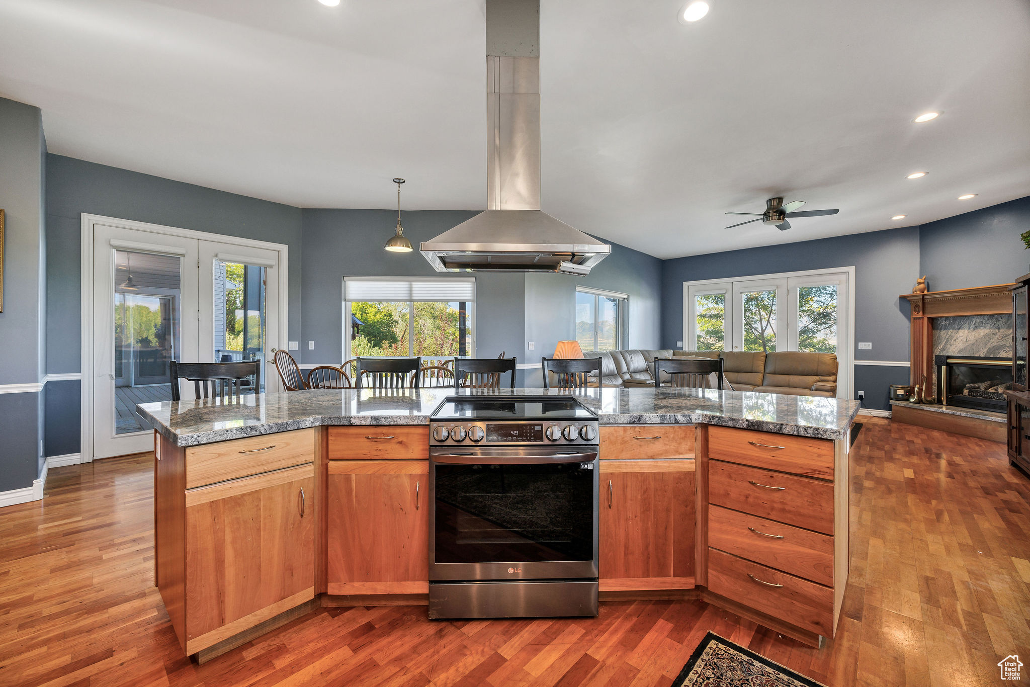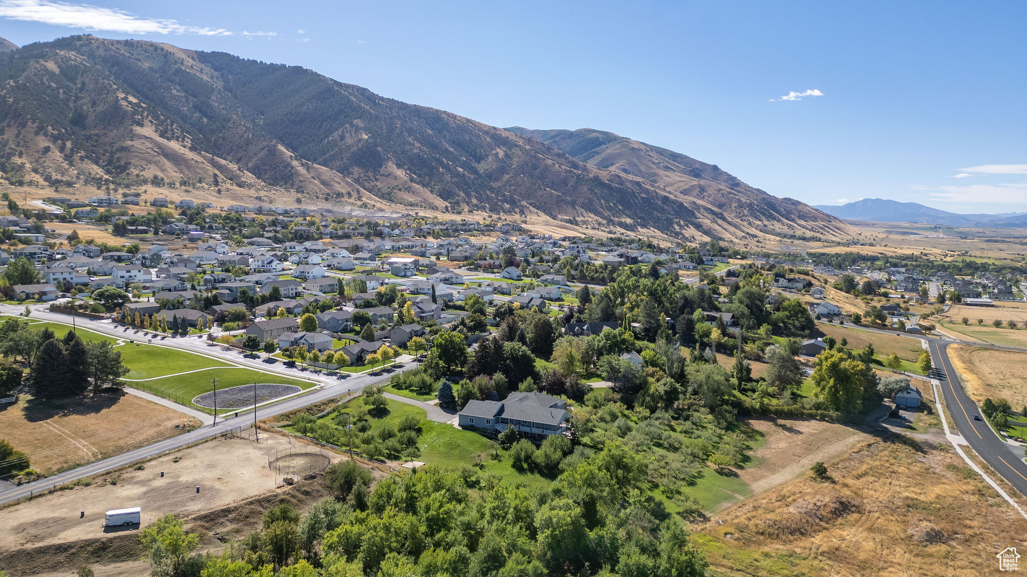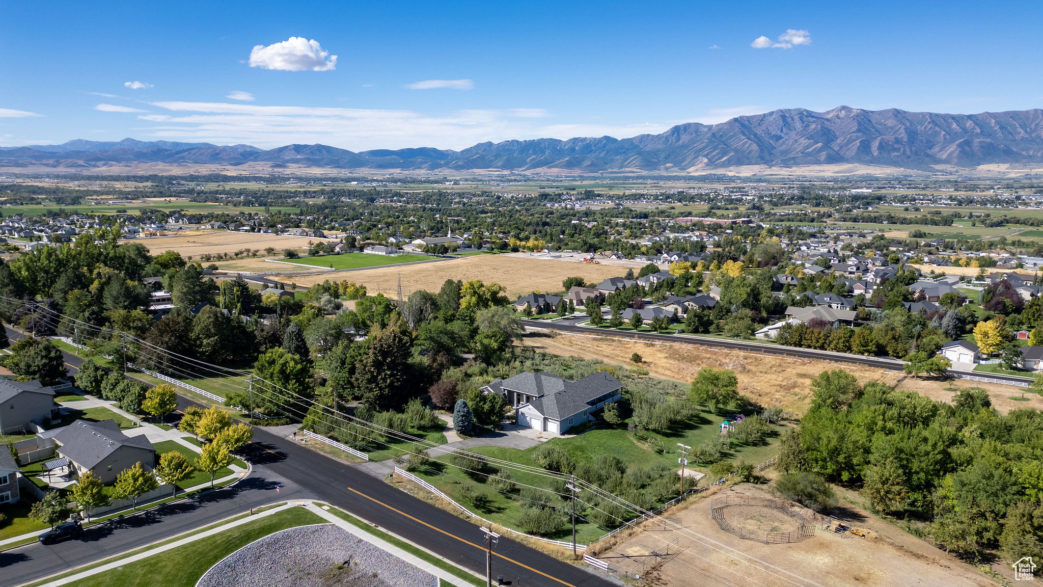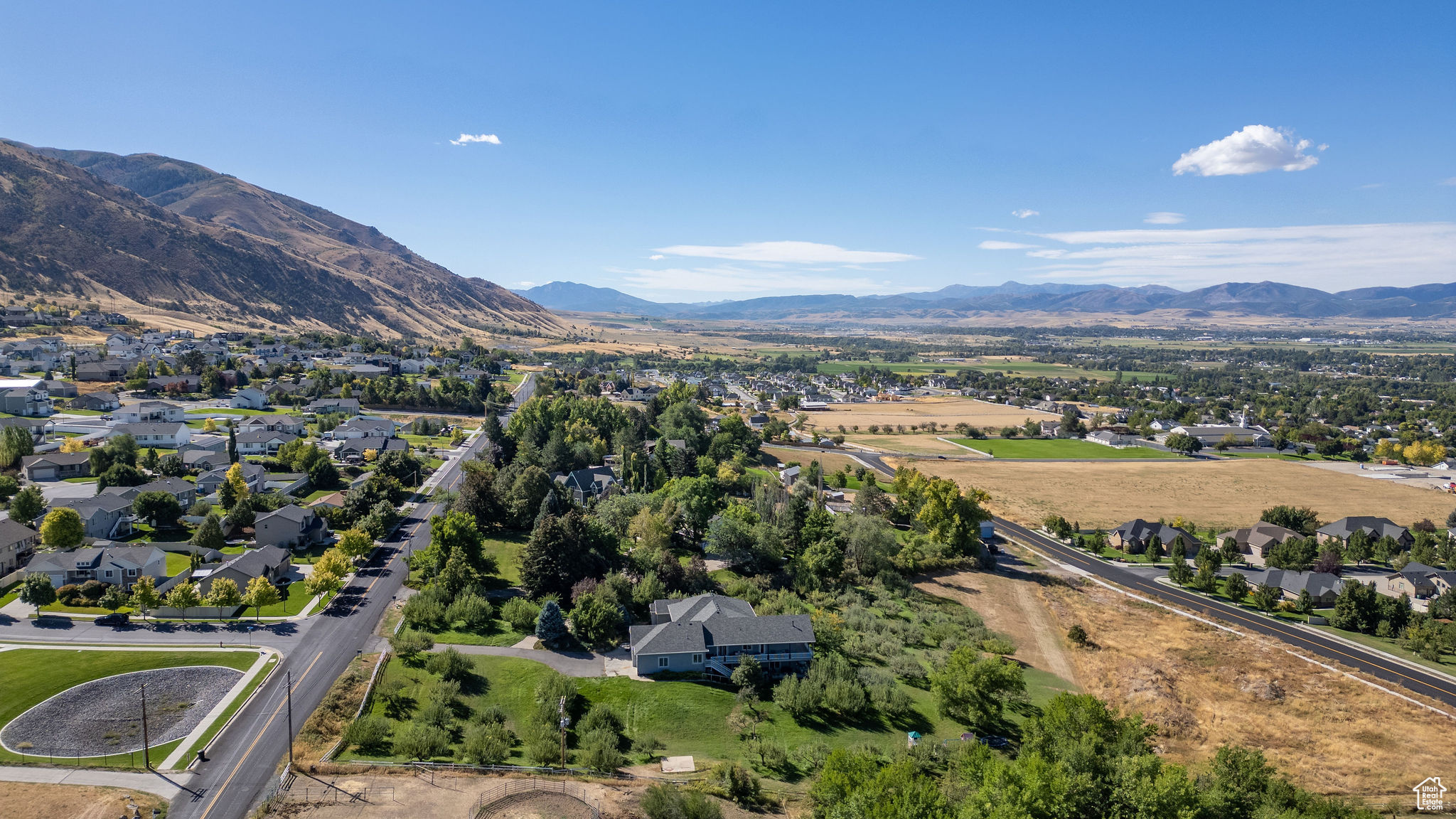 Situated on 2.96 acres on the Providence bench, this property offers panoramic views of the Wellsville Mountains. The spacious home features a timeless design and multiple living areas. The main floor has a large primary suite complete with a walk-in closet, soaking tub, walk-in shower, and ample storage. An additional main-level bedroom provides flexibility as a guest room or library. There is an oversized 3-car garage that leads to a half bath and a laundry/craft room. Relaxation is easy in the formal living and dining rooms, while the expansive kitchen-featuring a wrap-around granite countertop-opens into another large family room with a fireplace. The daylight basement offers even more space, with a full kitchen, family room, formal living room, and three additional bedrooms, making it ideal for multi-generational living or hosting guests. Outdoor living is impressive. A wrap-around deck overlooks the property's apple orchard, and lower-level patios provide multiple areas for gatherings, entertaining, or simply enjoying the scenery. With plentiful water to maintain the orchard and grounds, this property blends natural beauty with everyday convenience. Don't miss the chance to own this rare Providence bench retreat with space, views, and amenities that are second to none.