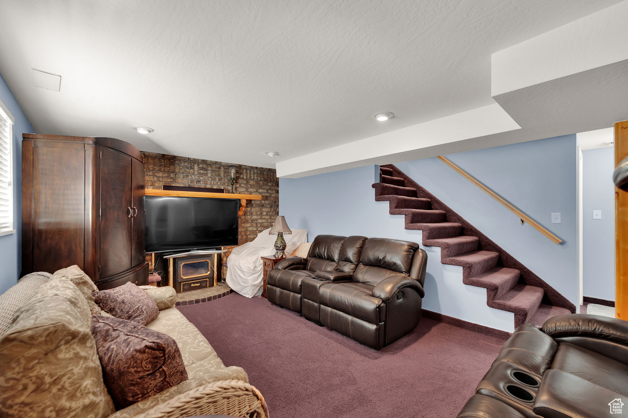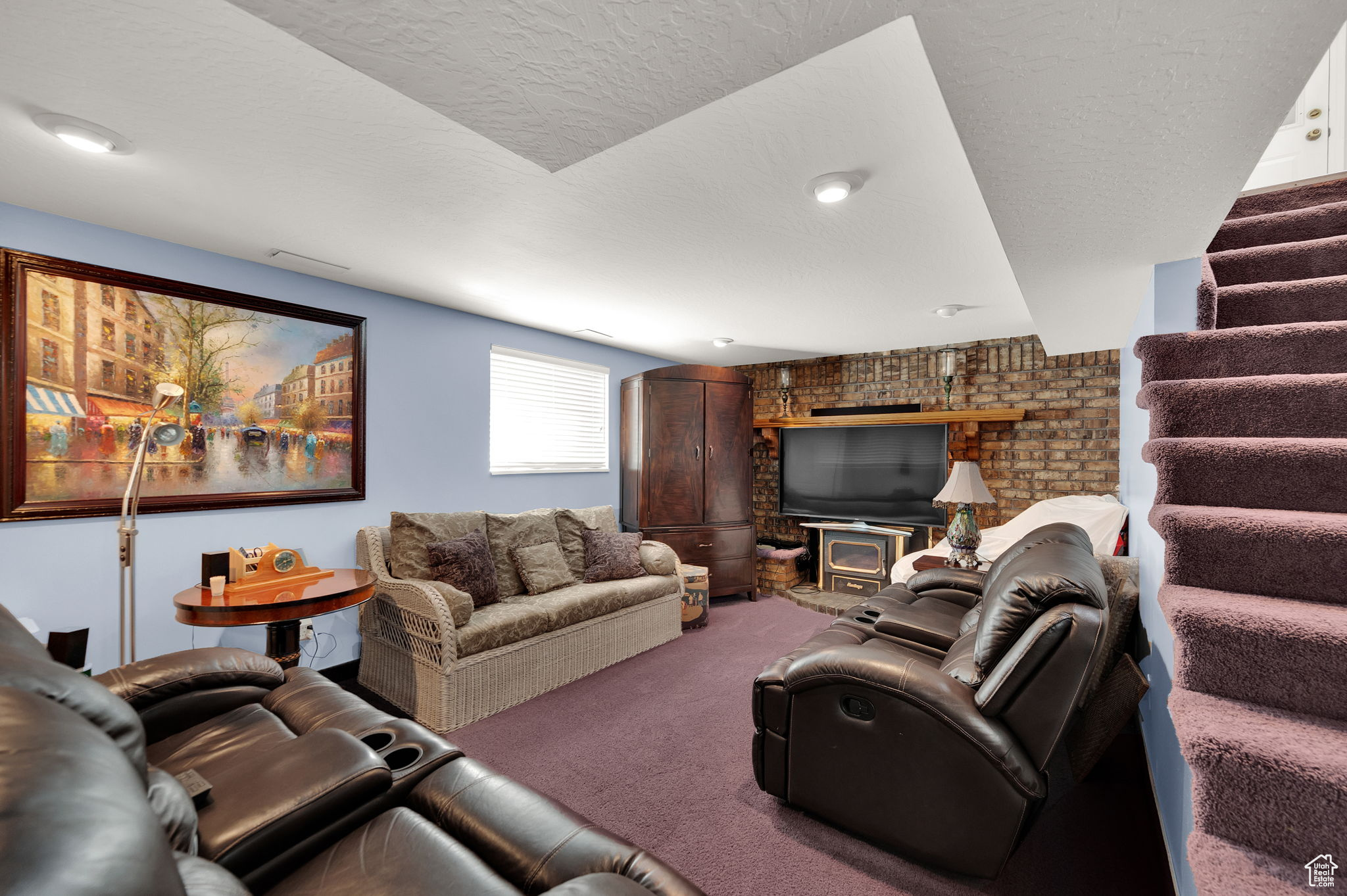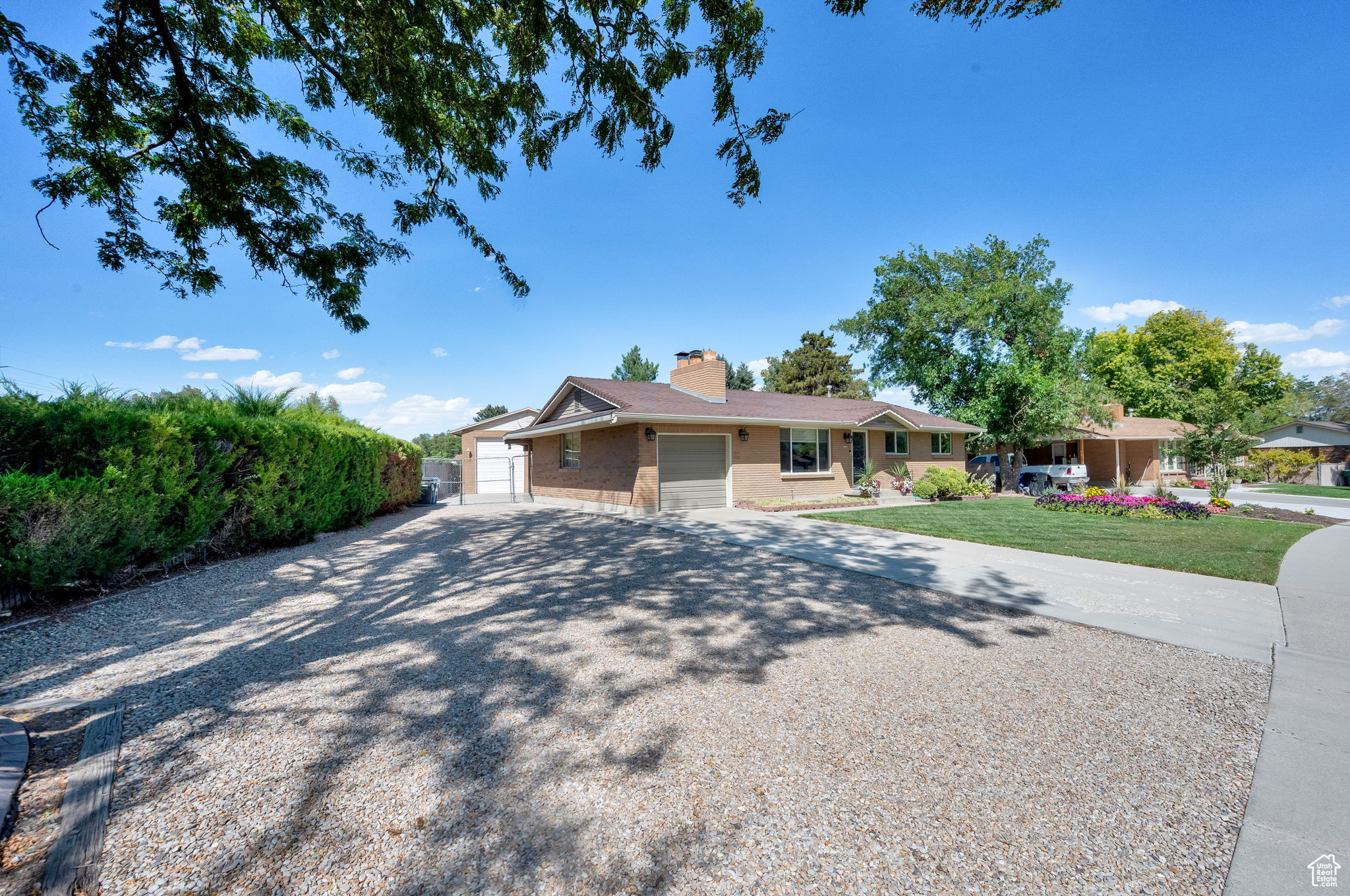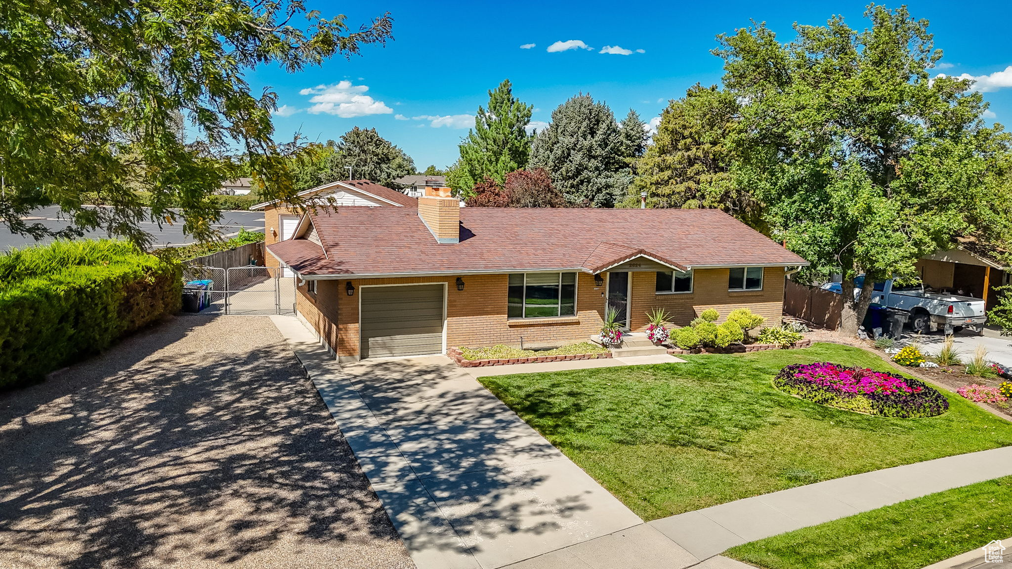 This West Jordan home is in exceptional condition and truly a must-see! Inside, you'll find white oak custom cabinets, a premium gas fireplace, and a natural-lighting skylight in the kitchen. The living room features cozy carpet flooring, while the downstairs retreat offers a jetted tub for relaxation. Quality window treatments add a finishing touch throughout. The basement includes a walkout studio, previously used as a hair salon, perfect for a home business, guest suite, or creative space. Outside, enjoy the 775 sq. ft. brick garage with a 350 sq. ft. loft. The property has RV hookups with power, water, and sewer, and a backyard lined with mature trees that back up to a church parking lot, offering excellent privacy. Conveniently located near schools, shopping, and commuter routes, this home blends comfort, functionality, and versatility.