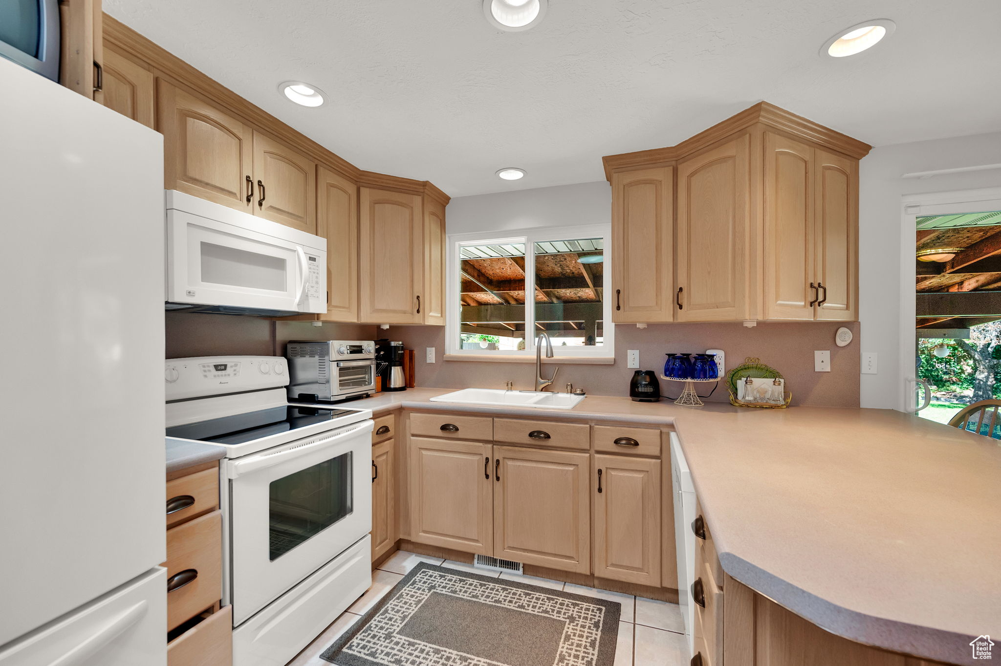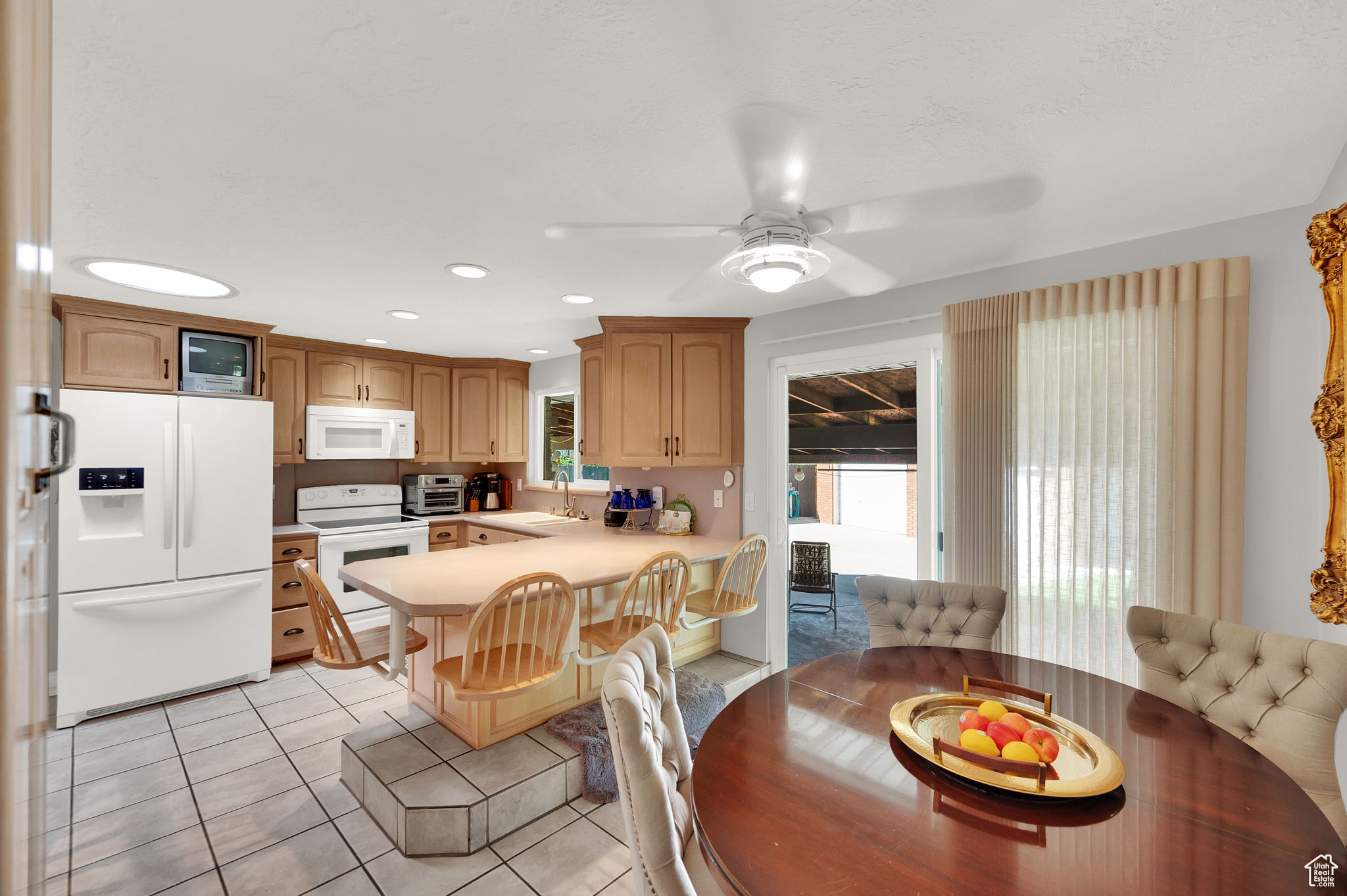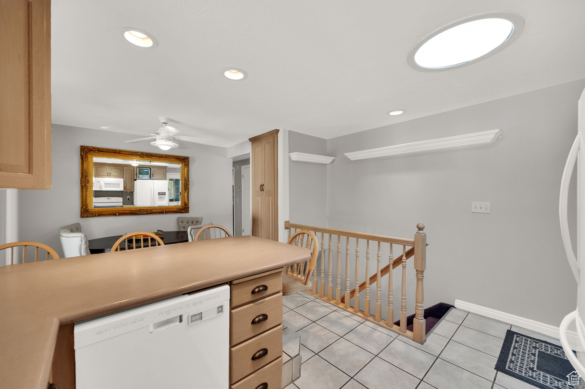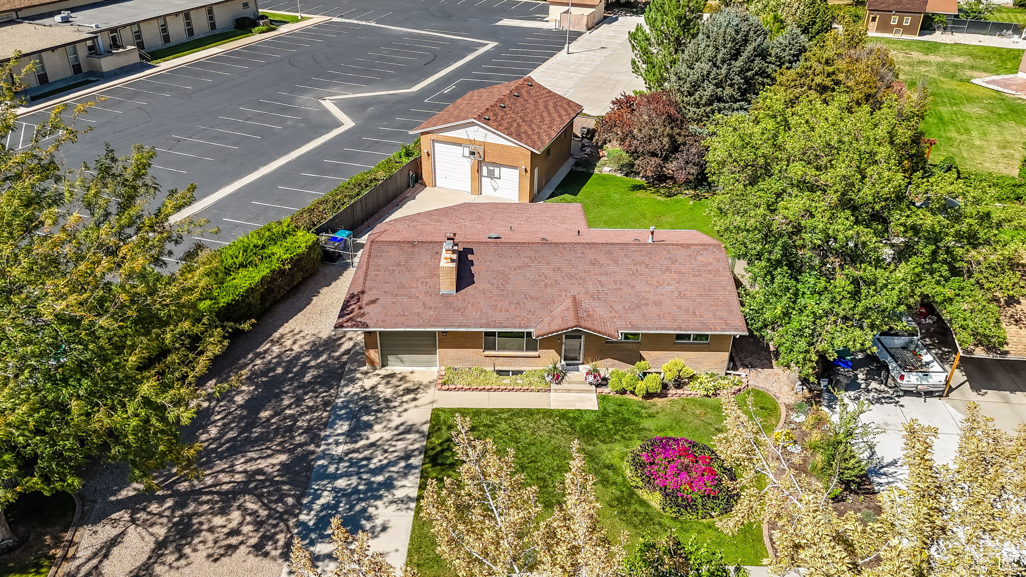 This West Jordan home is in exceptional condition and truly a must-see! Inside, you'll find white oak custom cabinets, a premium gas fireplace, and a natural-lighting skylight in the kitchen. The living room features cozy carpet flooring, while the downstairs retreat offers a jetted tub for relaxation. Quality window treatments add a finishing touch throughout. The basement includes a walkout studio, previously used as a hair salon, perfect for a home business, guest suite, or creative space. Outside, enjoy the 775 sq. ft. brick garage with a 350 sq. ft. loft. The property has RV hookups with power, water, and sewer, and a backyard lined with mature trees that back up to a church parking lot, offering excellent privacy. Conveniently located near schools, shopping, and commuter routes, this home blends comfort, functionality, and versatility.